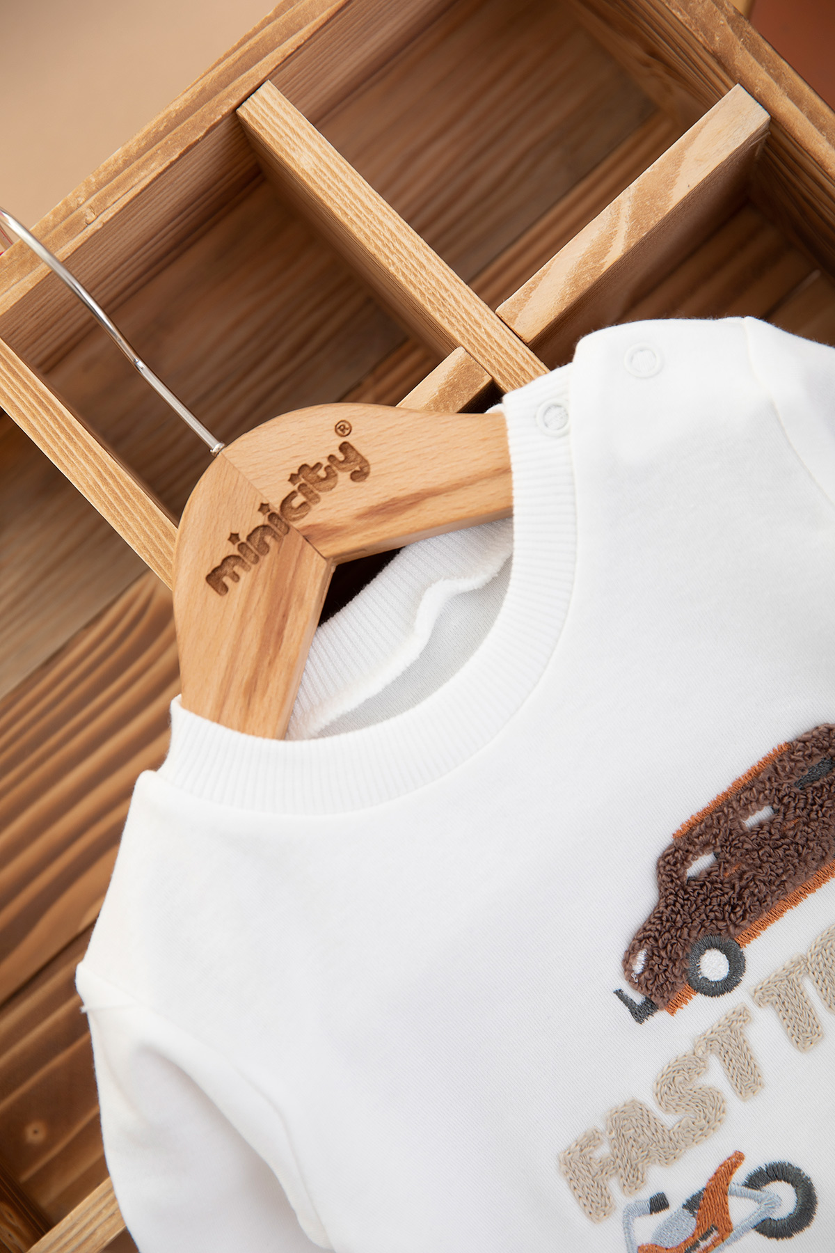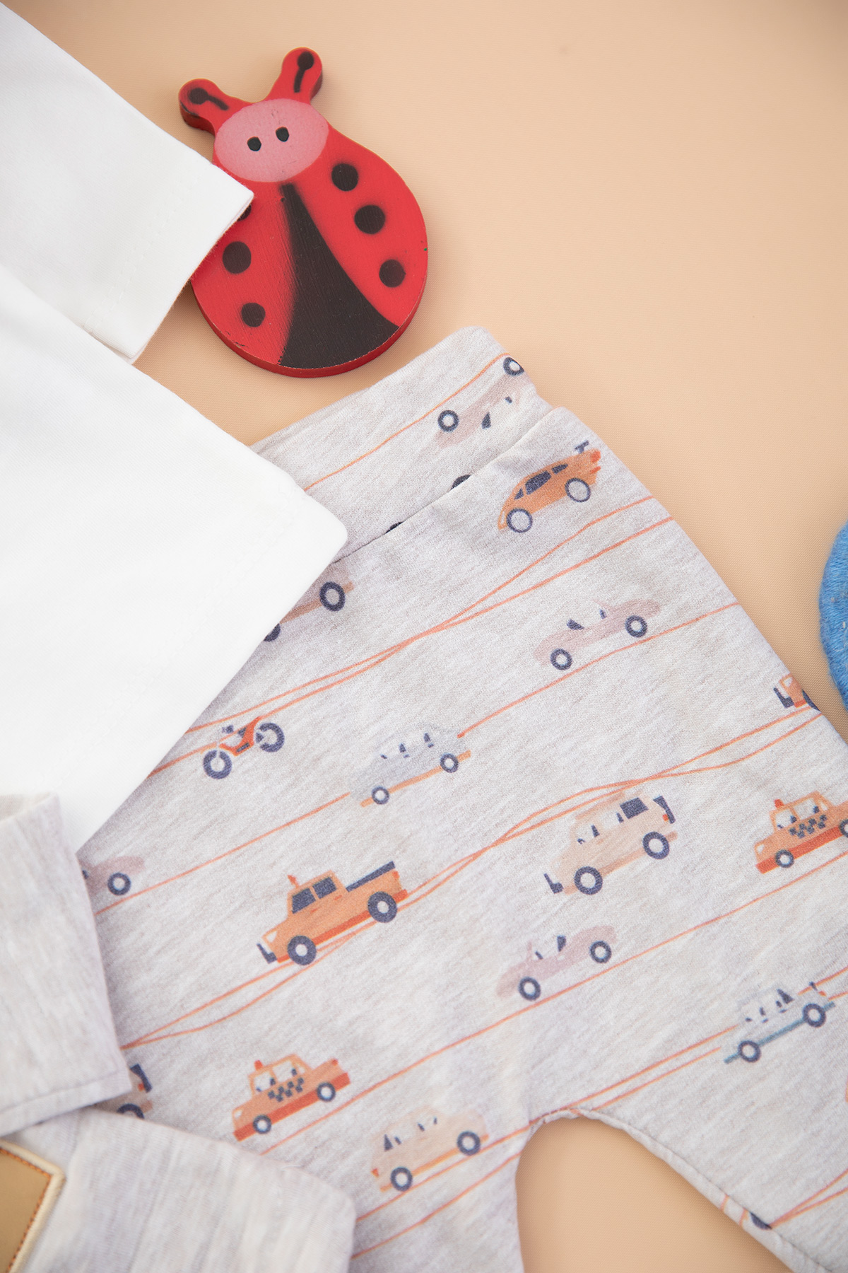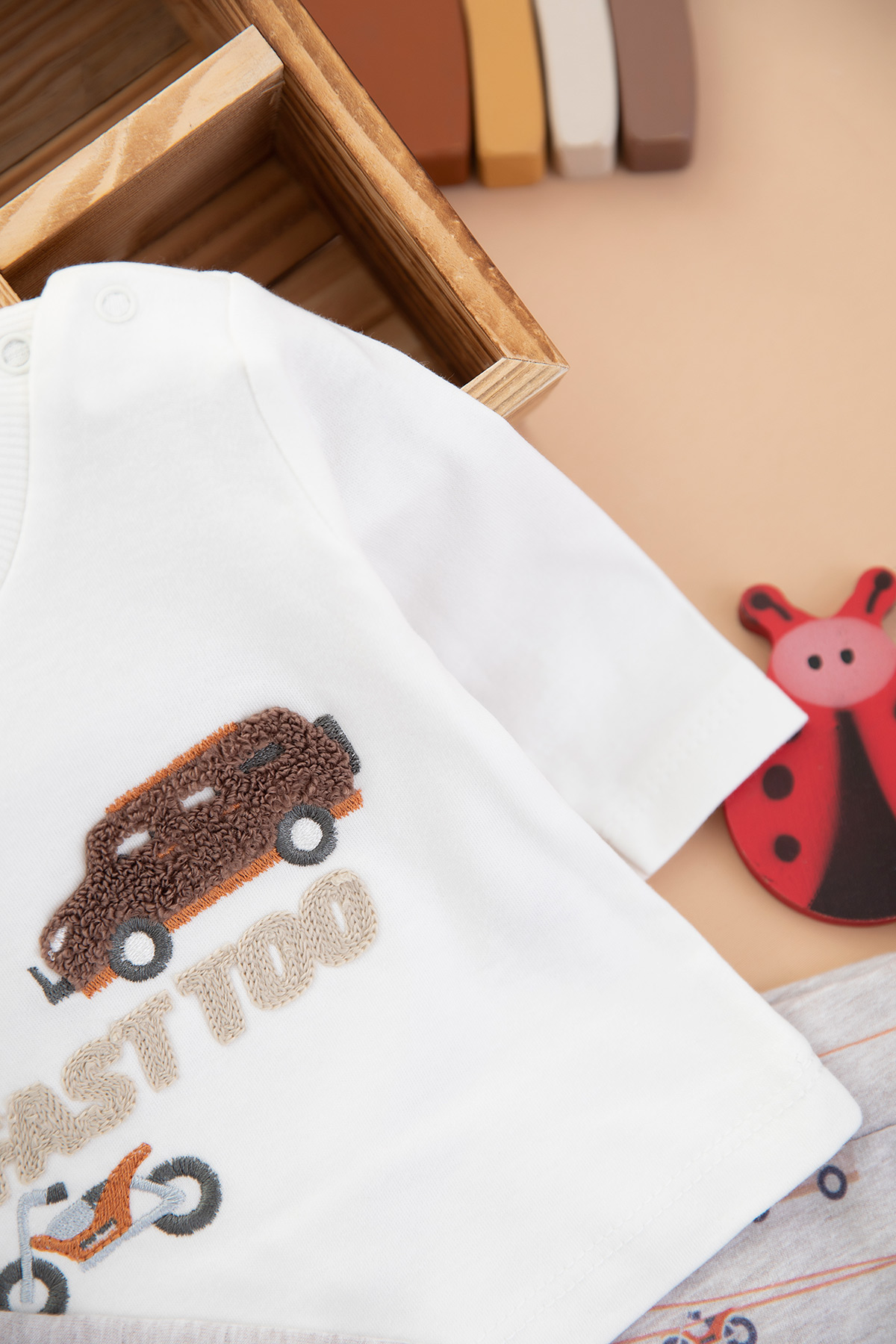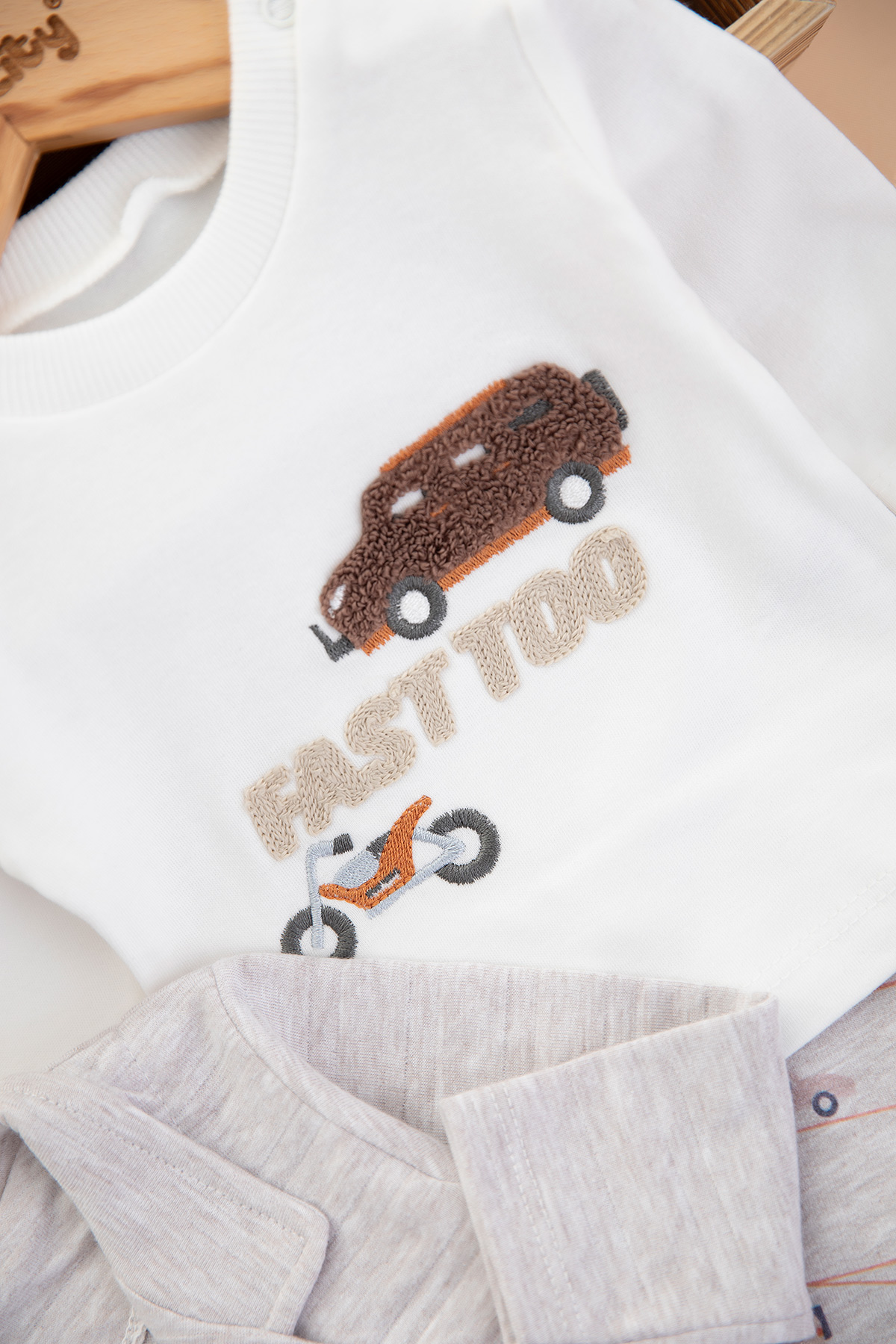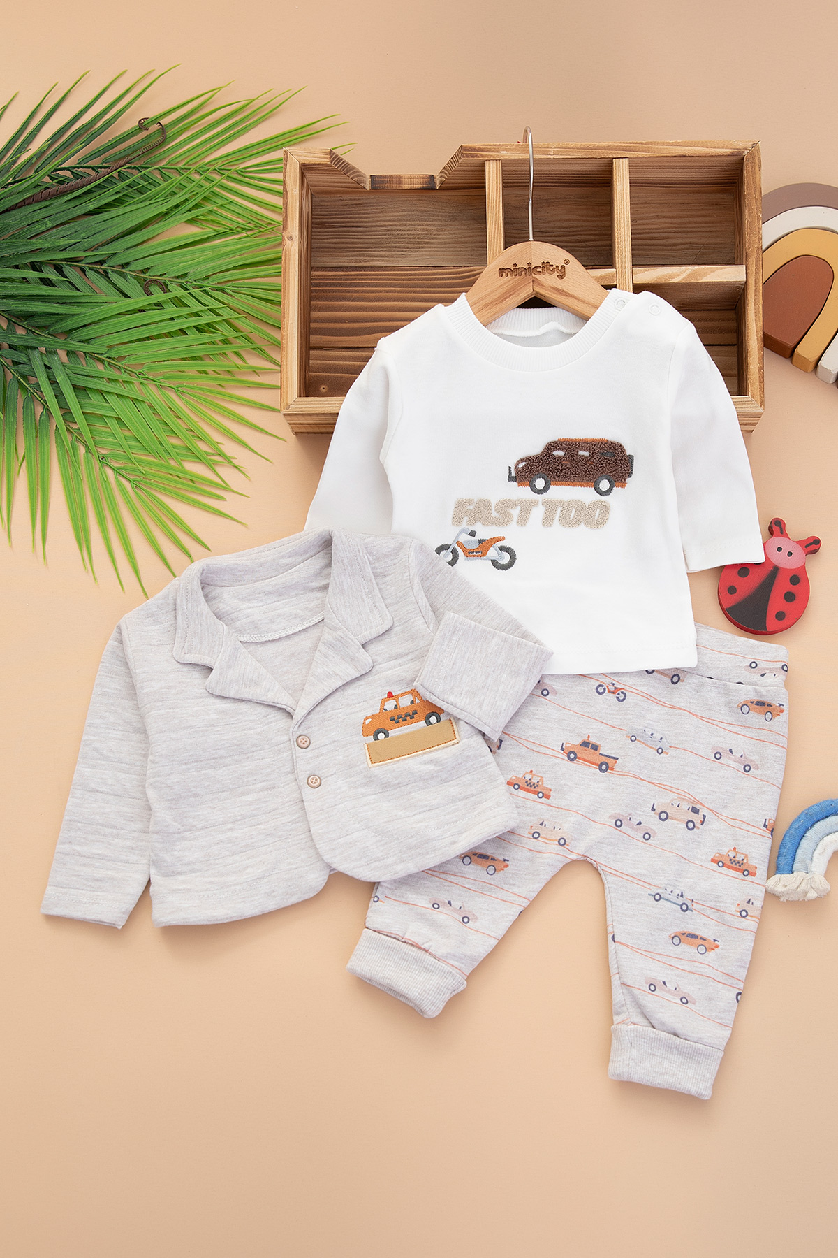 Erkek Bebek Araba Nakışlı Üçlü Takım - 2107 (0-9 Ay)