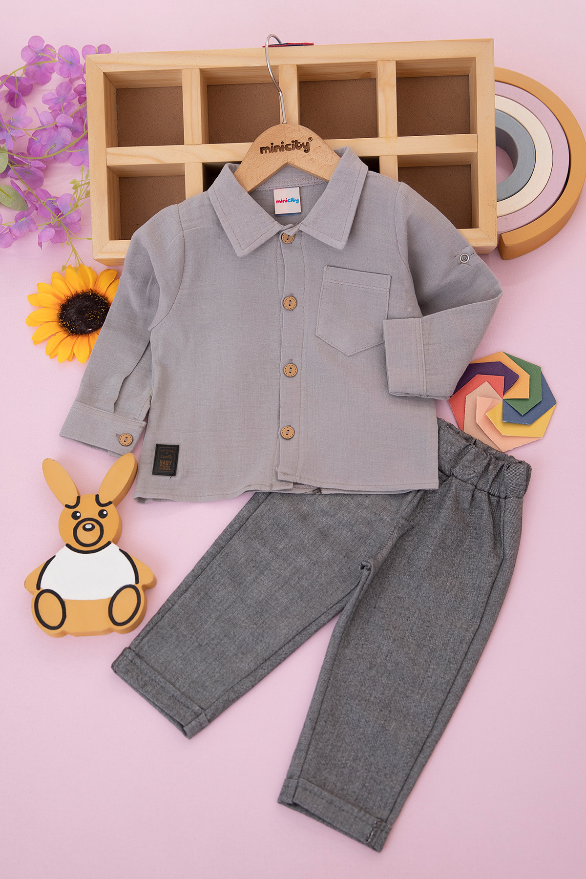 Erkek Bebek Armalı Müslin Gömlek Takım - 25017 (9-24 Ay)