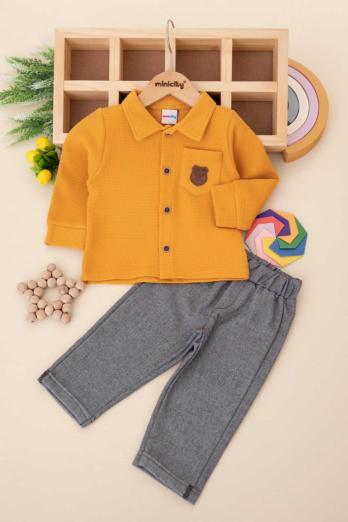 Erkek Bebek Armalı Petek Gömlekli Takım - 24108 (9-24 Ay)