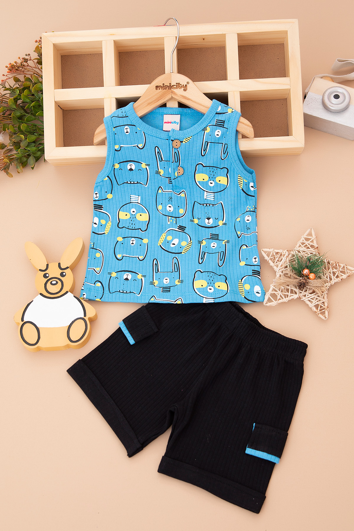 Erkek Bebek Askılı Arslan Şortlu Takım - 23270 (9-24 Ay)