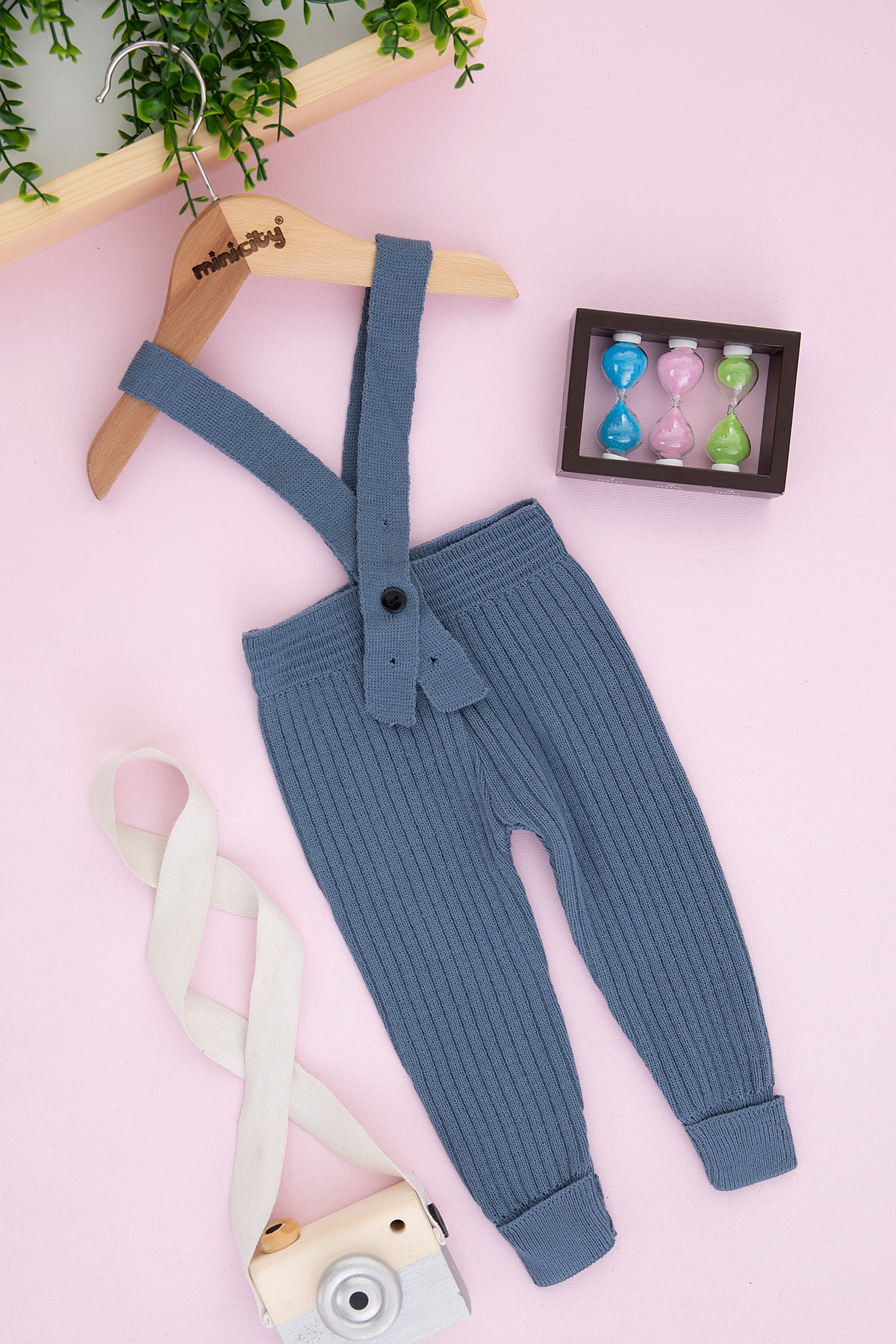 Erkek Bebek Askılı Triko Tek Alt - 6010 (0-24 Ay)