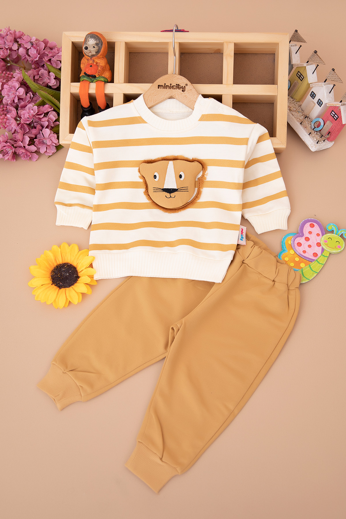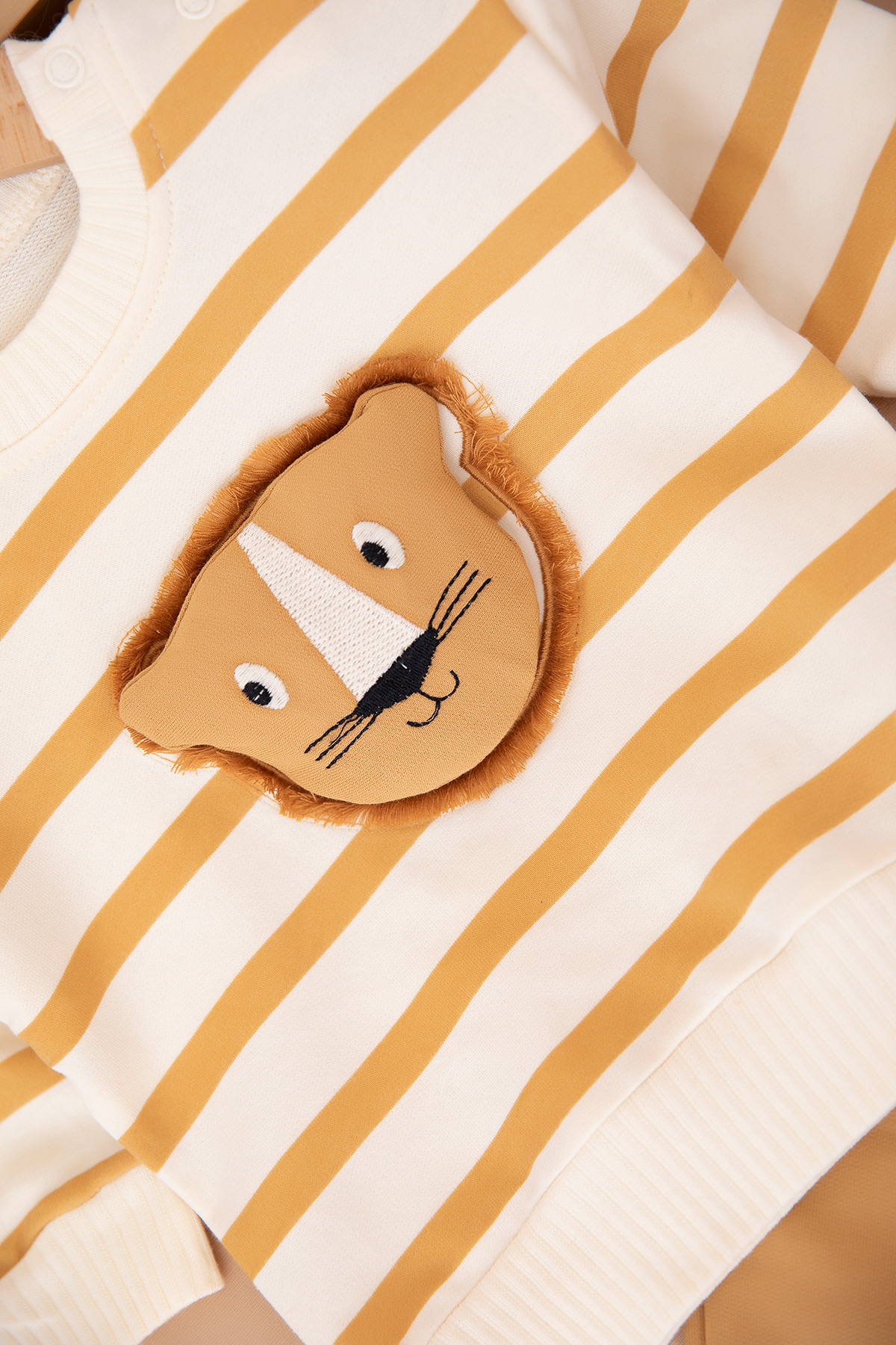 Erkek Bebek Aslan Aplikeli Çizgili Takım - 2843 (6-24 Ay)