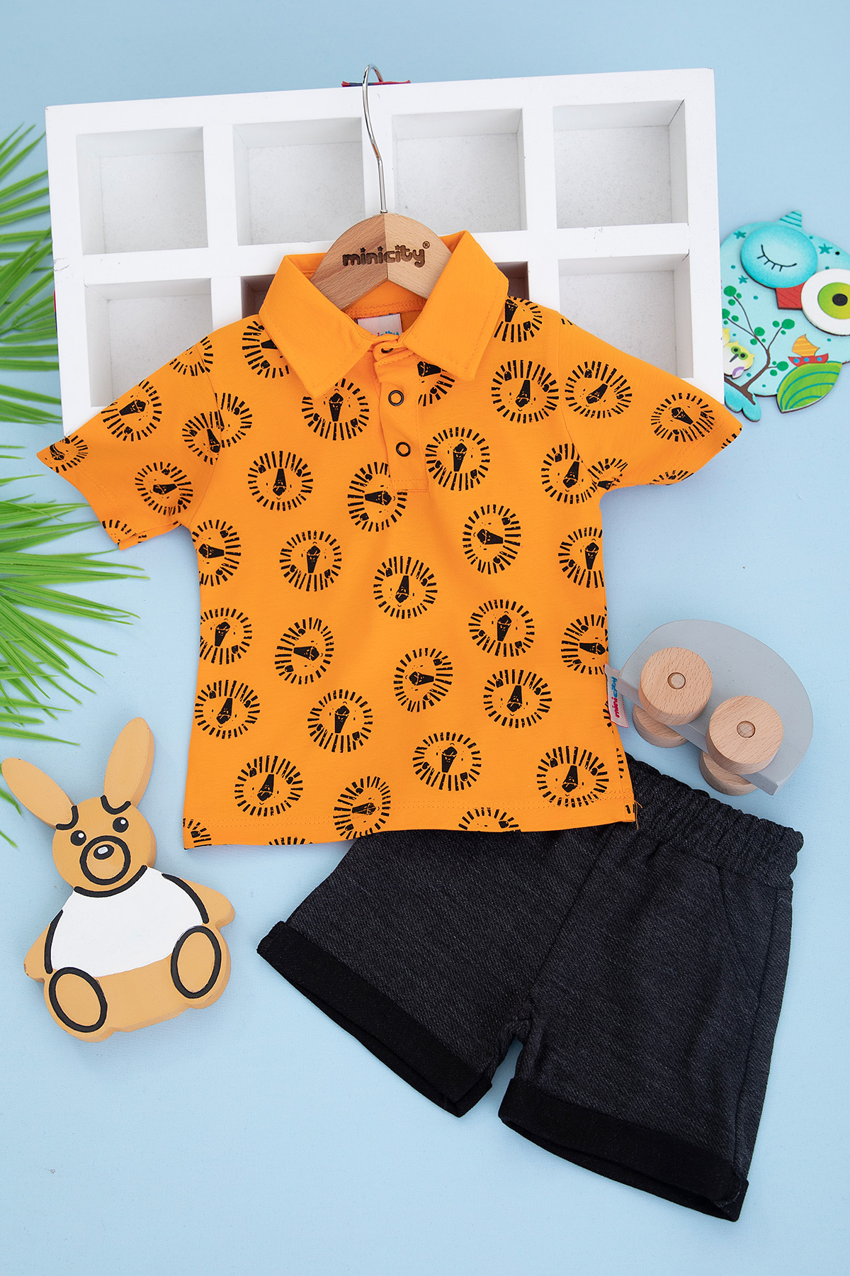 Erkek Bebek Aslan Baskılı Şortlu Takım - 23077 (9-24 Ay)
