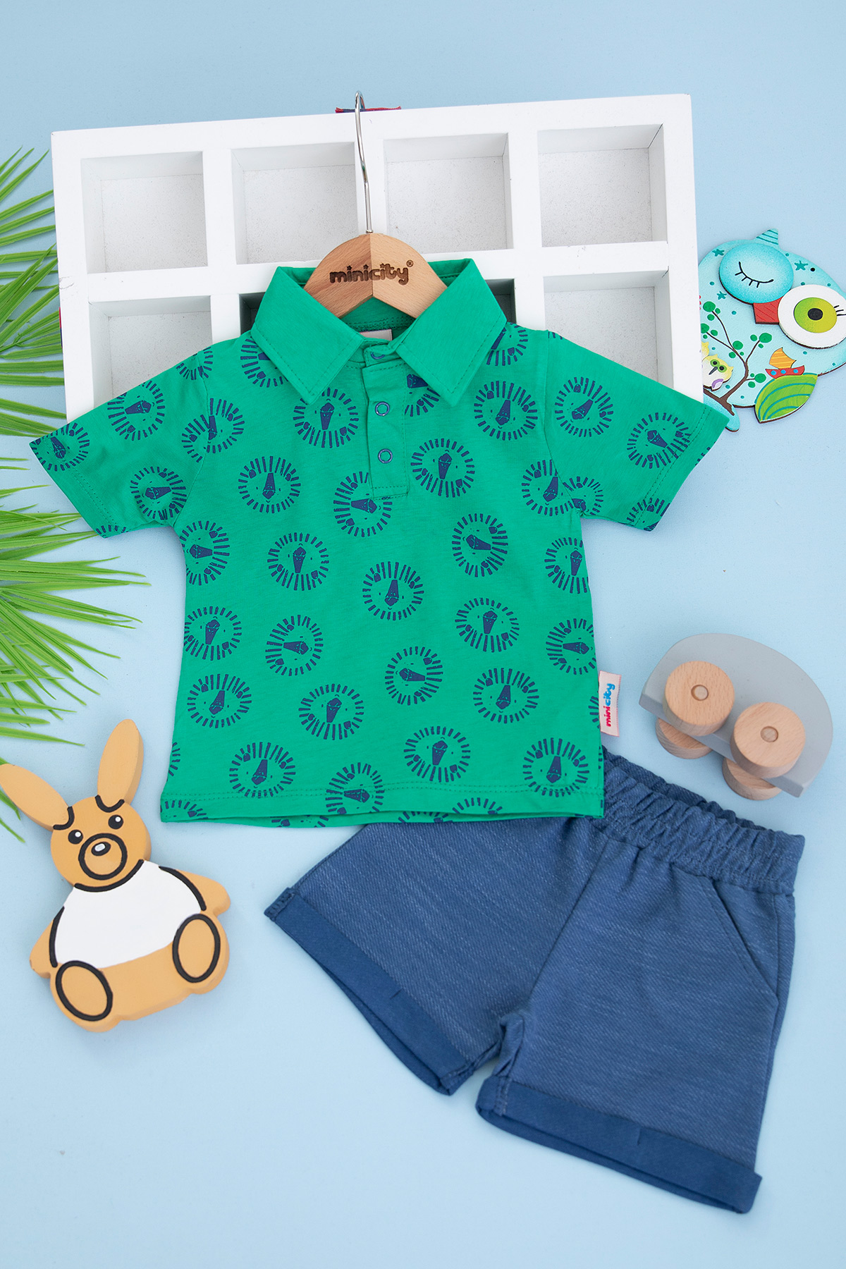 Erkek Bebek Aslan Baskılı Şortlu Takım - 23077 (9-24 Ay)