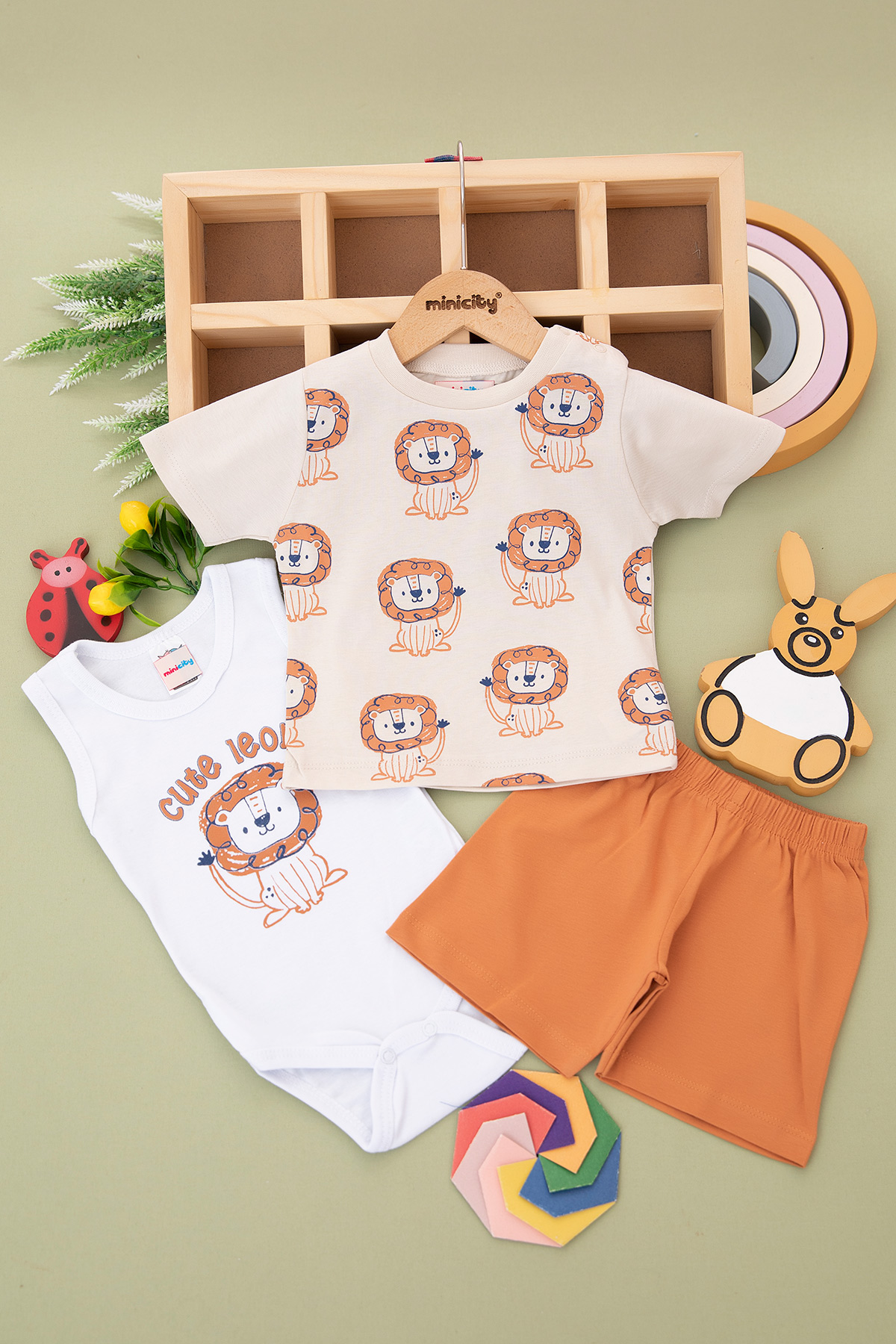 Erkek Bebek Aslan Baskılı Şortlu Takım - 24107 (9-24 Ay)