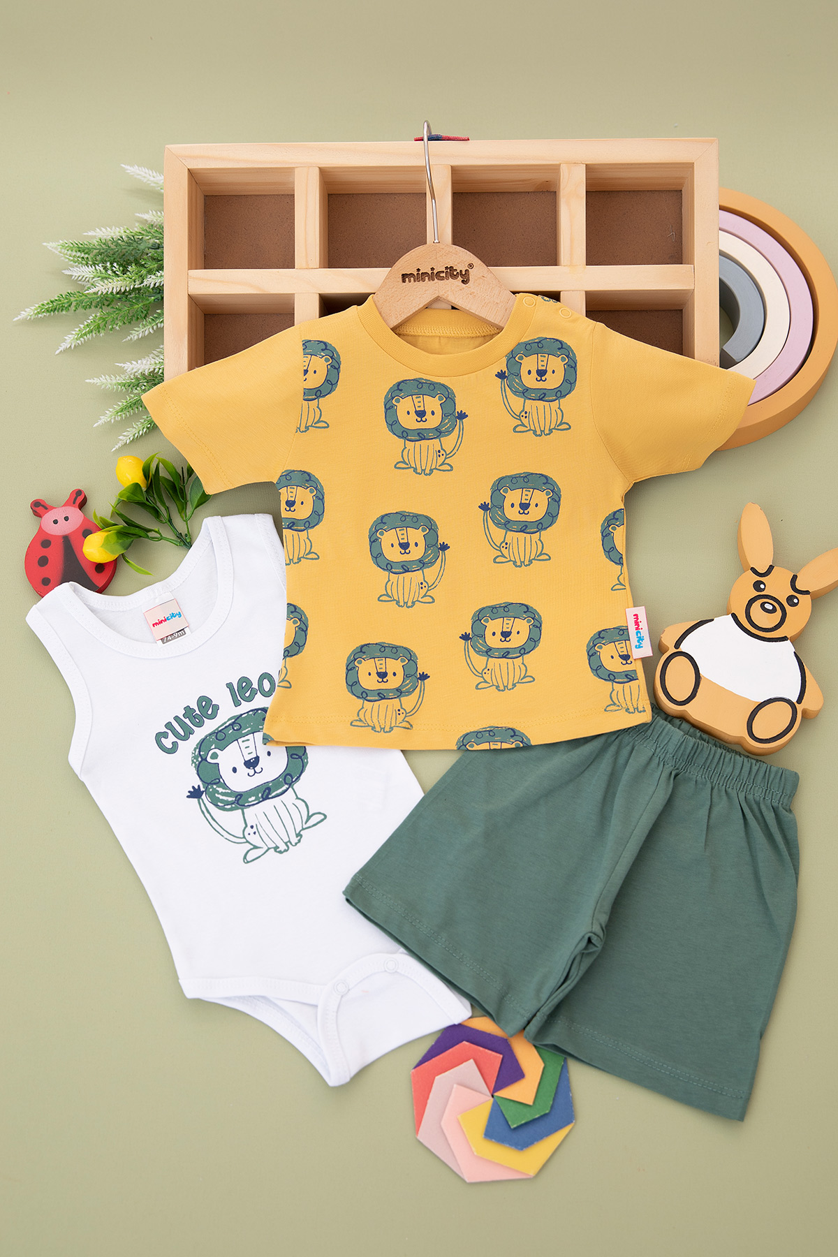 Erkek Bebek Aslan Baskılı Şortlu Takım - 24107 (9-24 Ay)
