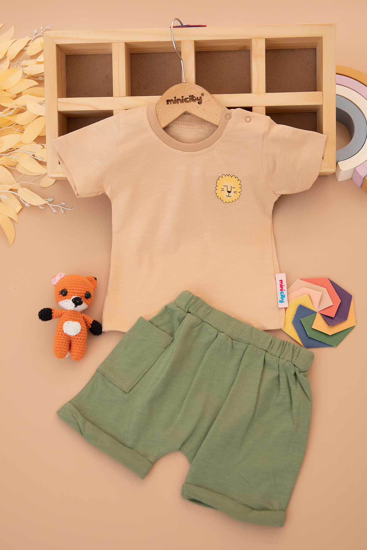 Erkek Bebek Aslan Baskılı Şortlu Takım - 252122 (6-24 Ay)