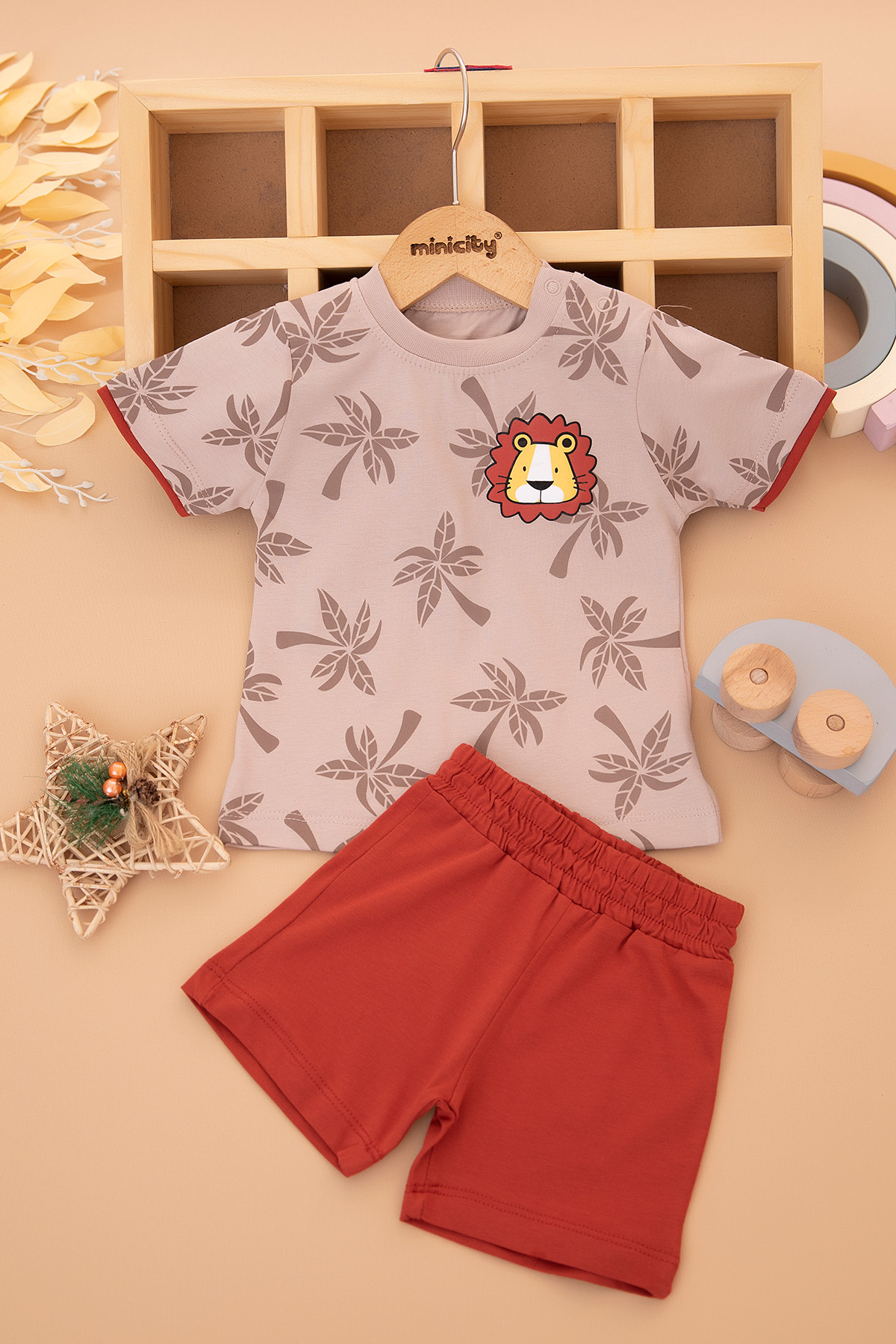 Erkek Bebek Aslan Baskılı Şortlu Takım - 25321 (9-24 Ay)