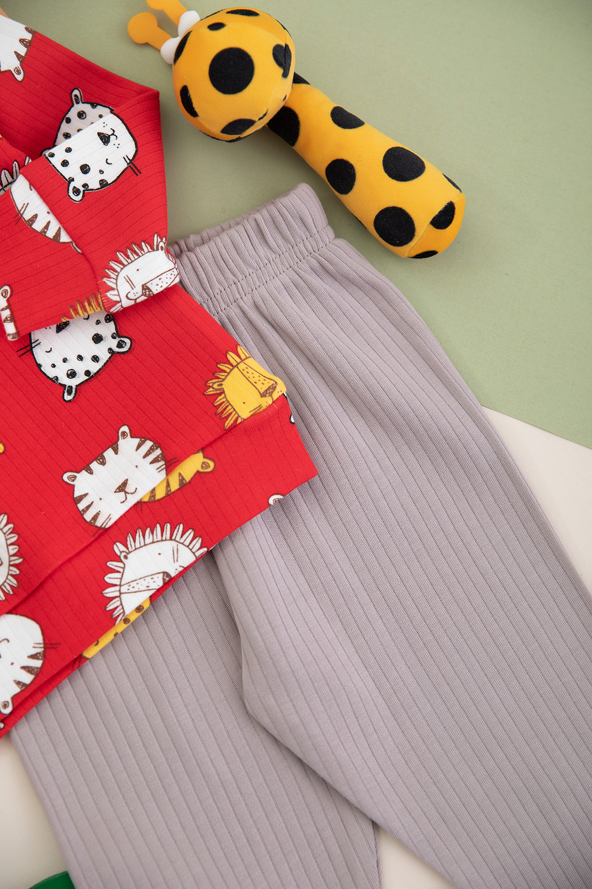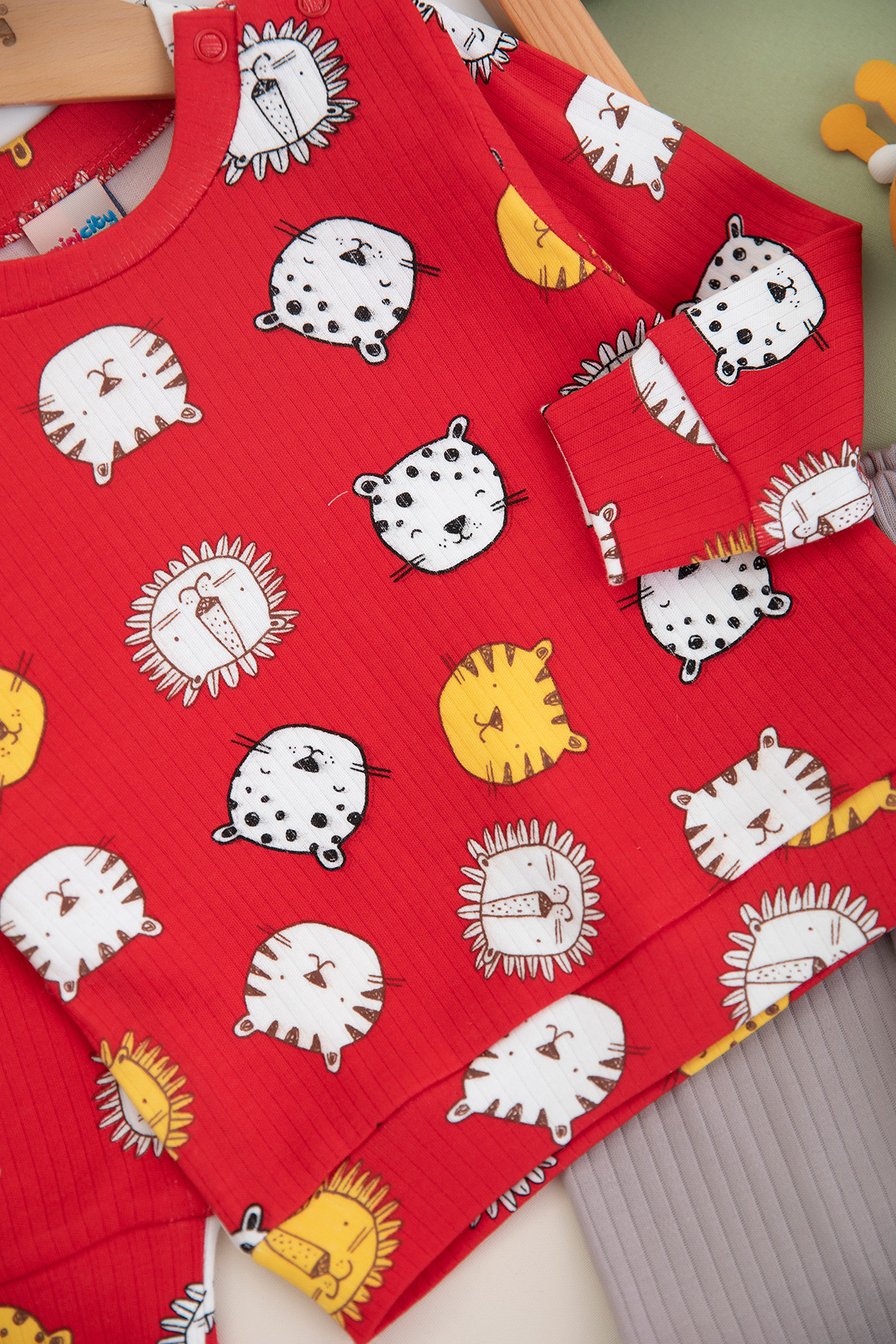 Erkek Bebek Aslan Baskılı Takım - 23658 (9-24 Ay)