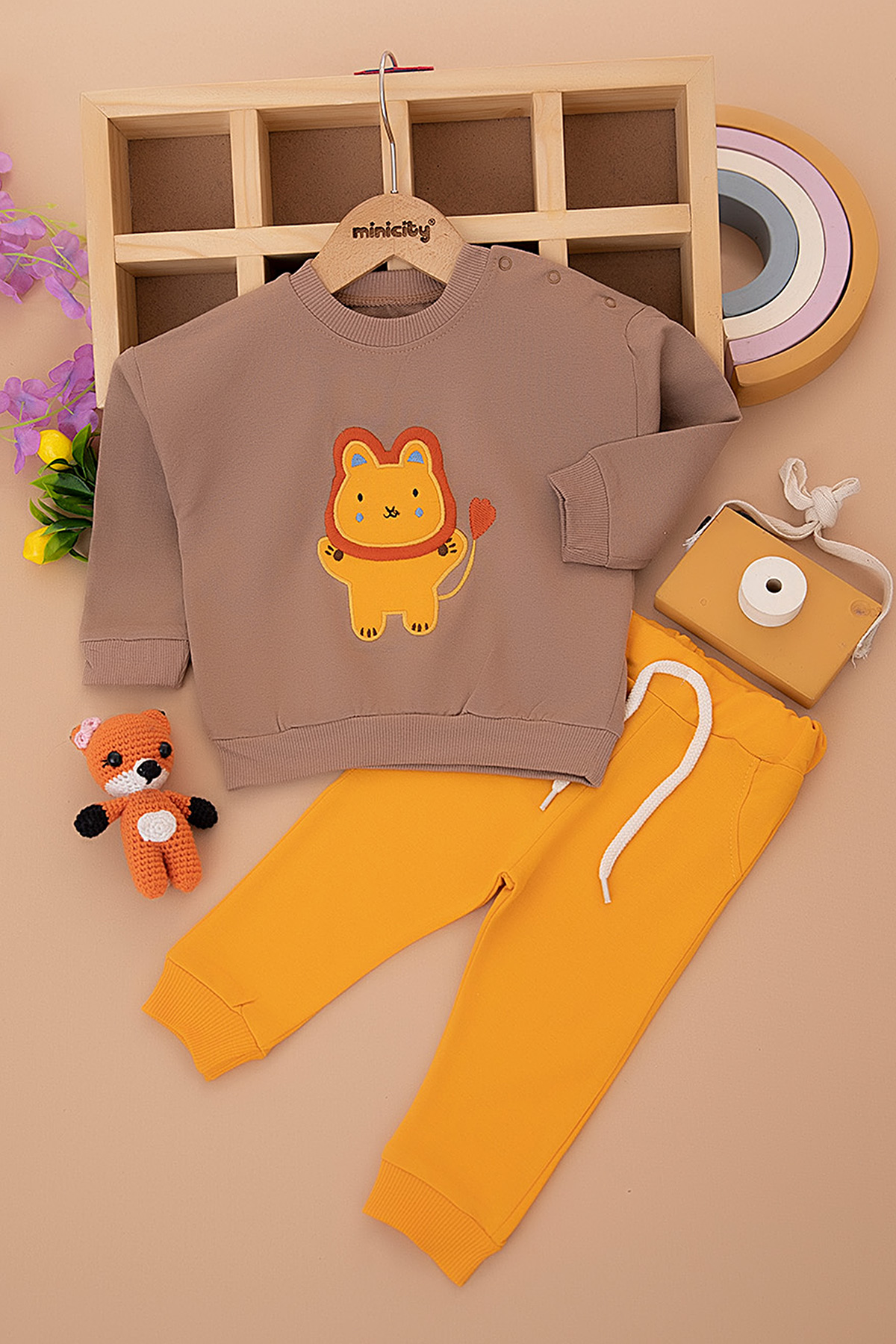 Erkek Bebek Aslan Nakışlı Takım - 1109 (6-24 Ay)