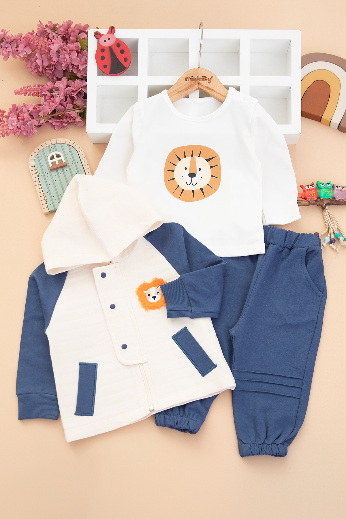 Erkek Bebek Aslan Nakışlı Üçlü Takım - 1086 (9-24 Ay)