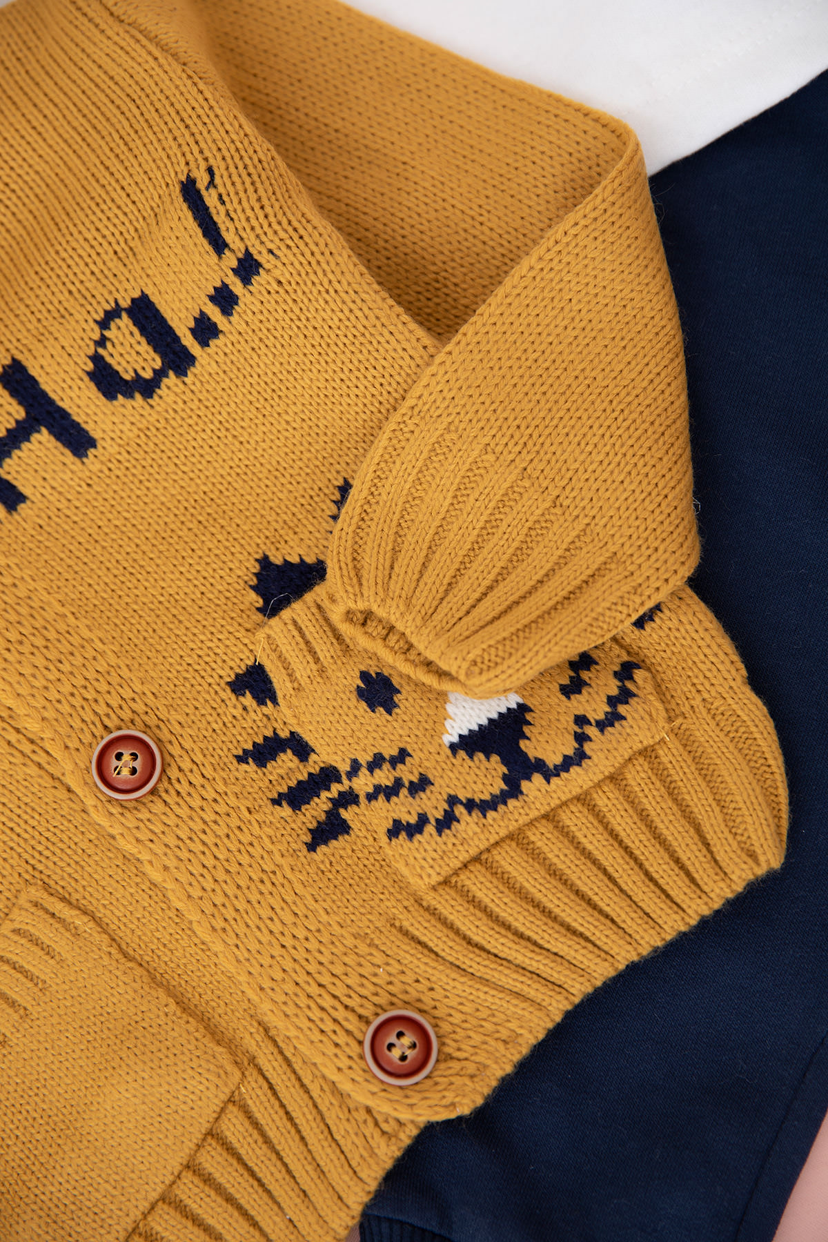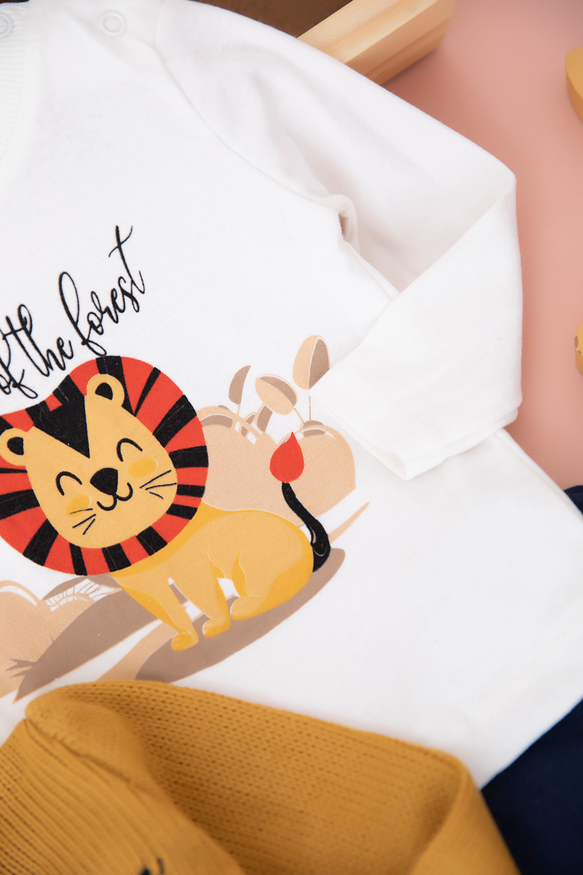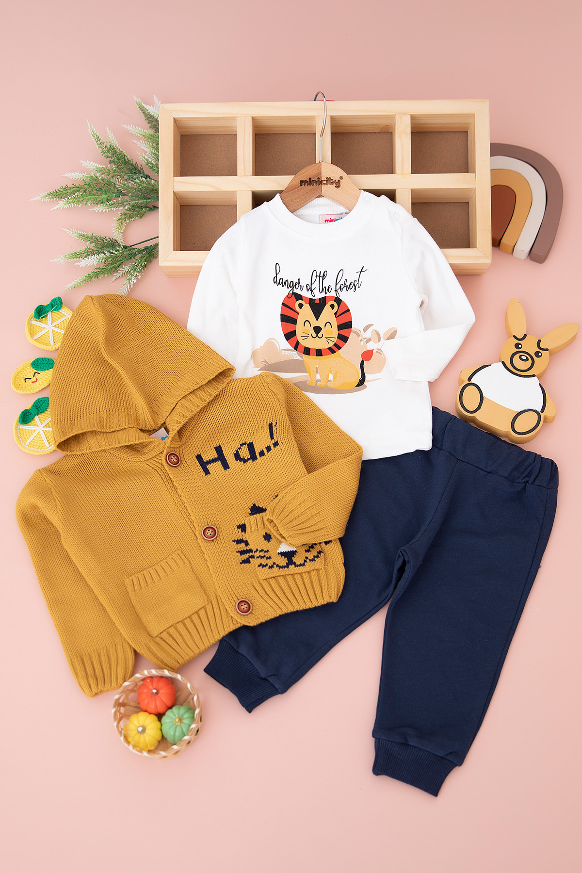 Erkek Bebek Aslan Örmeli Triko Üçlü Takım - 13774 (6-24 Ay)