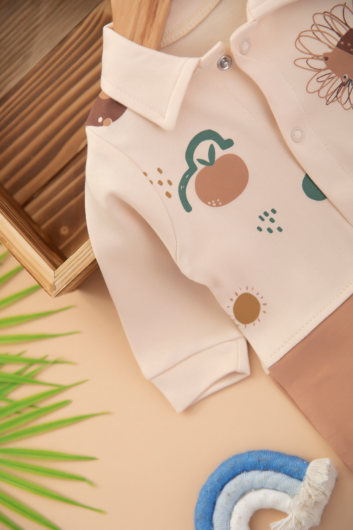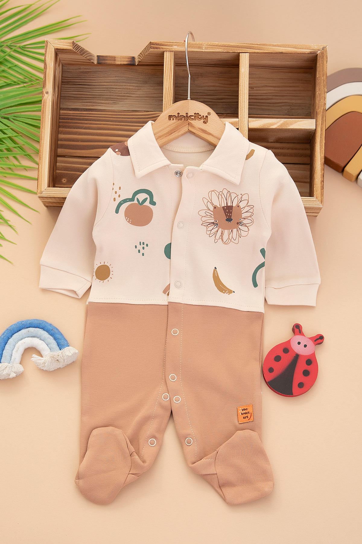 Erkek Bebek Aslan Soyut Baskılı Tulum - 2885 (0-6 Ay)
