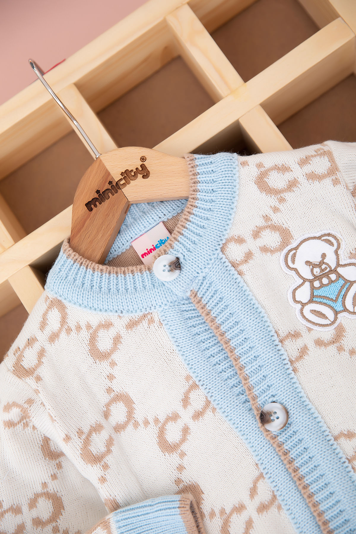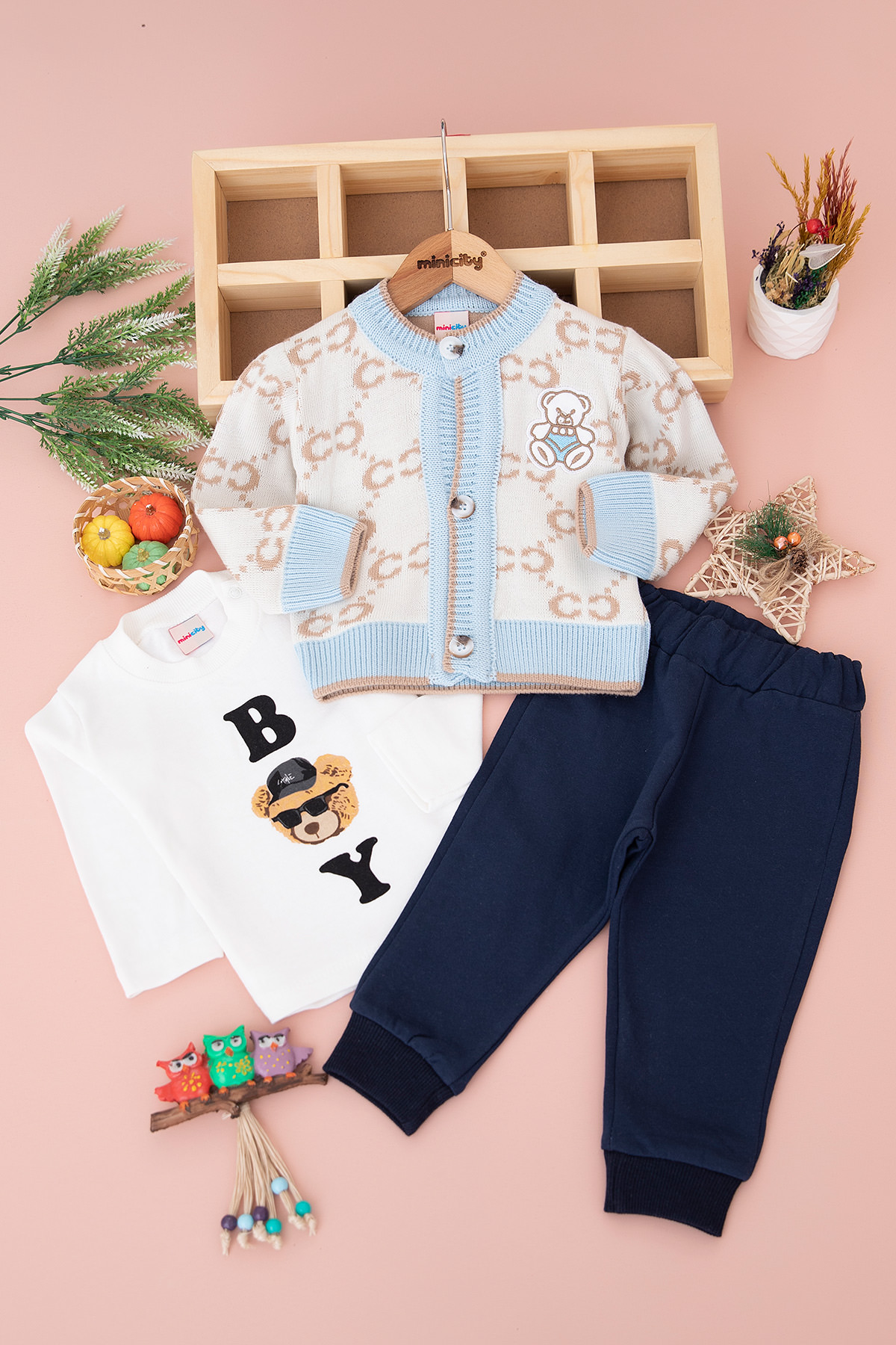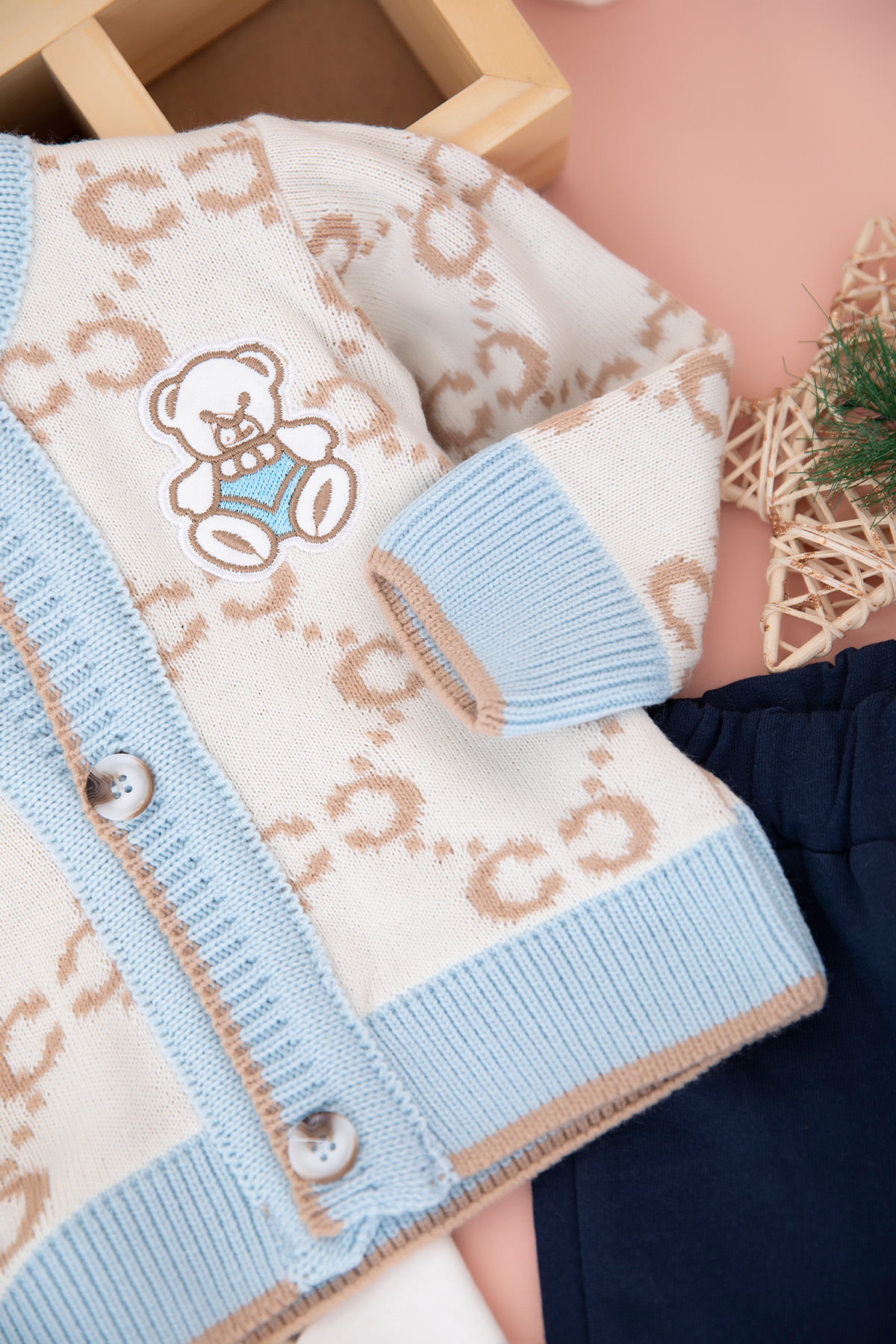 Erkek Bebek Ayı Aplikeli Triko Üçlü Takım - 13784 (6-24 Ay)