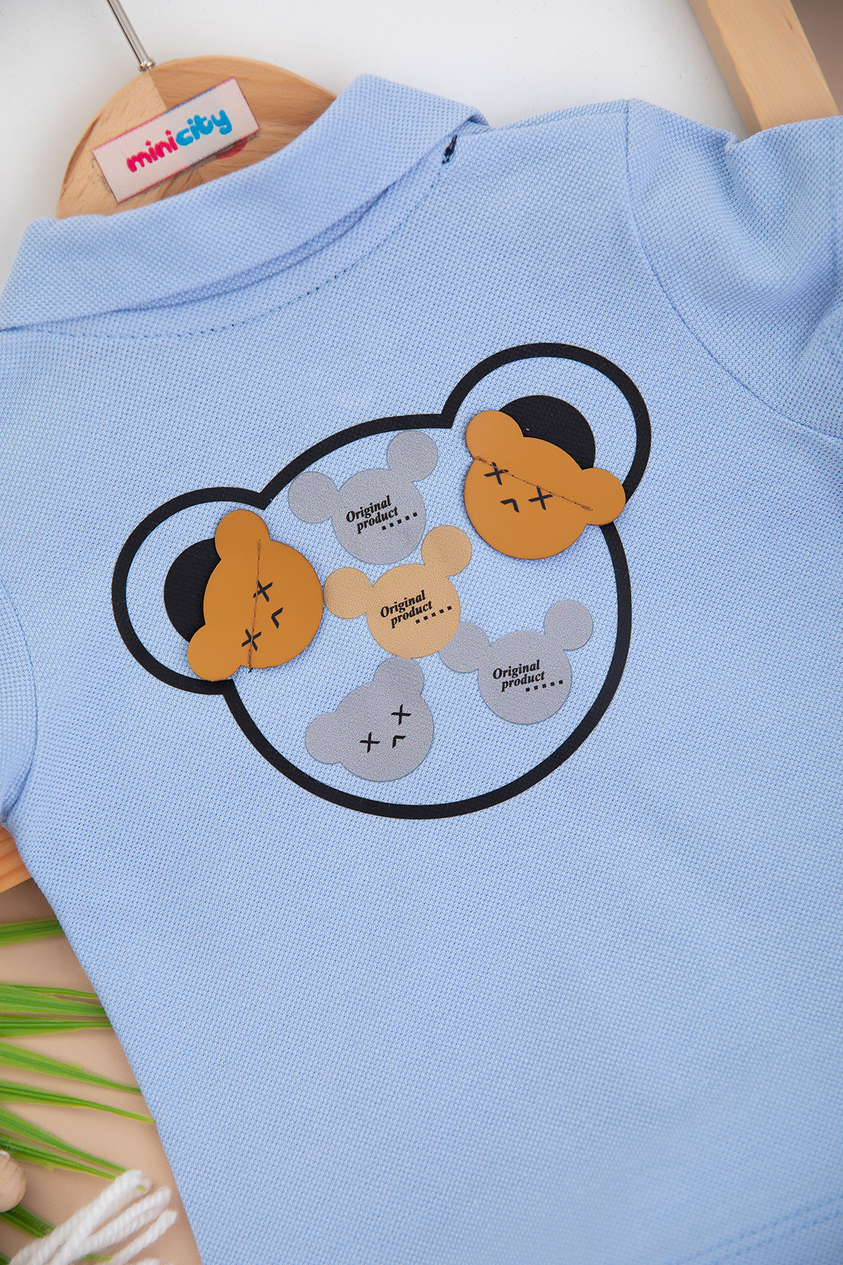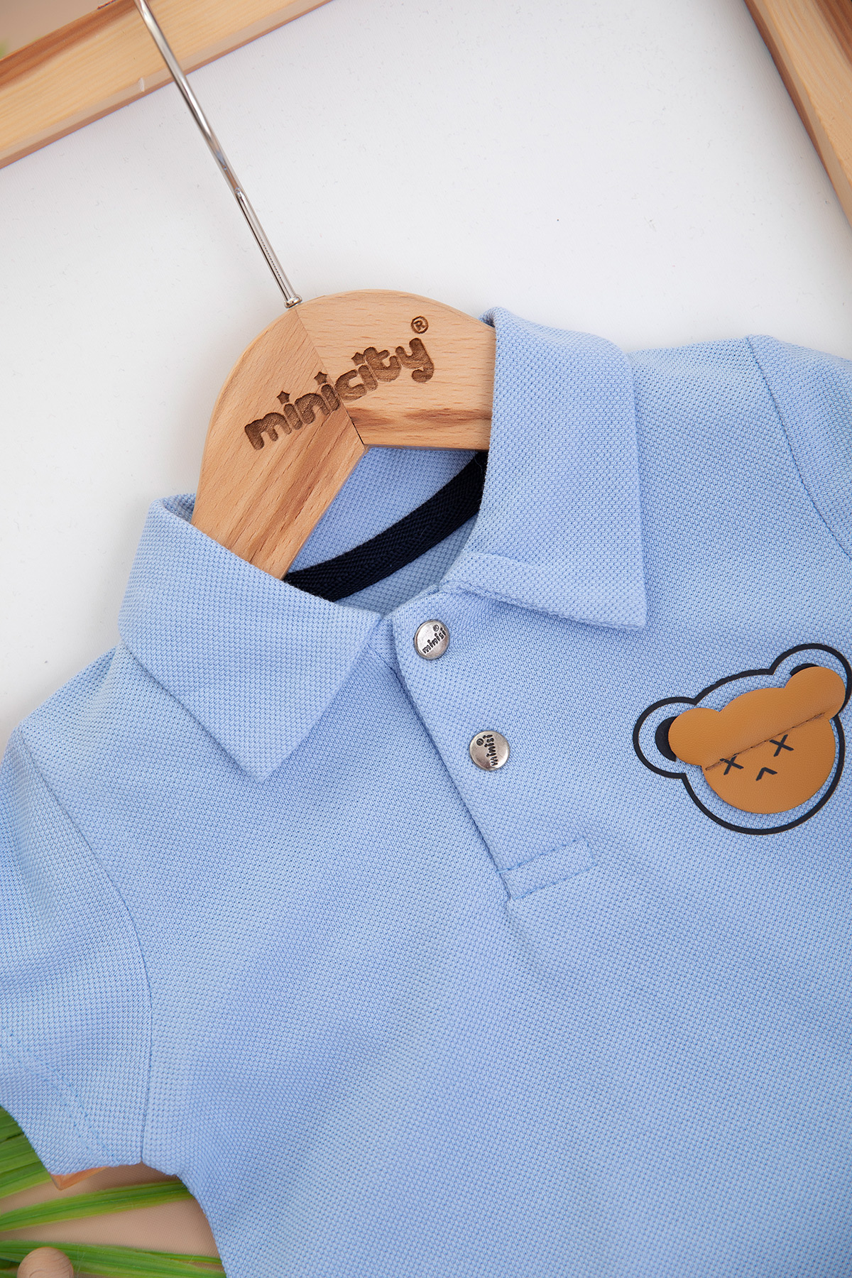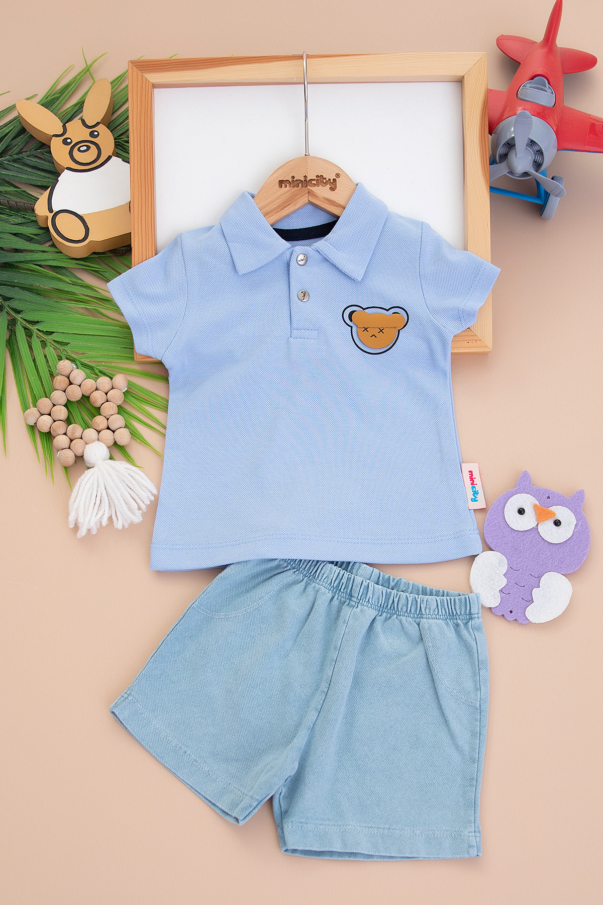 Erkek Bebek Ayı Armalı Kot Şortlu Takım - 0186 (6-18 Ay)