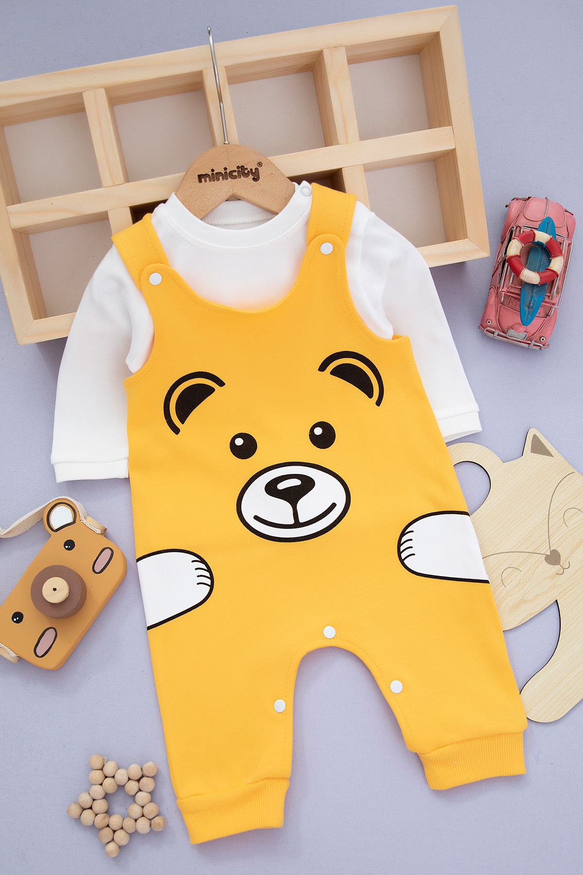 Erkek Bebek Ayı Baskılı Badili Bahçıvan - 1089 (0-9 Ay)