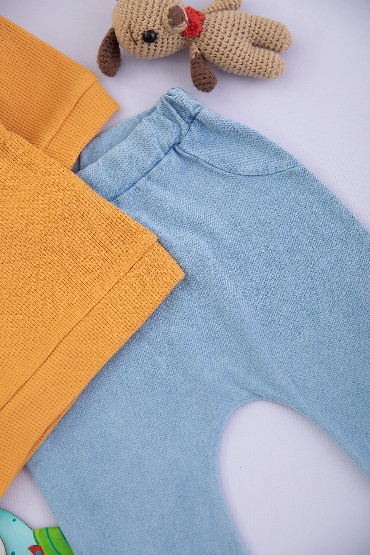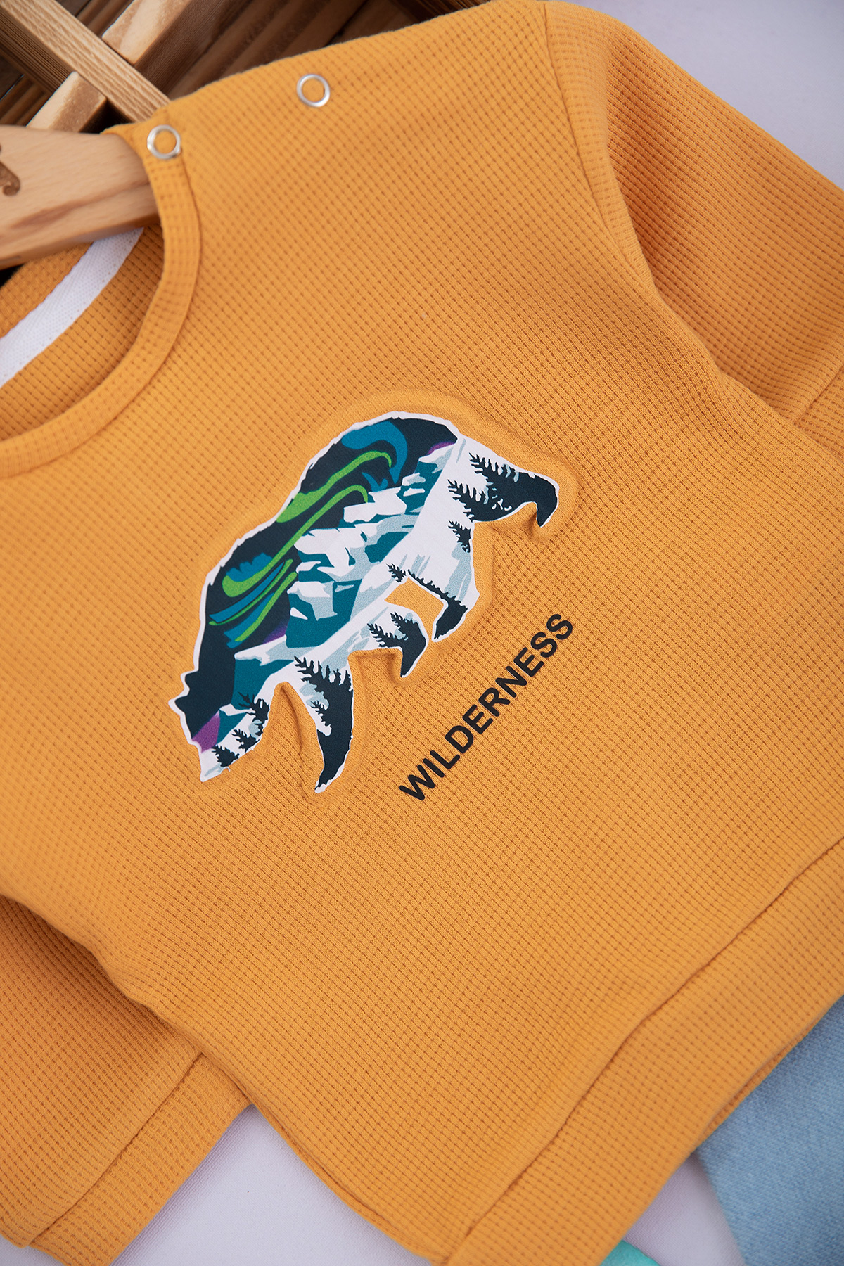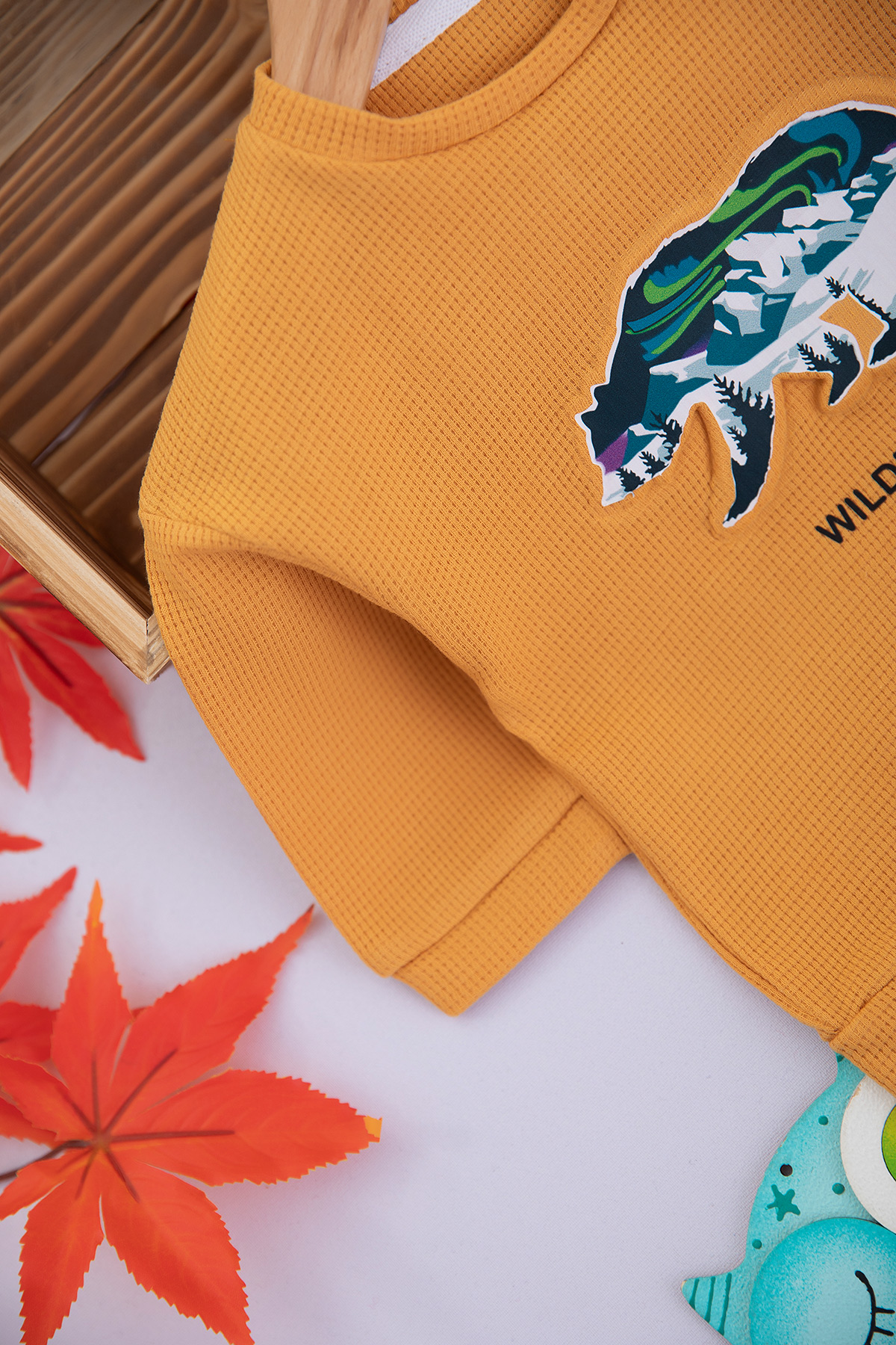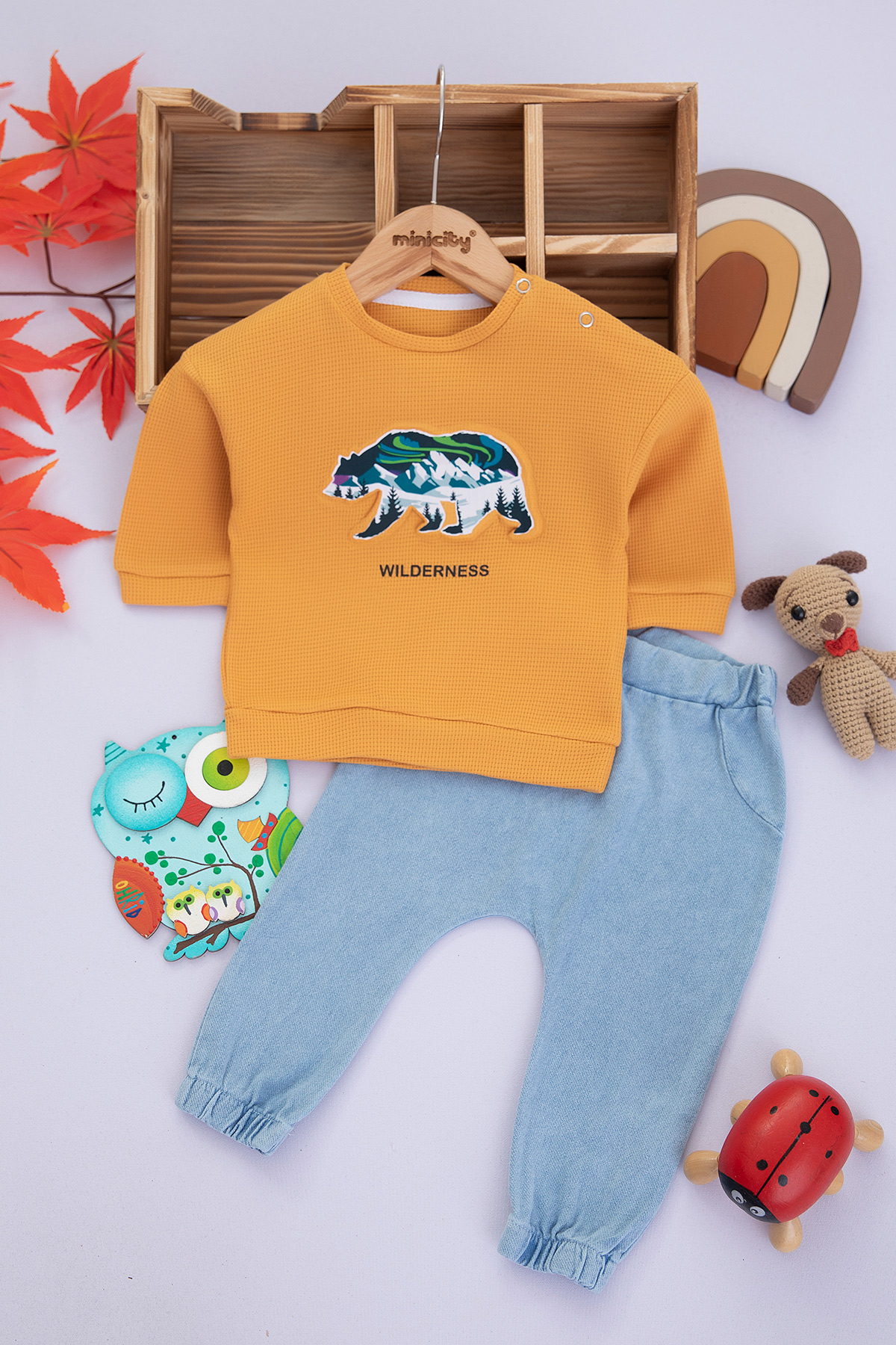 Erkek Bebek Ayı Baskılı Gofre Takım - 0237 (6-18 Ay)