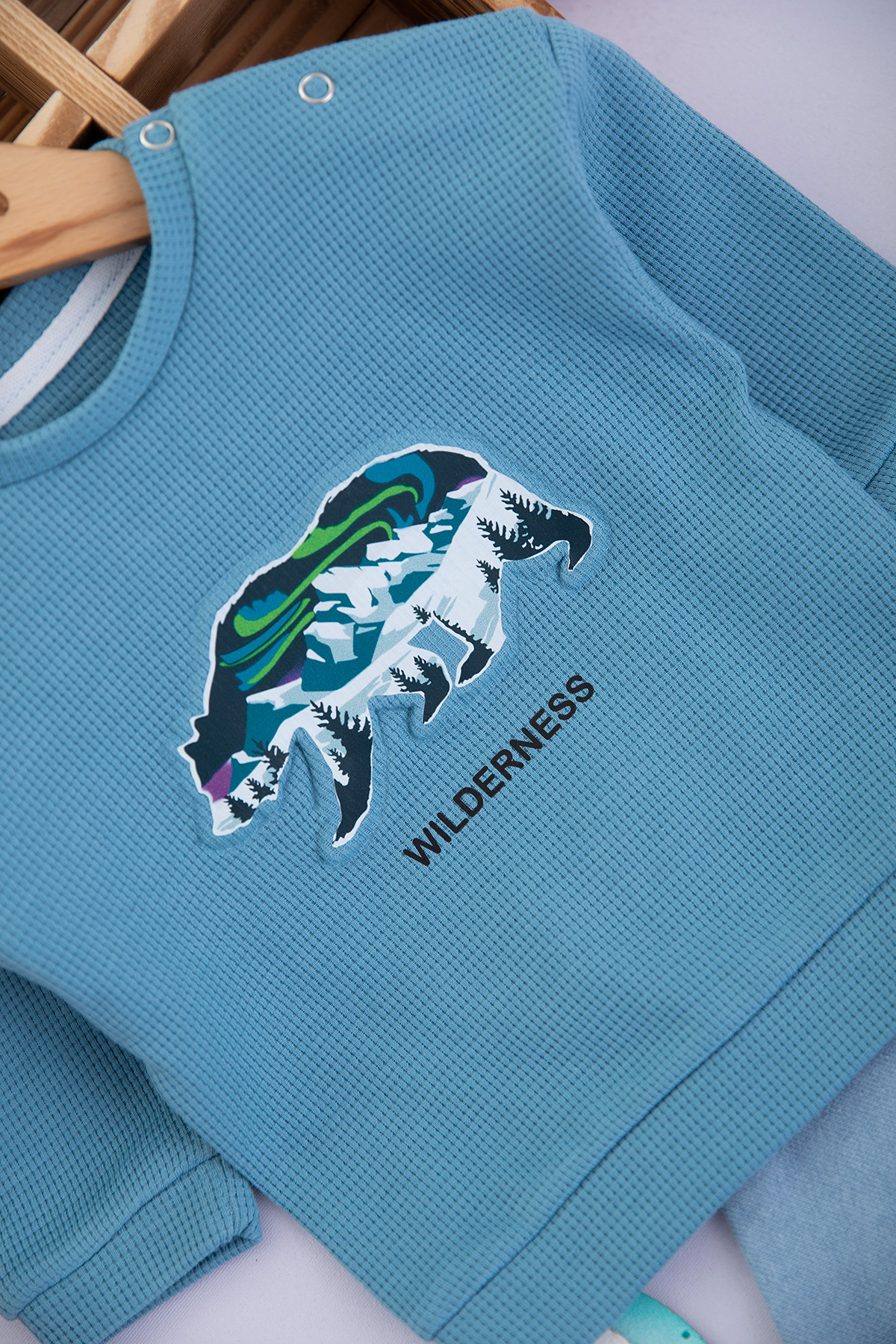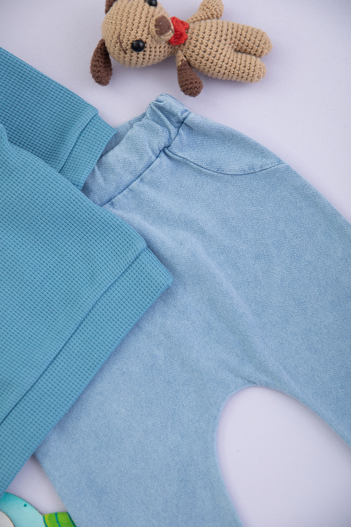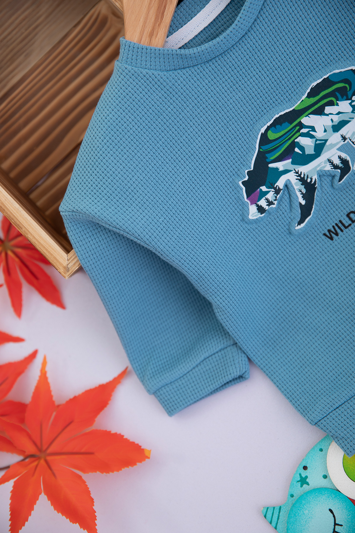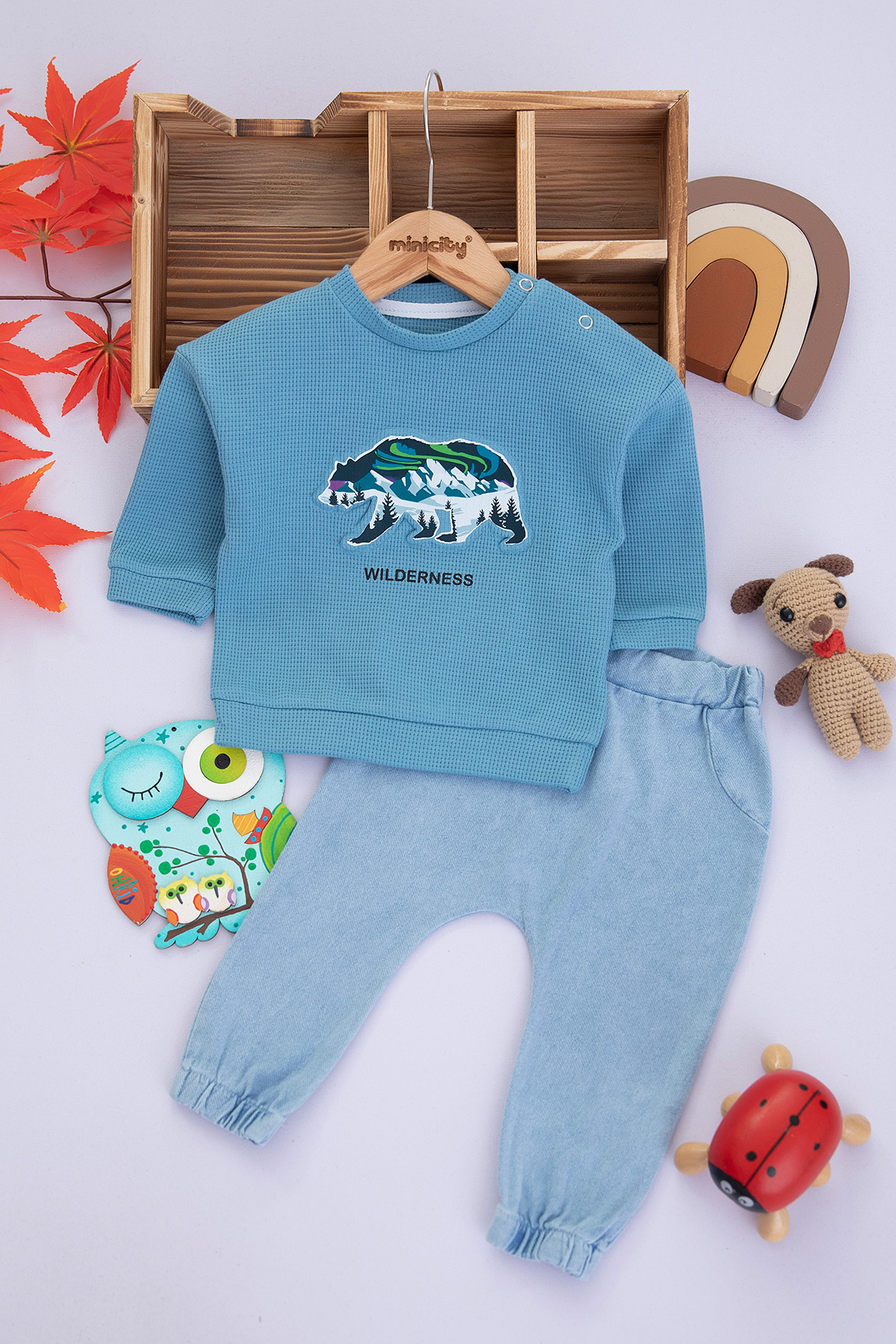 Erkek Bebek Ayı Baskılı Gofre Takım - 0237 (6-18 Ay)