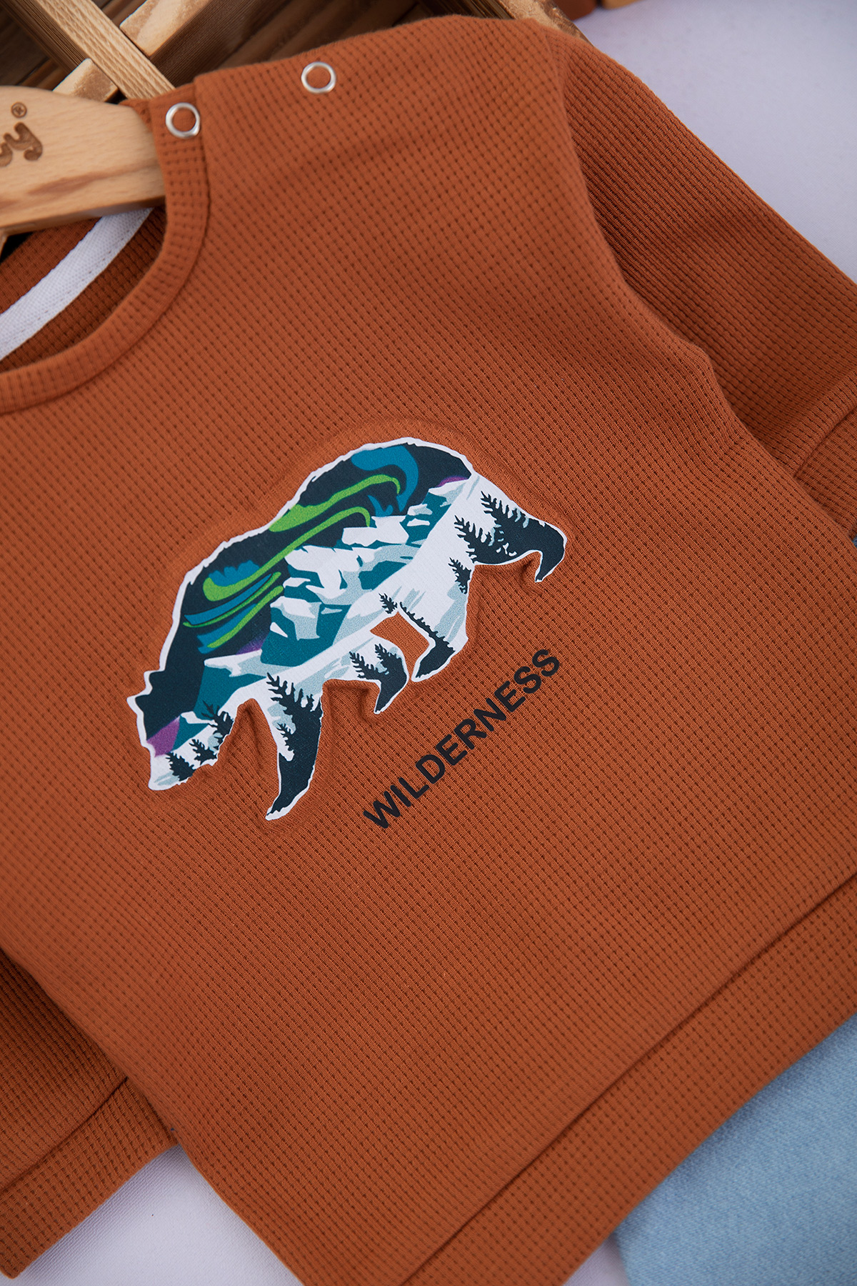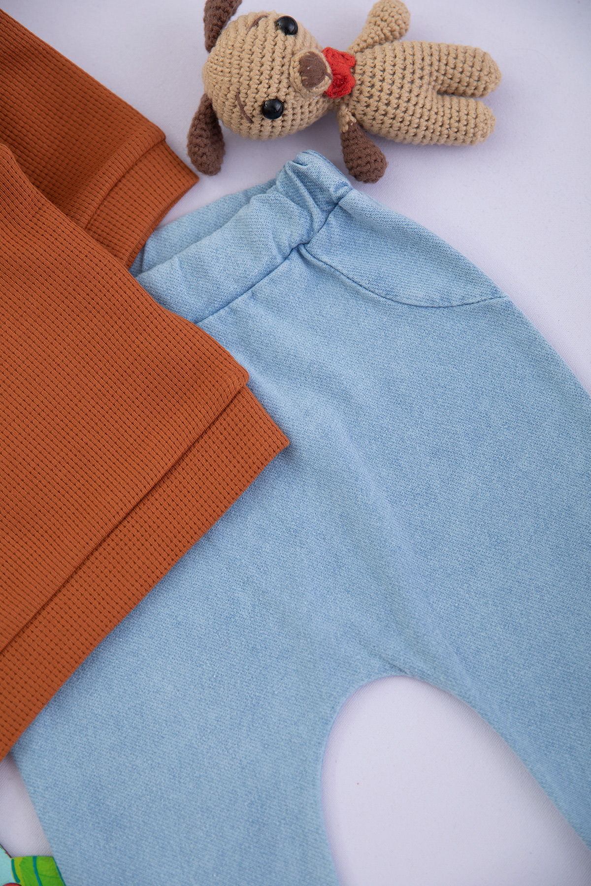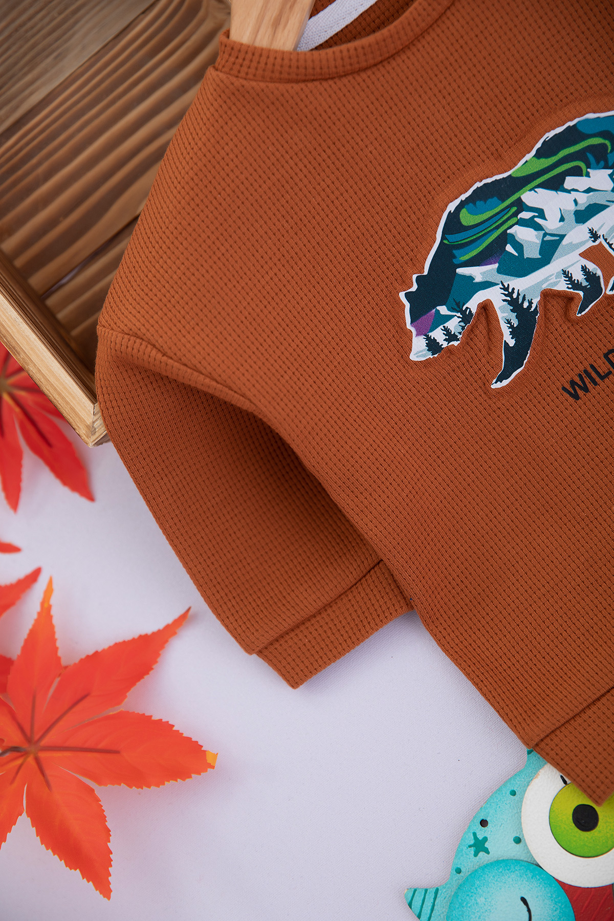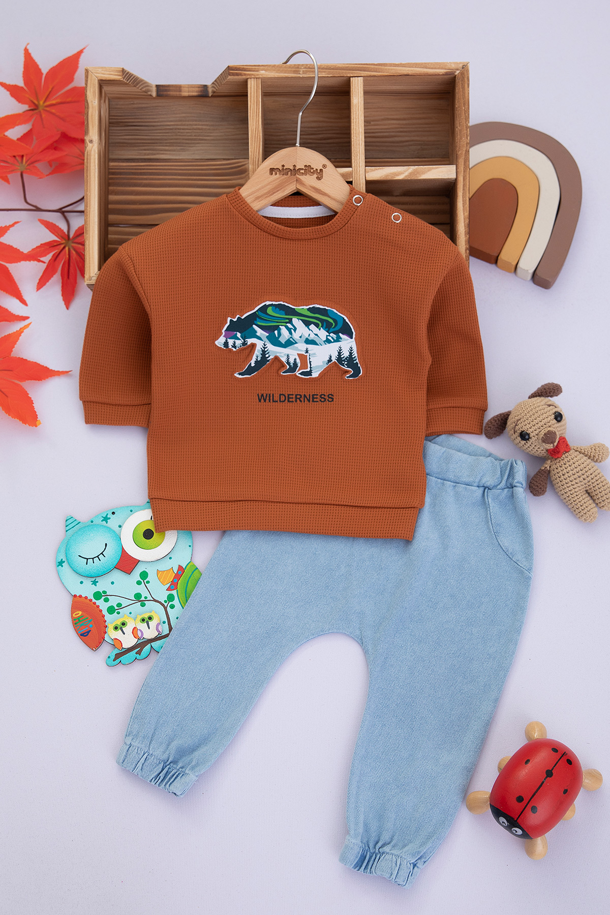 Erkek Bebek Ayı Baskılı Gofre Takım - 0237 (6-18 Ay)