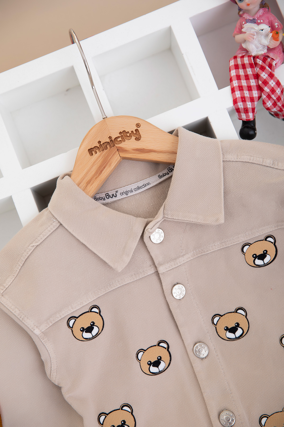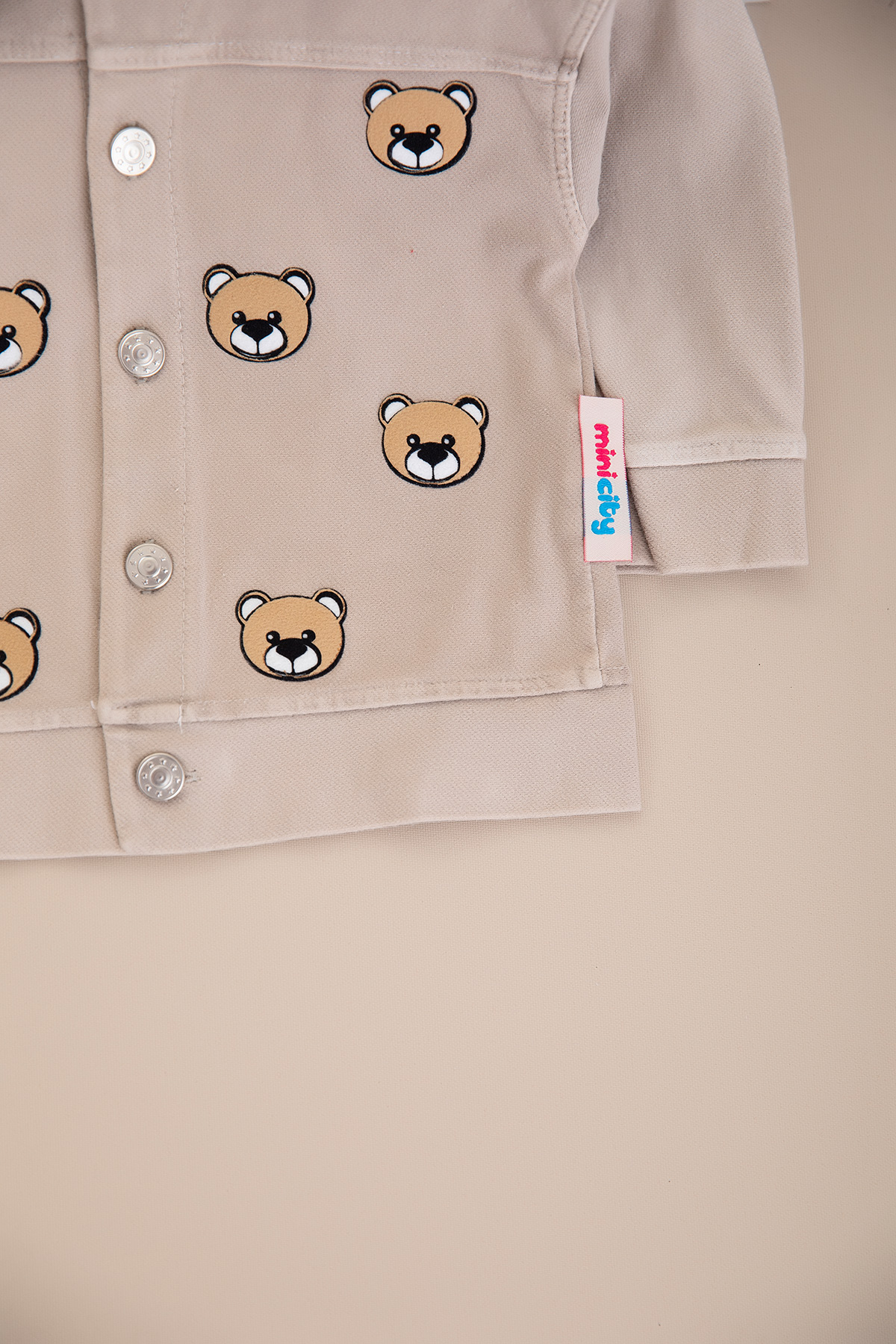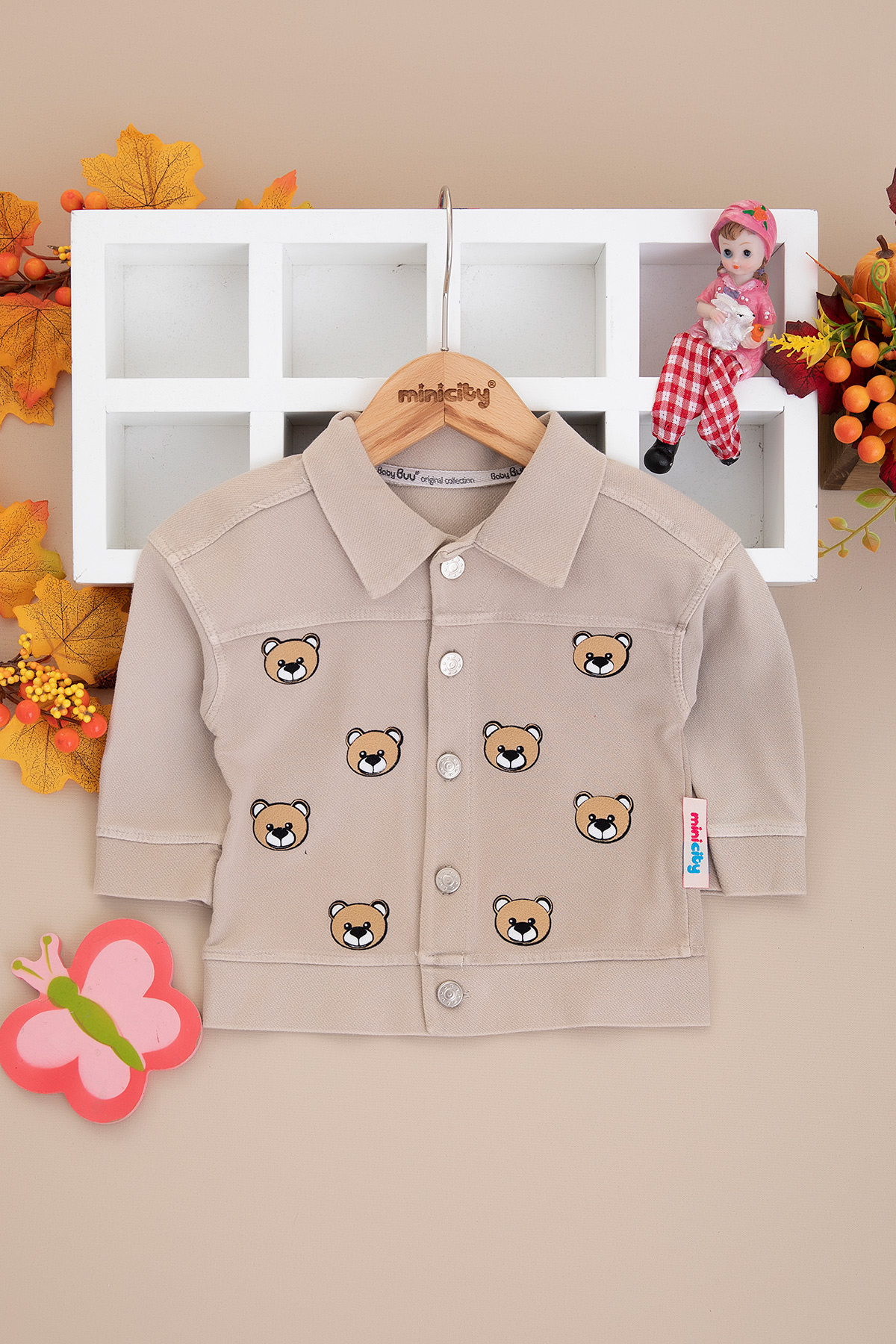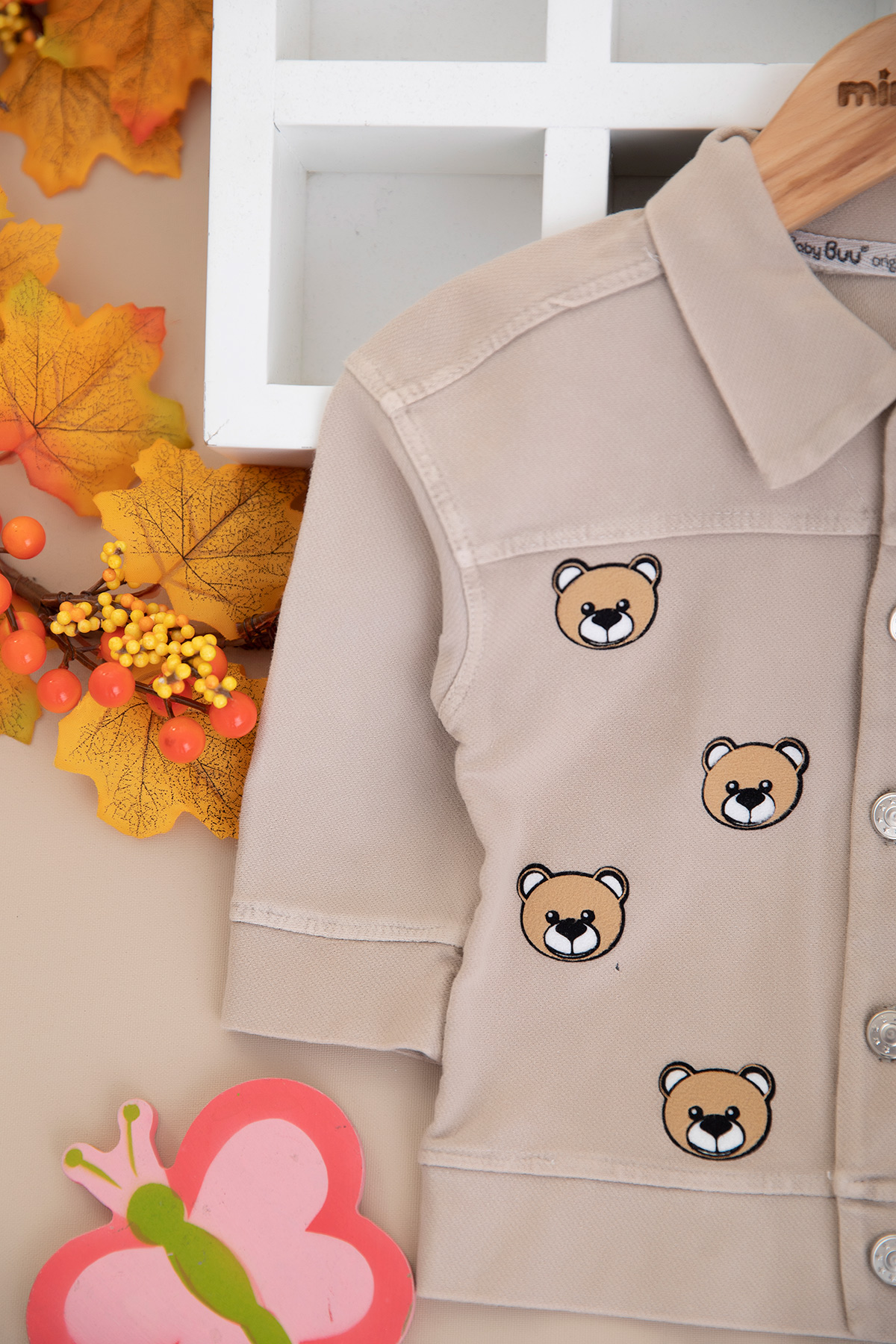 Erkek Bebek Ayı Baskılı Kot Ceket - 0262 (9-24 Ay)