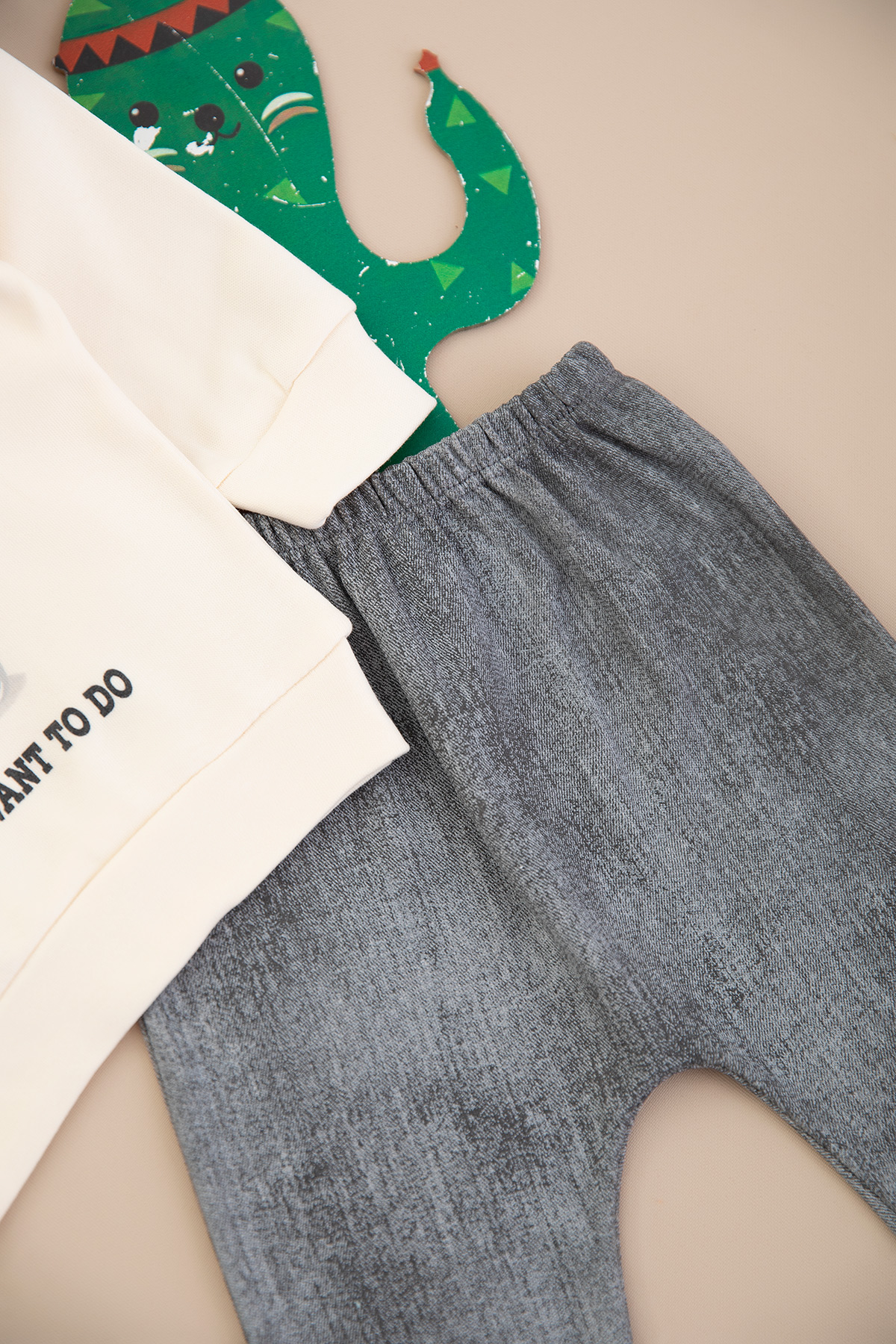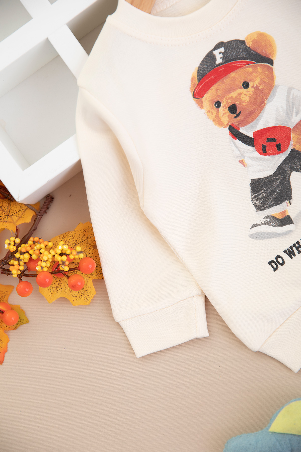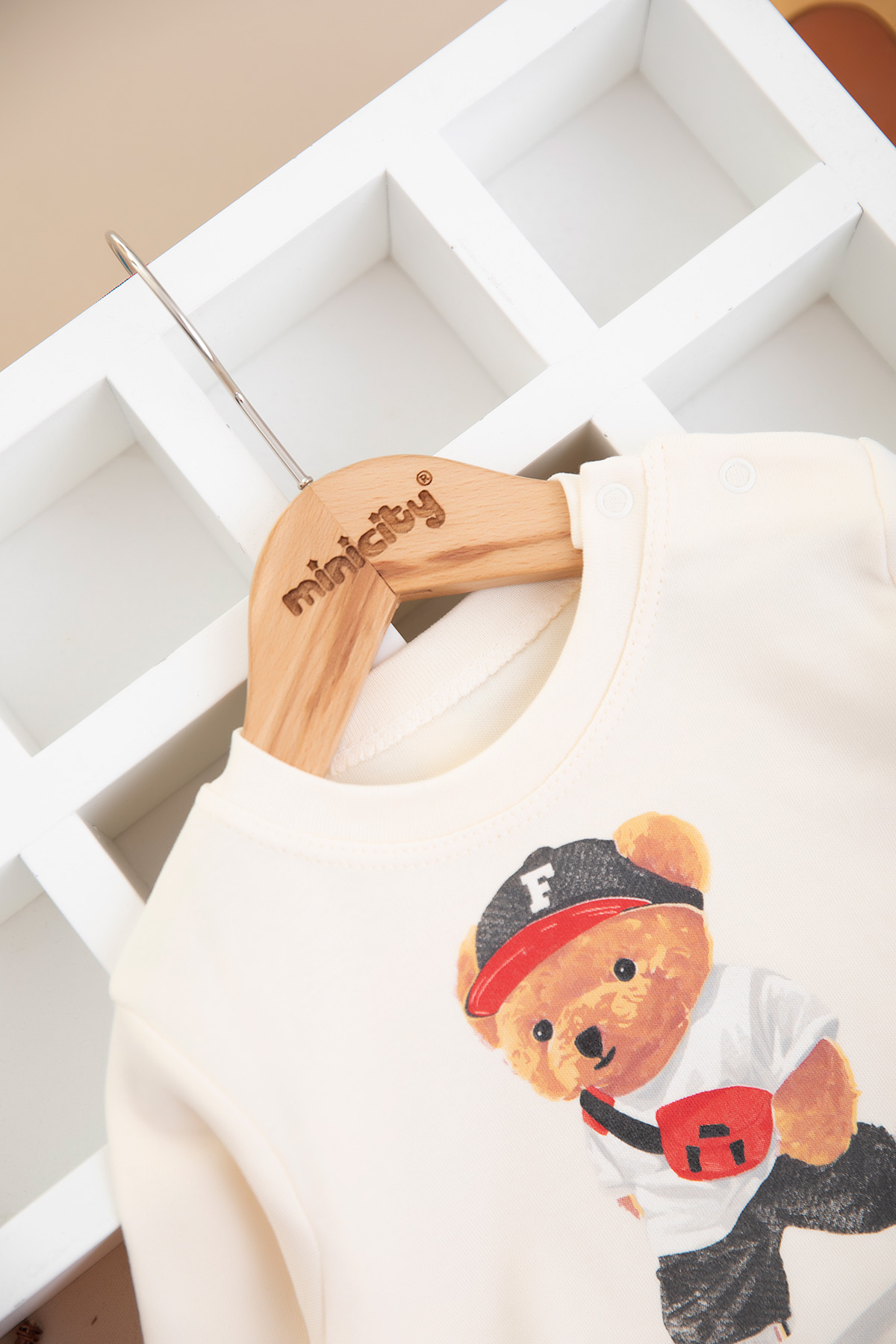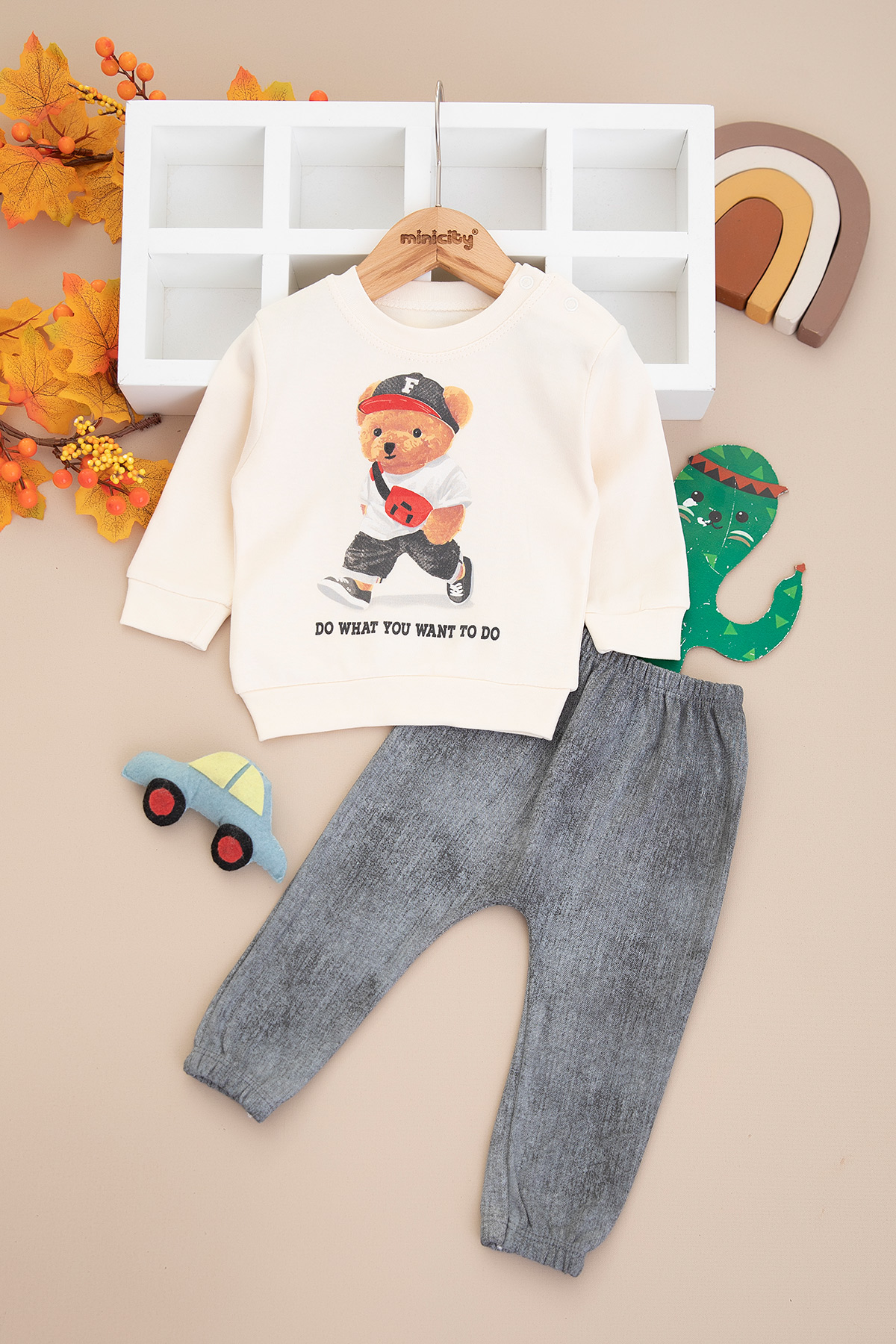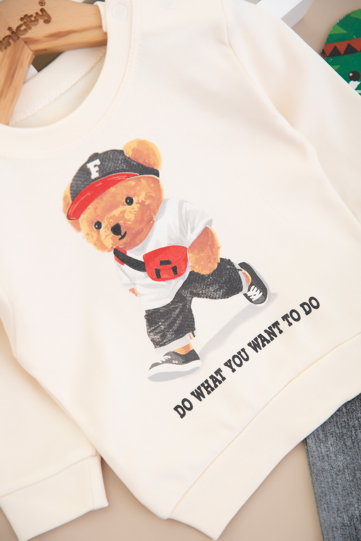 Erkek Bebek Ayı Baskılı Kotlu Takım - 031 (9-18 Ay)