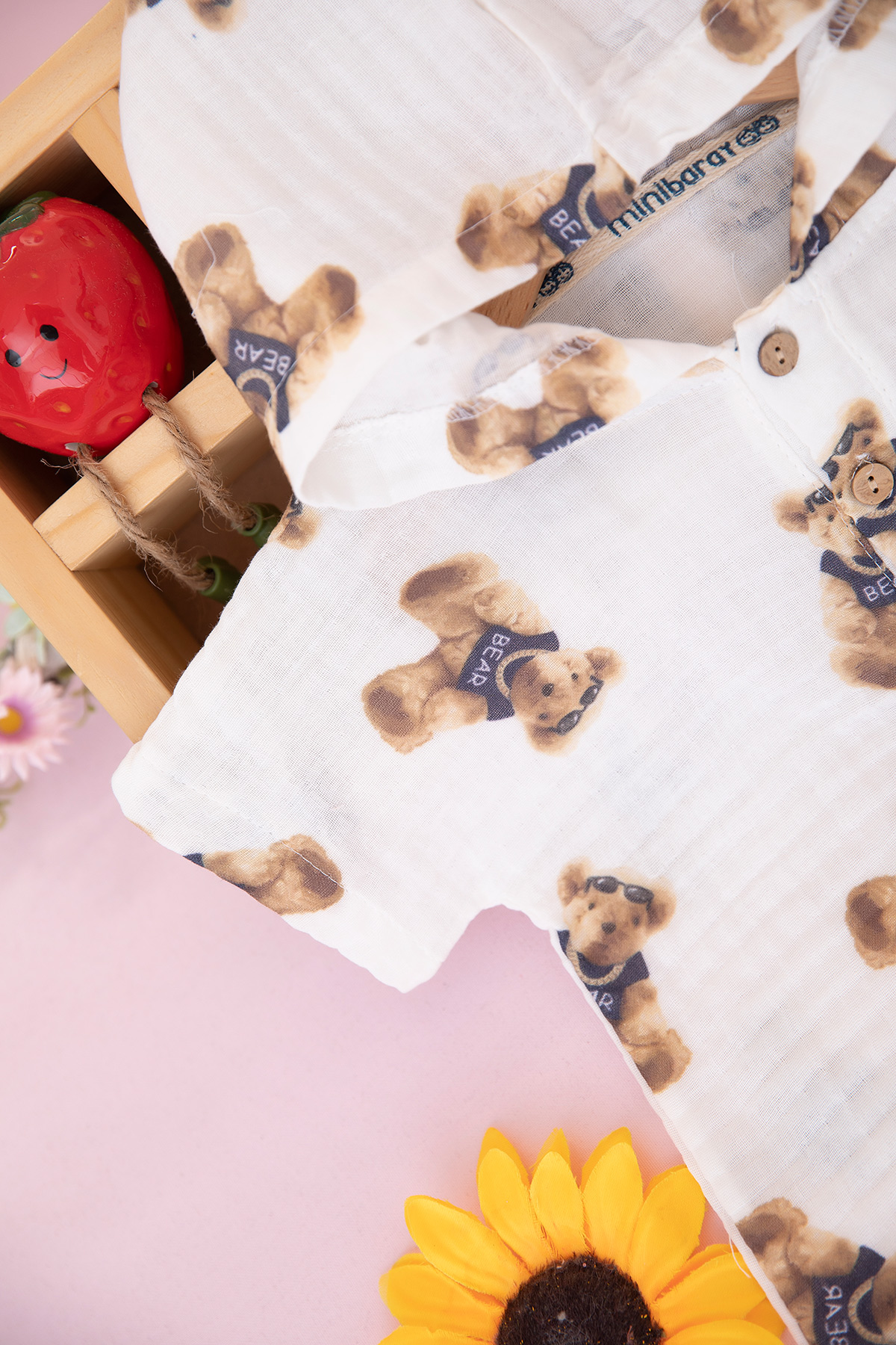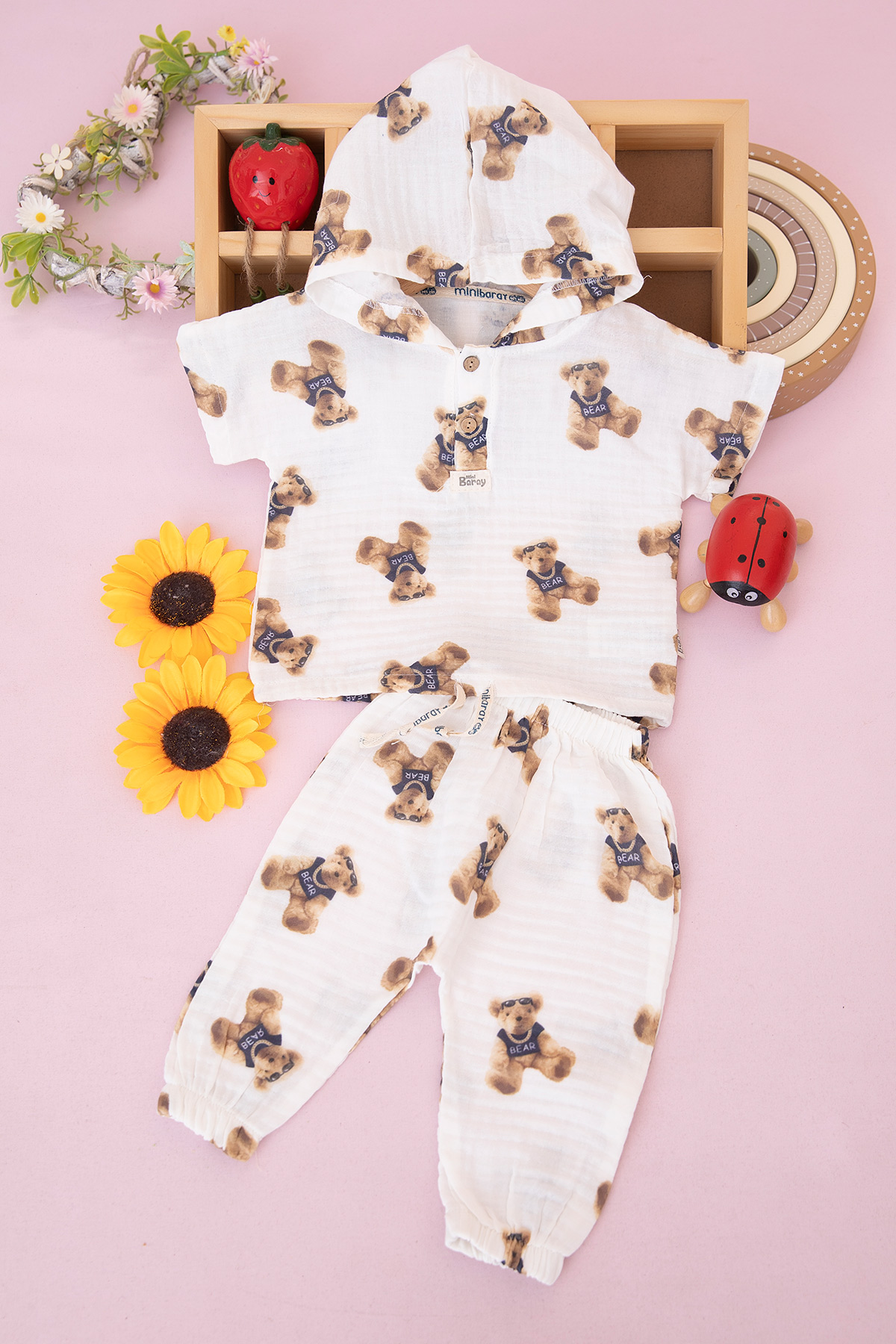 Erkek Bebek Ayı Baskılı Şortlu Takım - 1001 (9-24 Ay)