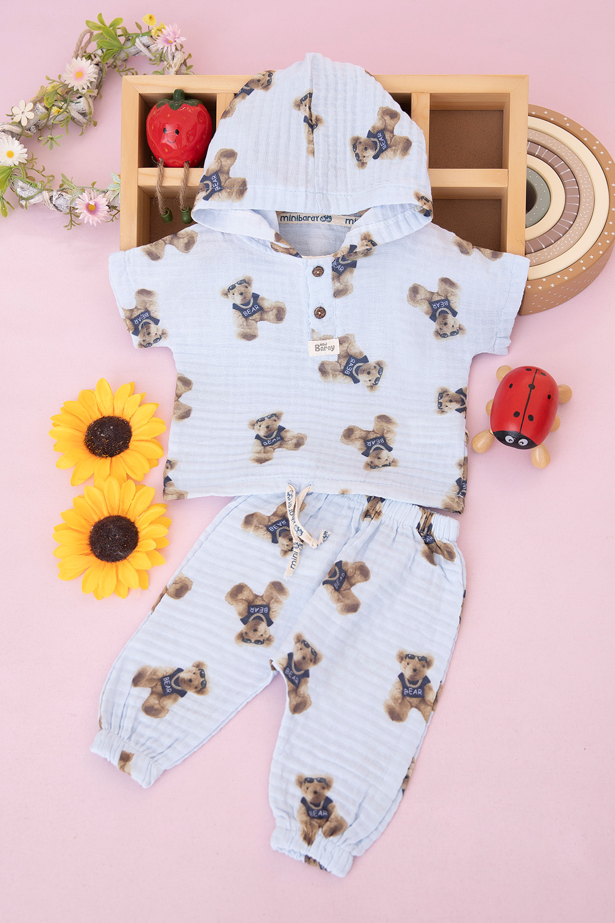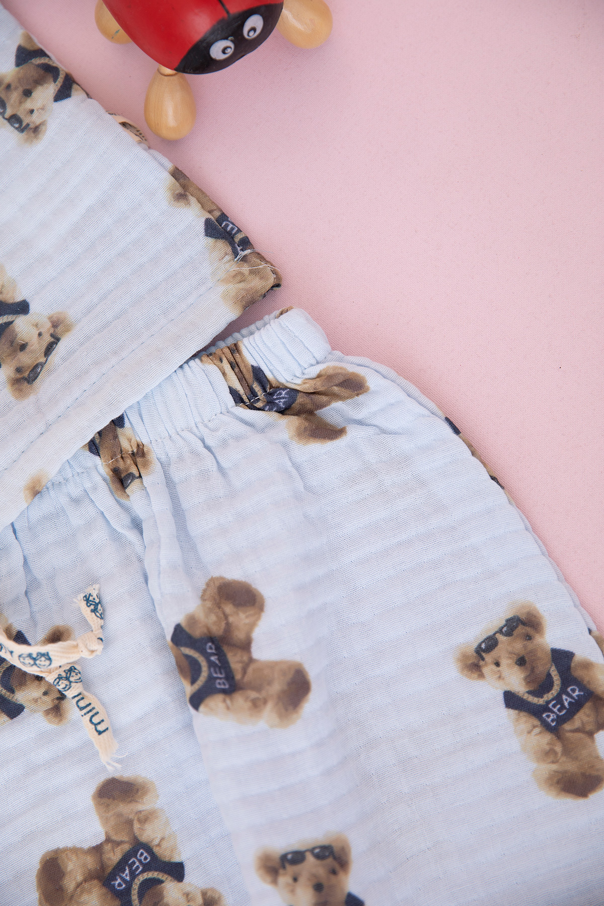 Erkek Bebek Ayı Baskılı Şortlu Takım - 1001 (9-24 Ay)
