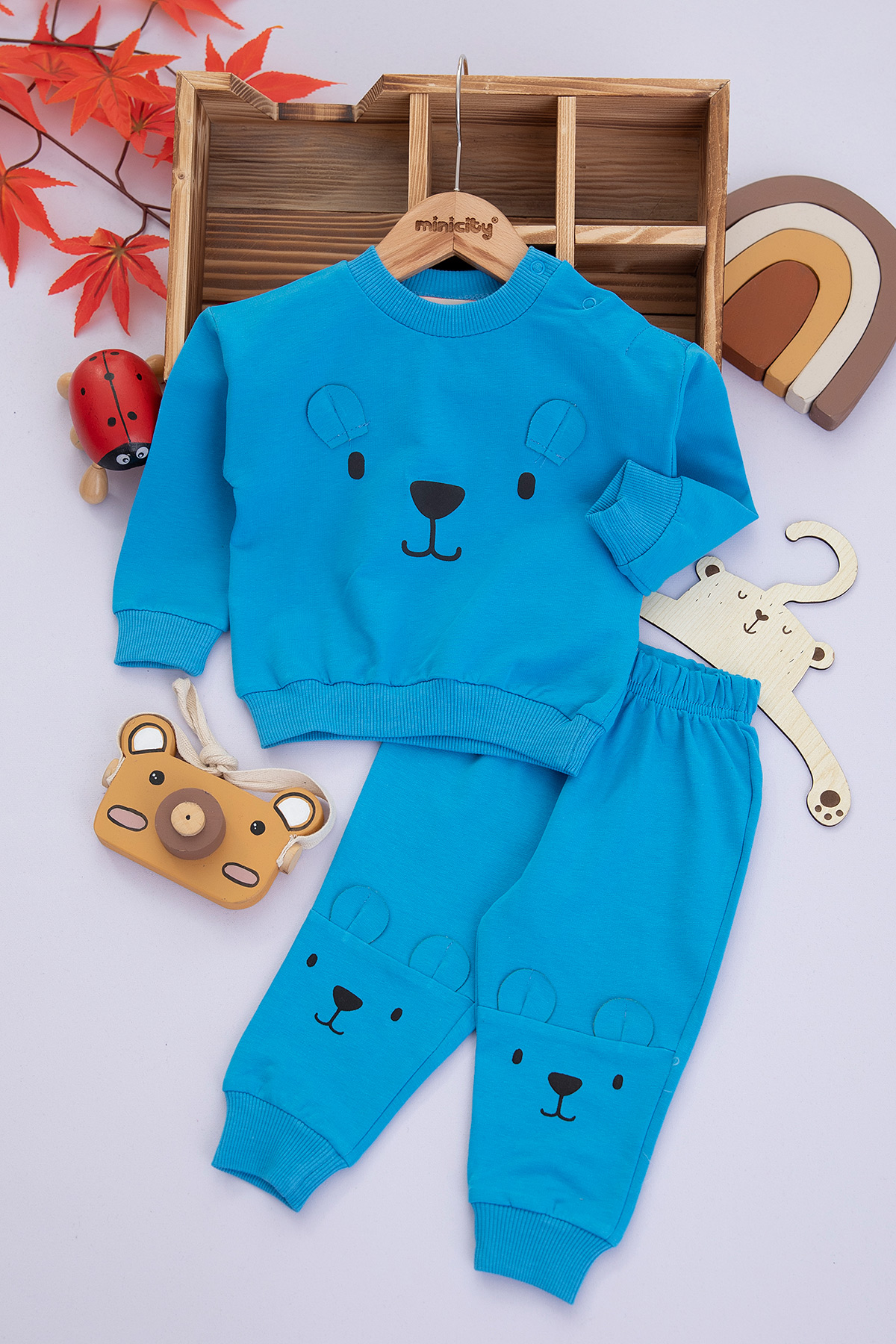 Erkek Bebek Ayı Baskılı Takım - 25086 (9-24 Ay)