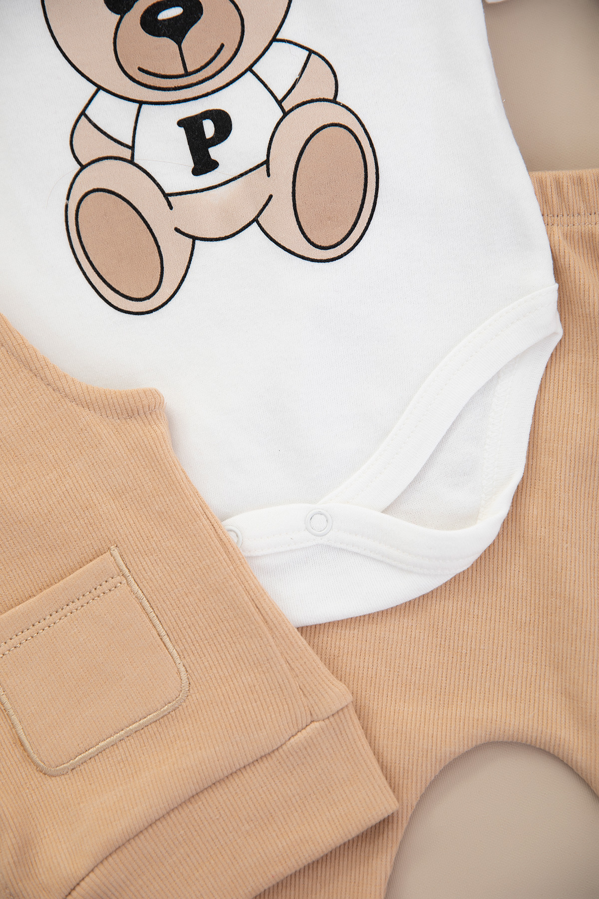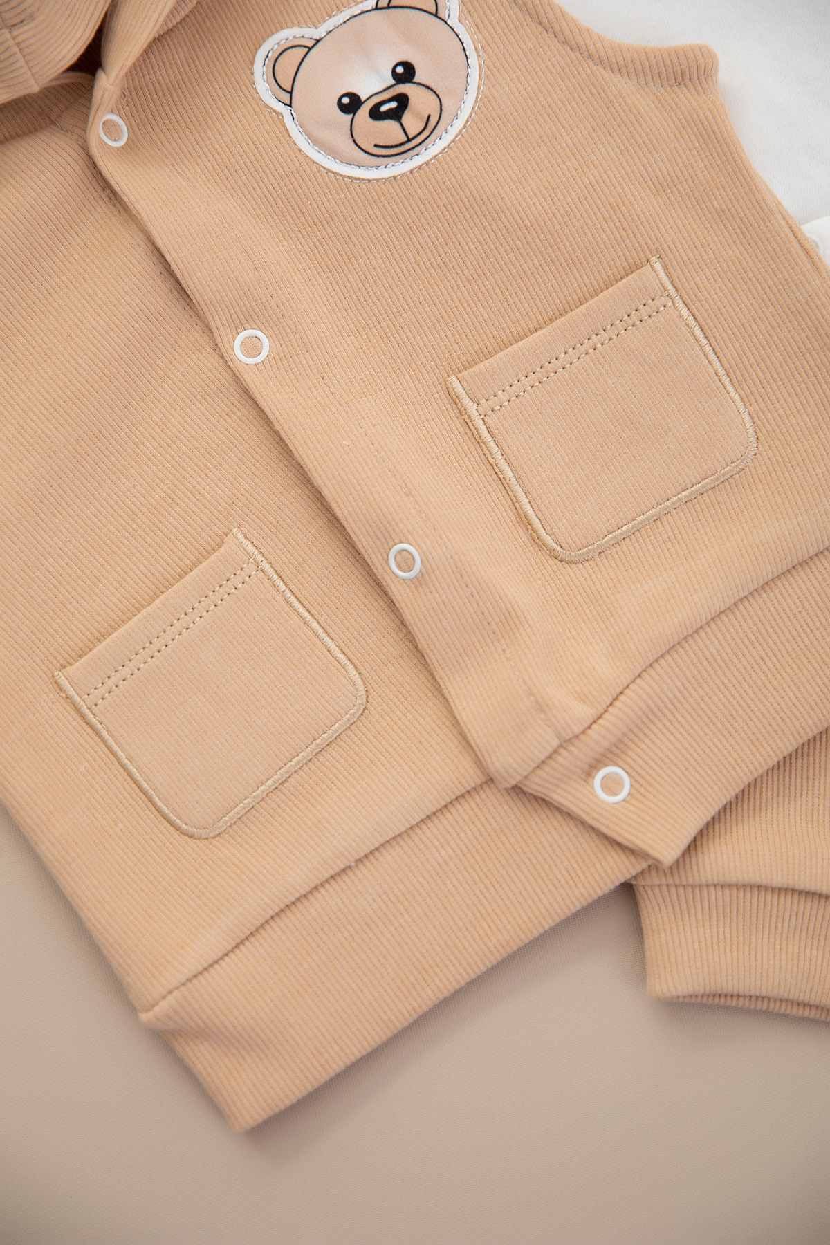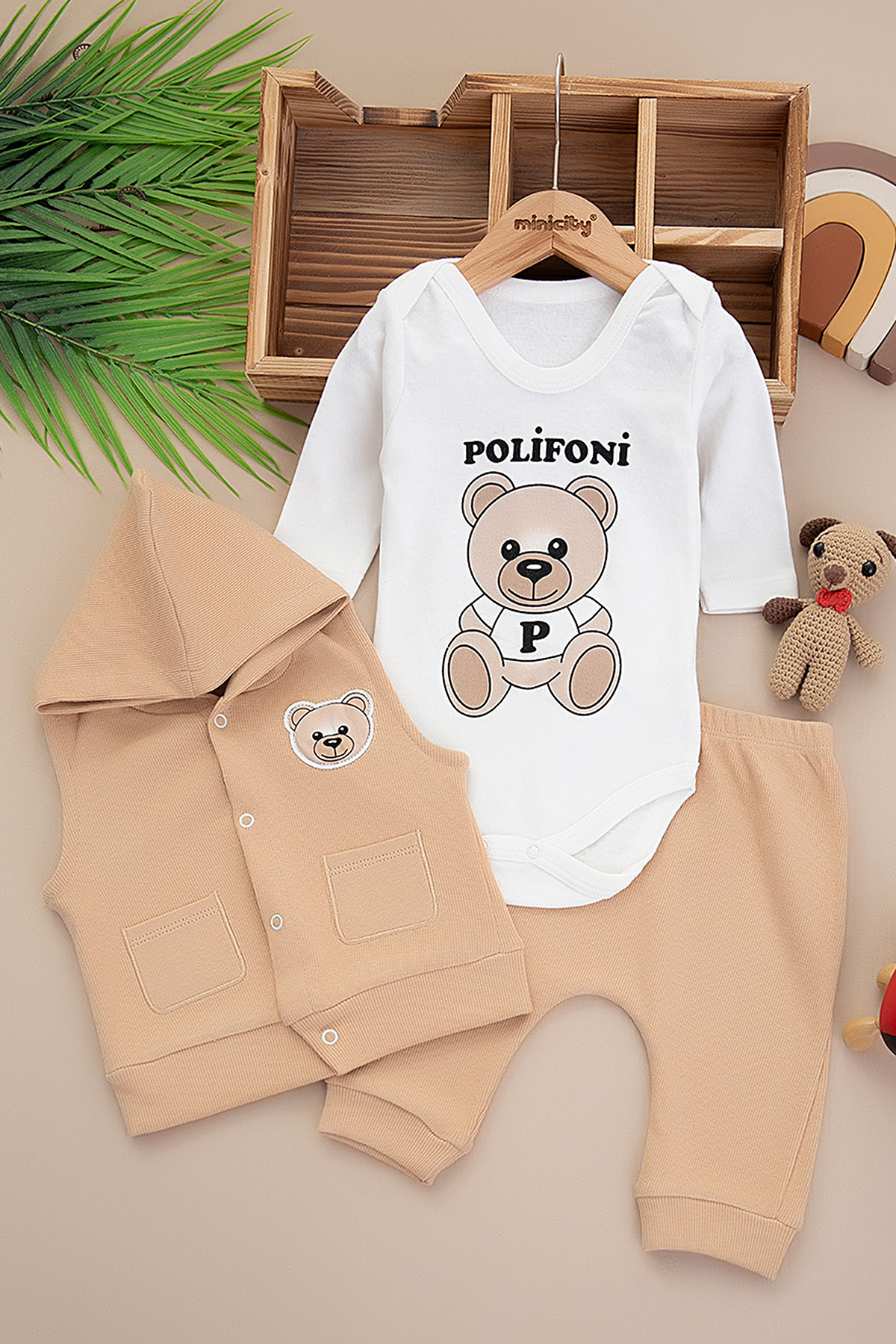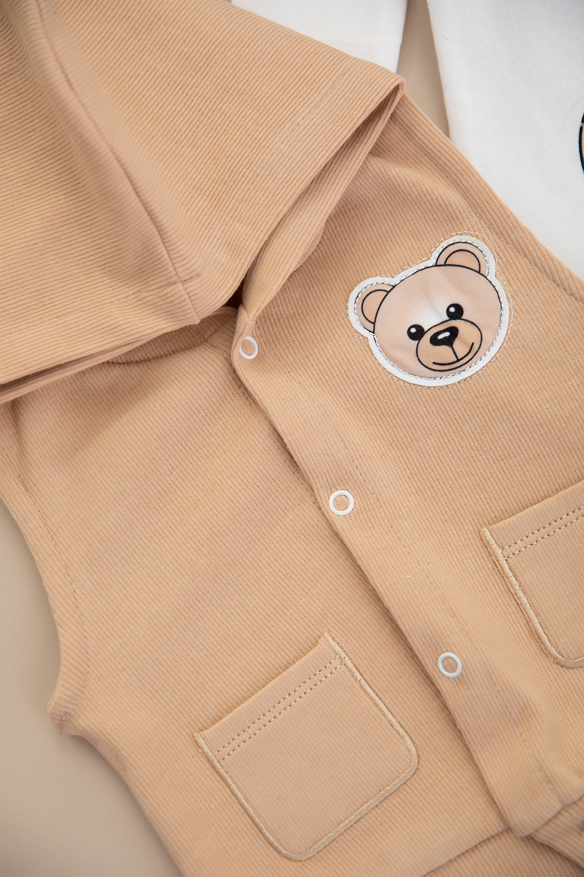 Erkek Bebek Ayı Baskılı Yelekli Takım - 1675 (3-9 Ay)