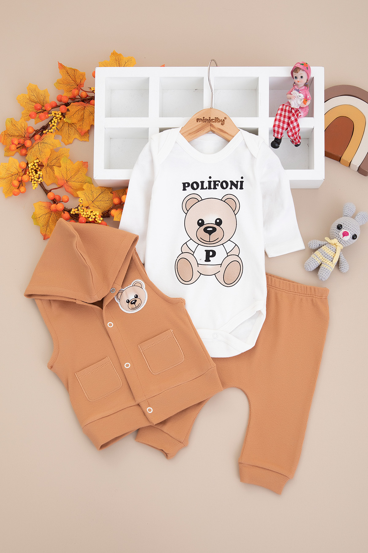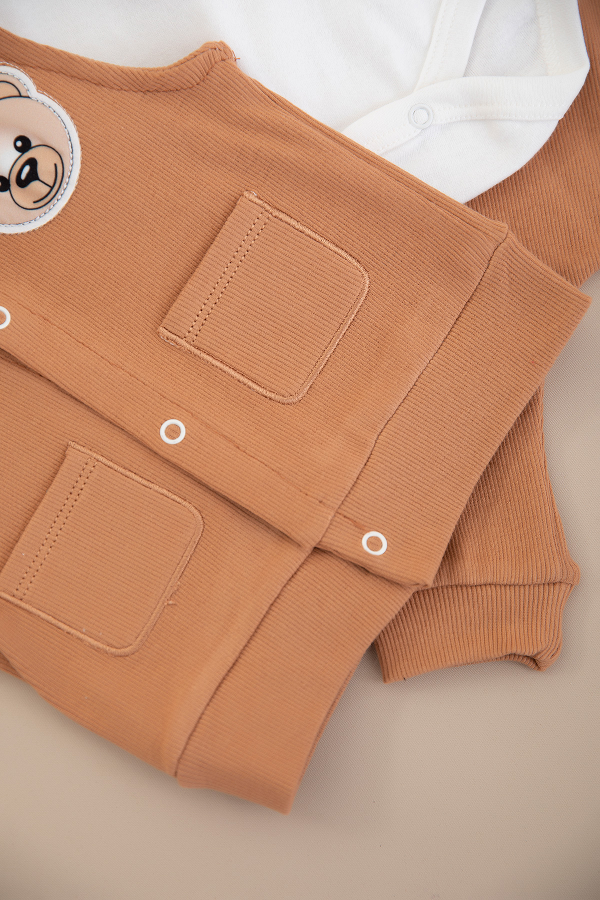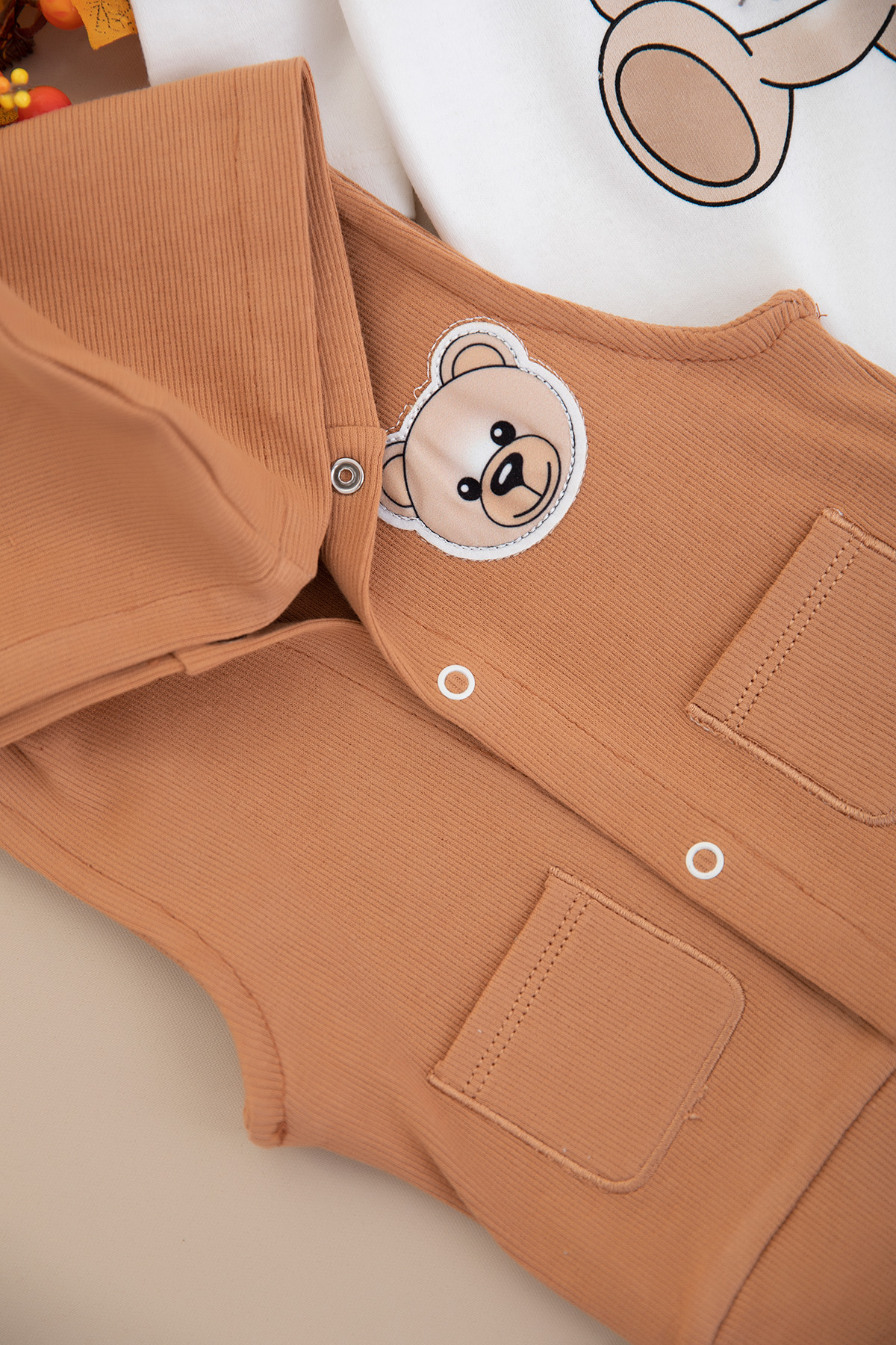 Erkek Bebek Ayı Baskılı Yelekli Takım - 1675 (3-9 Ay)