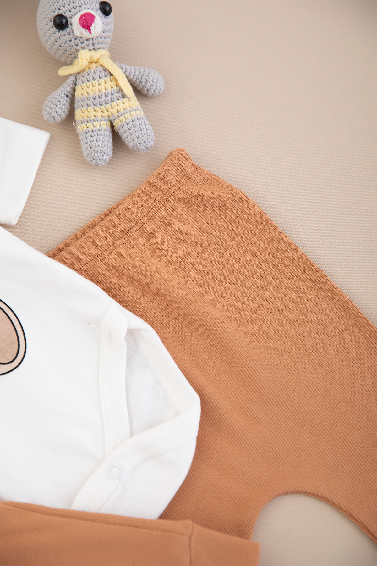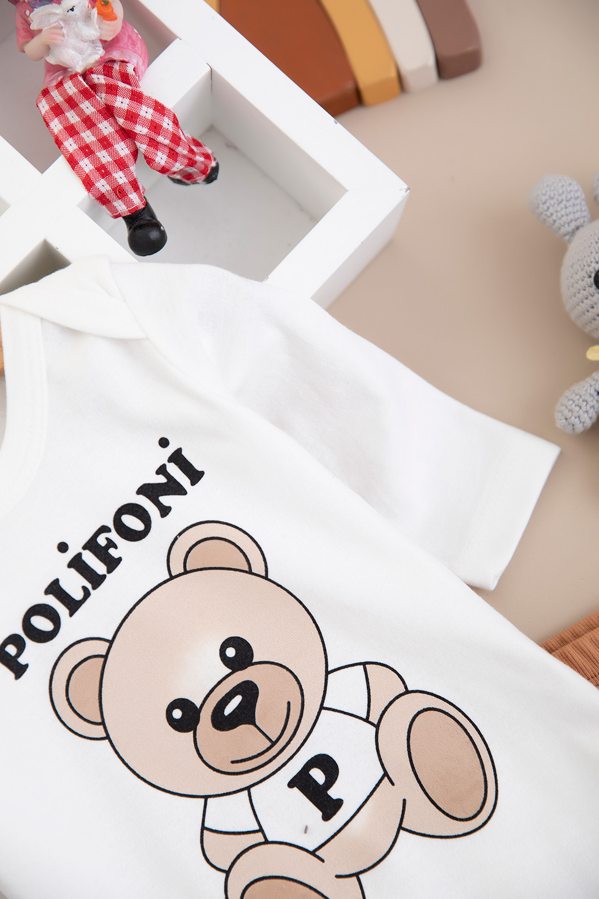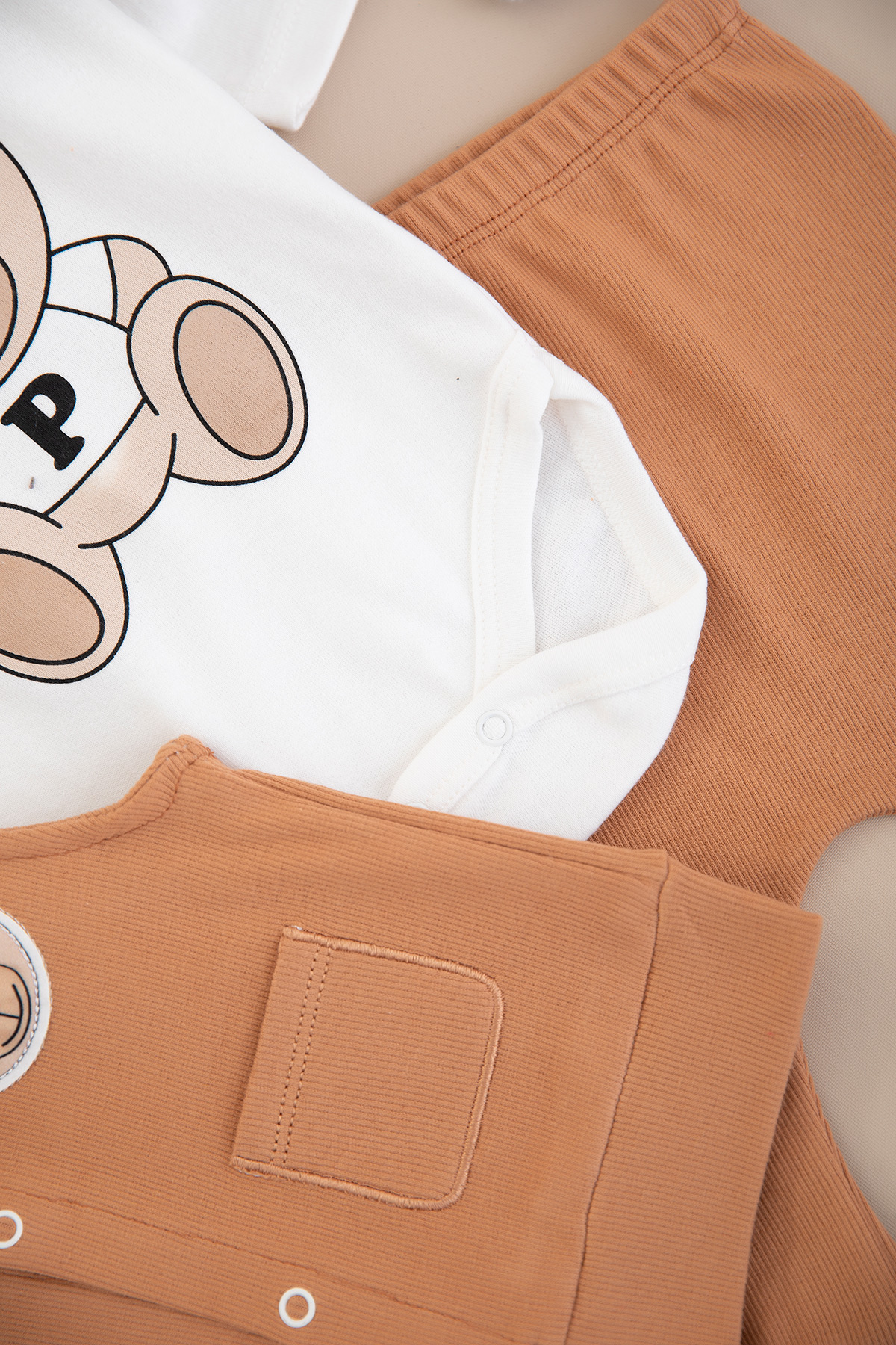 Erkek Bebek Ayı Baskılı Yelekli Takım - 1675 (3-9 Ay)