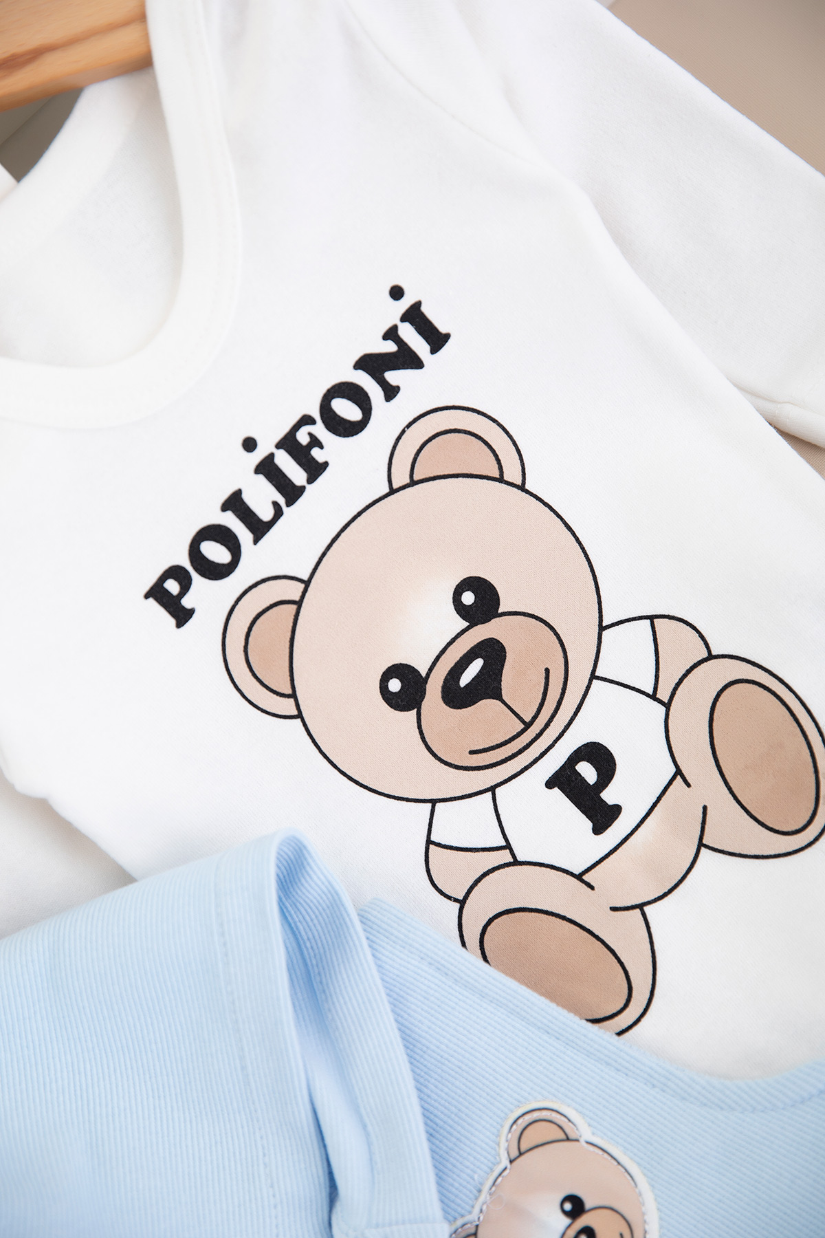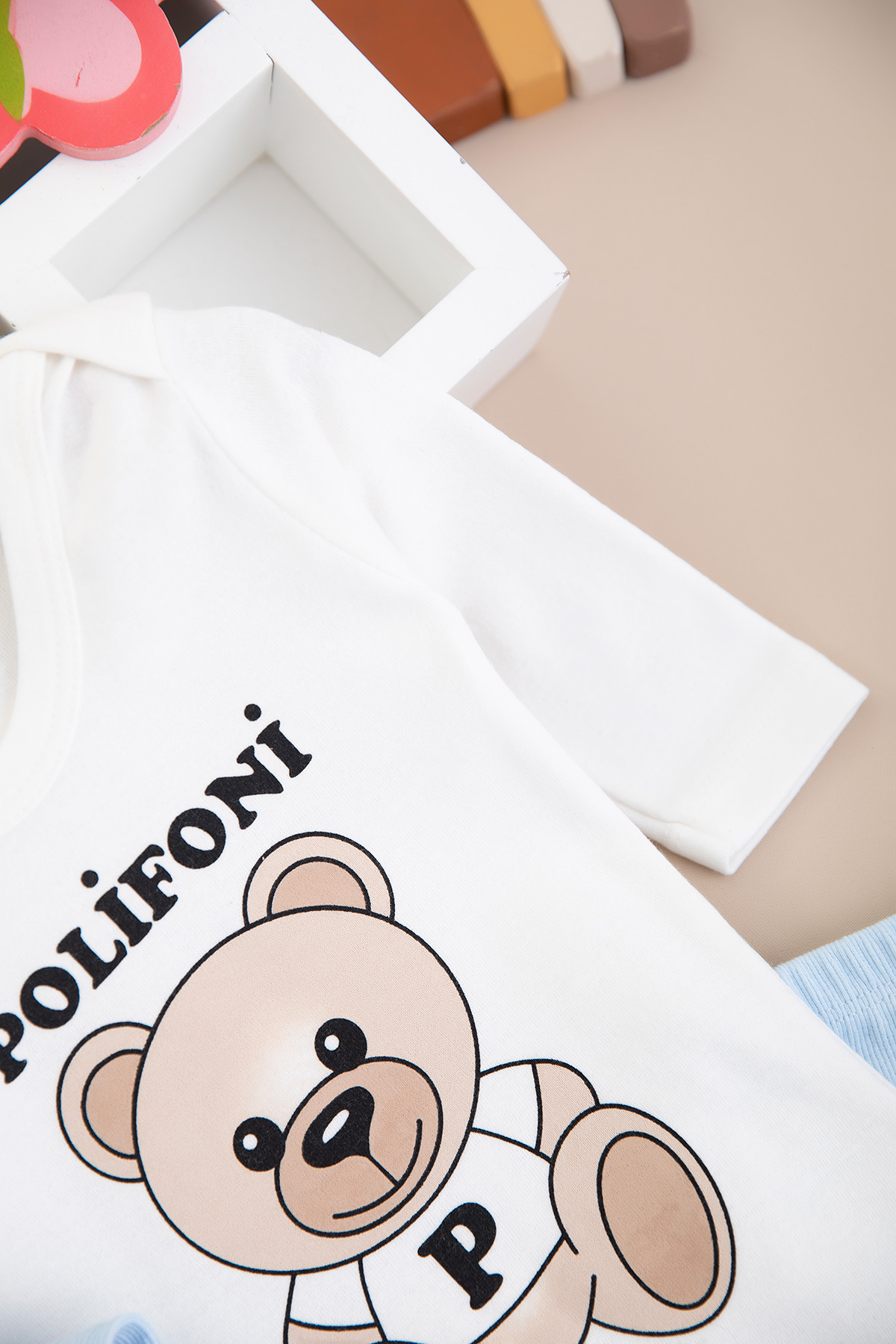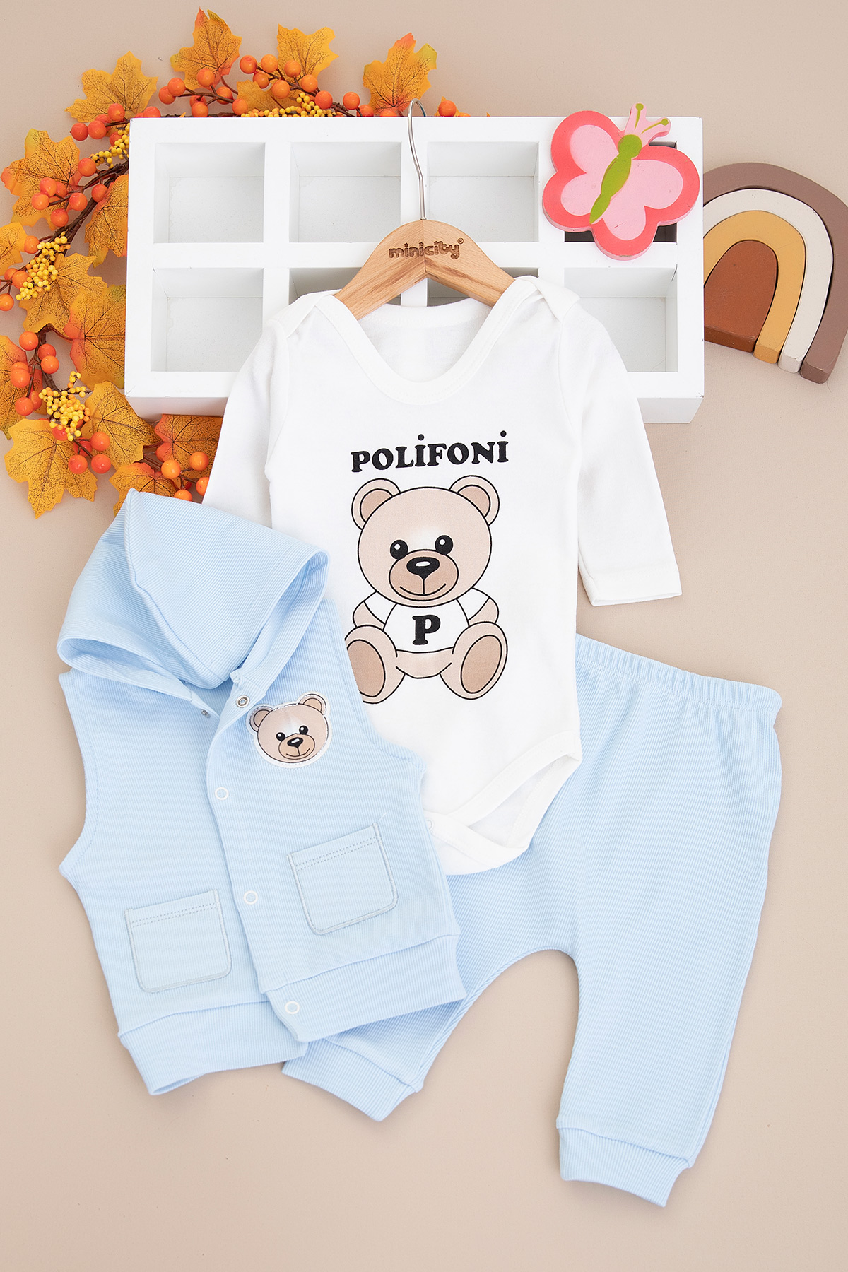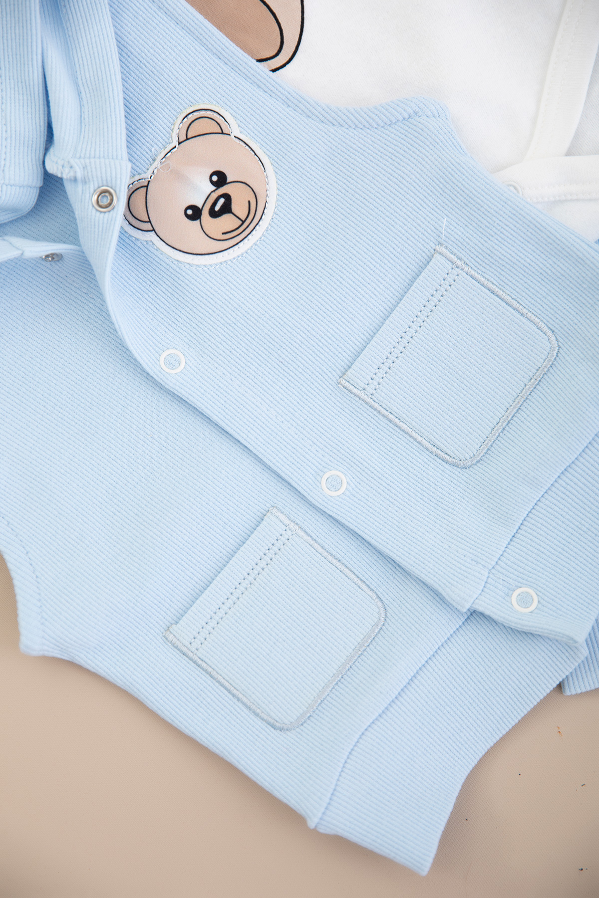 Erkek Bebek Ayı Baskılı Yelekli Takım - 1675 (3-9 Ay)