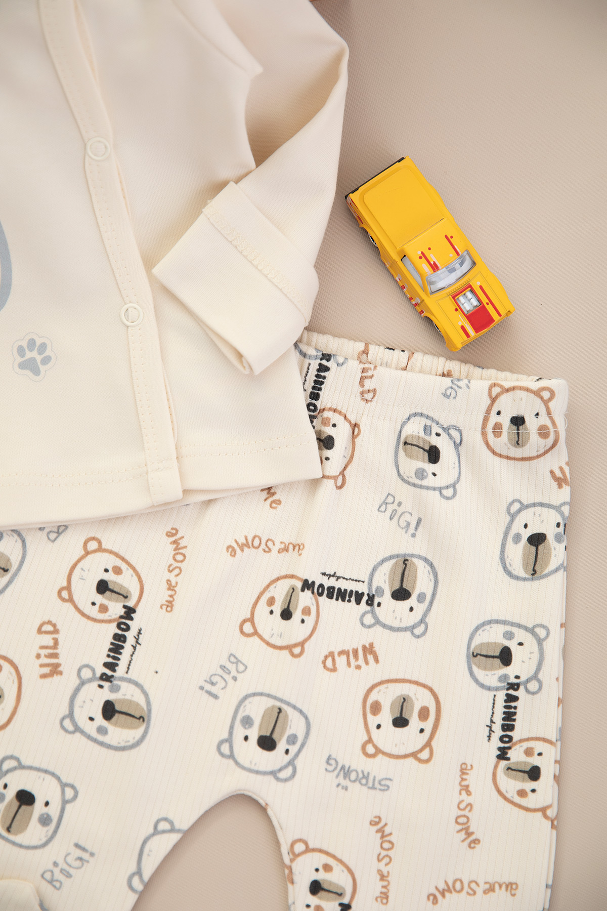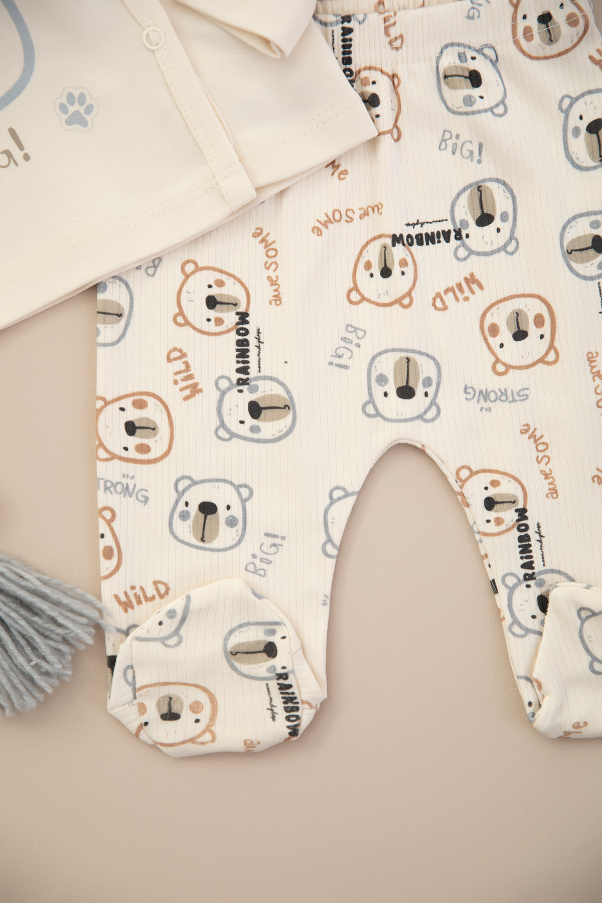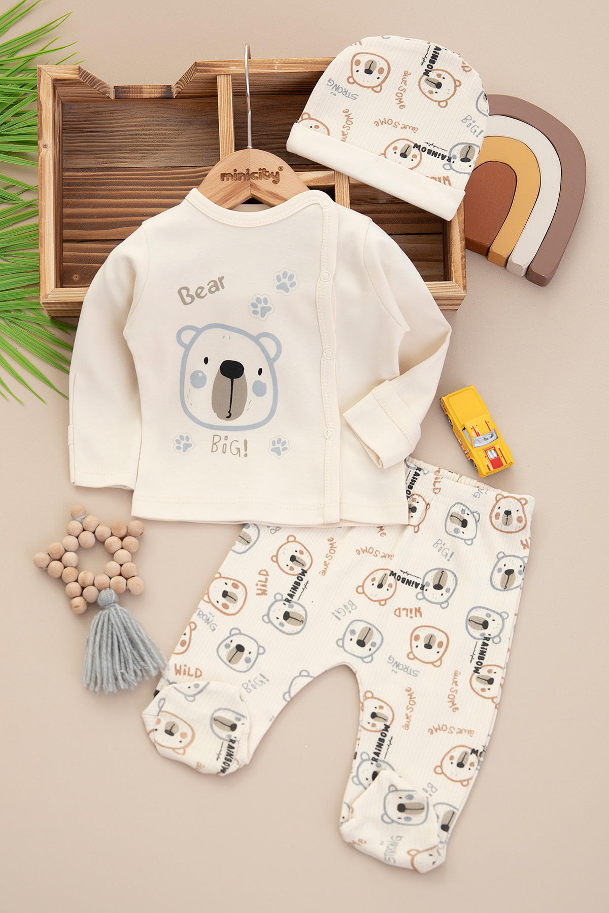 Erkek Bebek Ayı Desenli Üçlü Zıbın Takım - NB061 (0-3 Ay)
