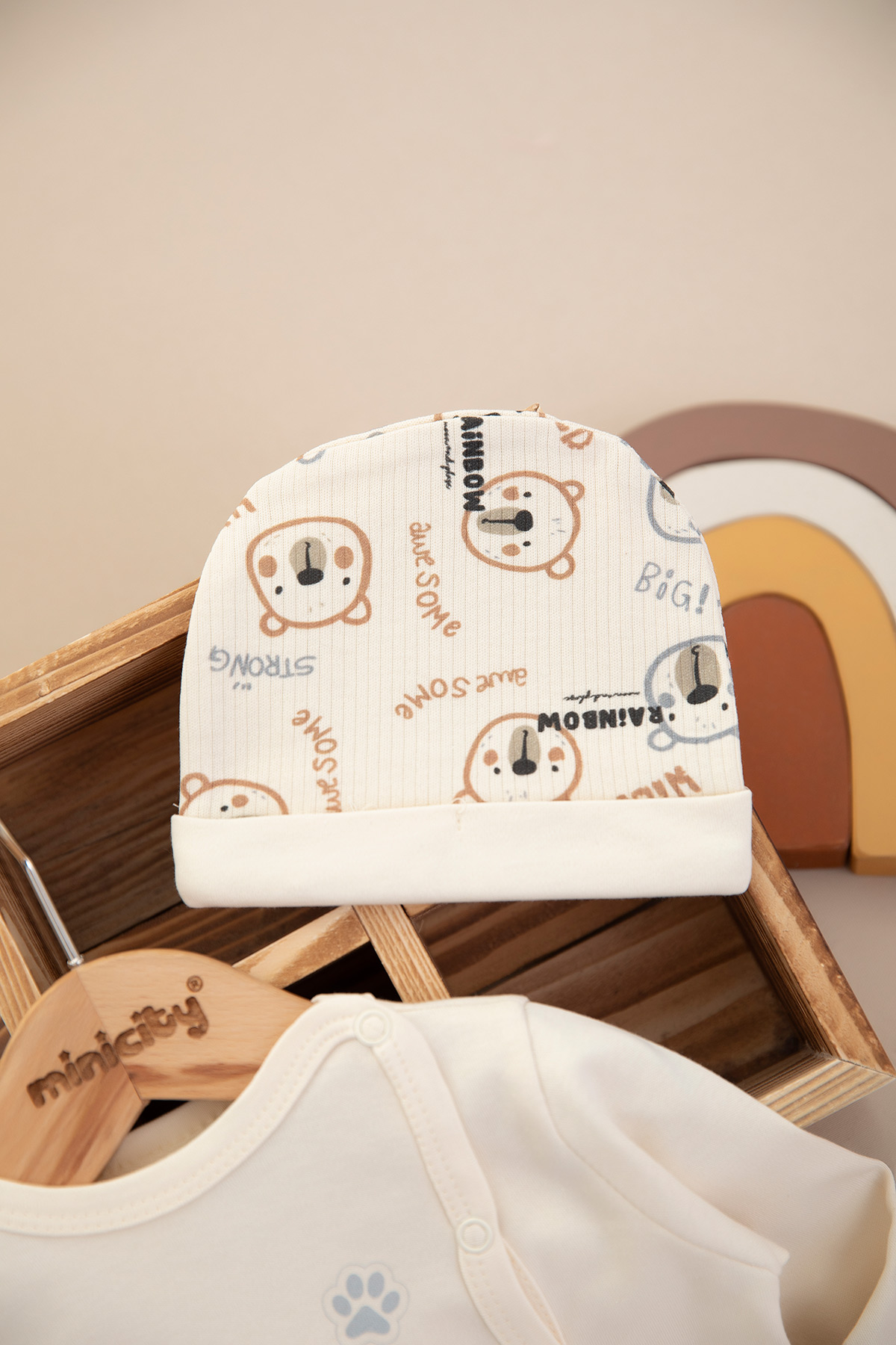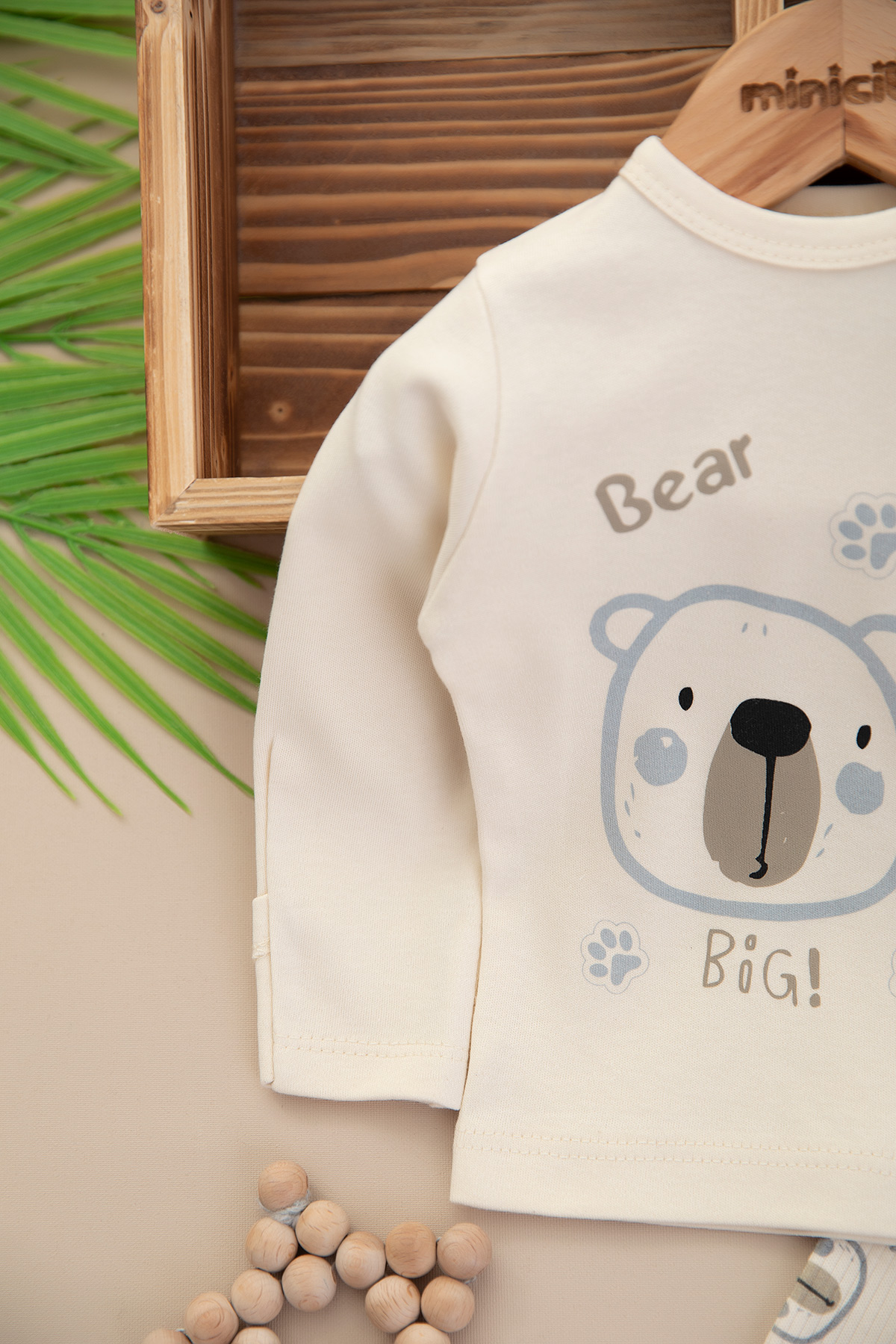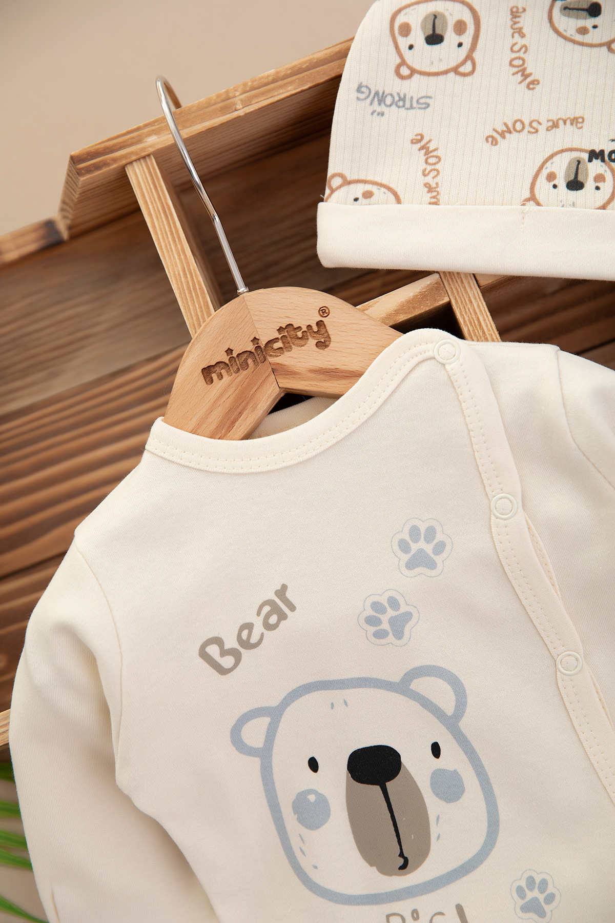 Erkek Bebek Ayı Desenli Üçlü Zıbın Takım - NB061 (0-3 Ay)