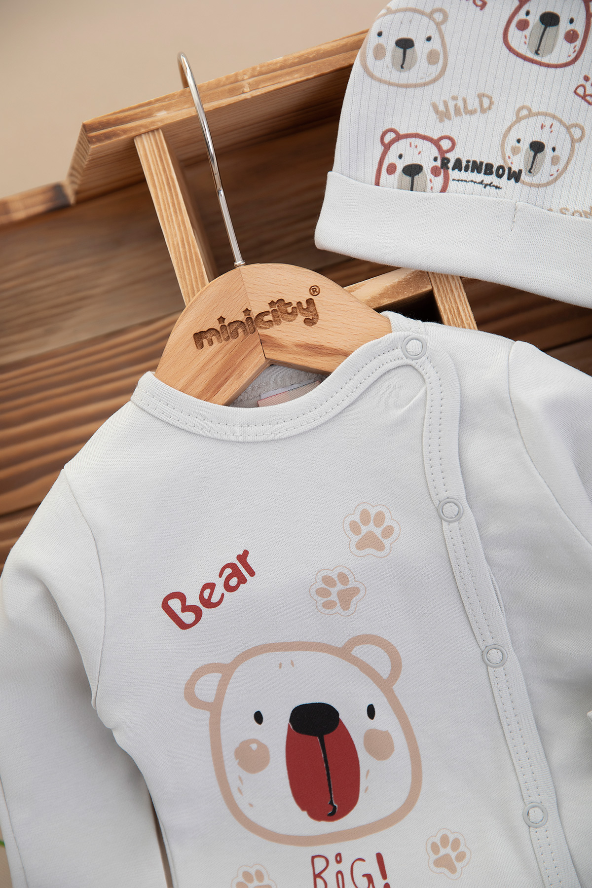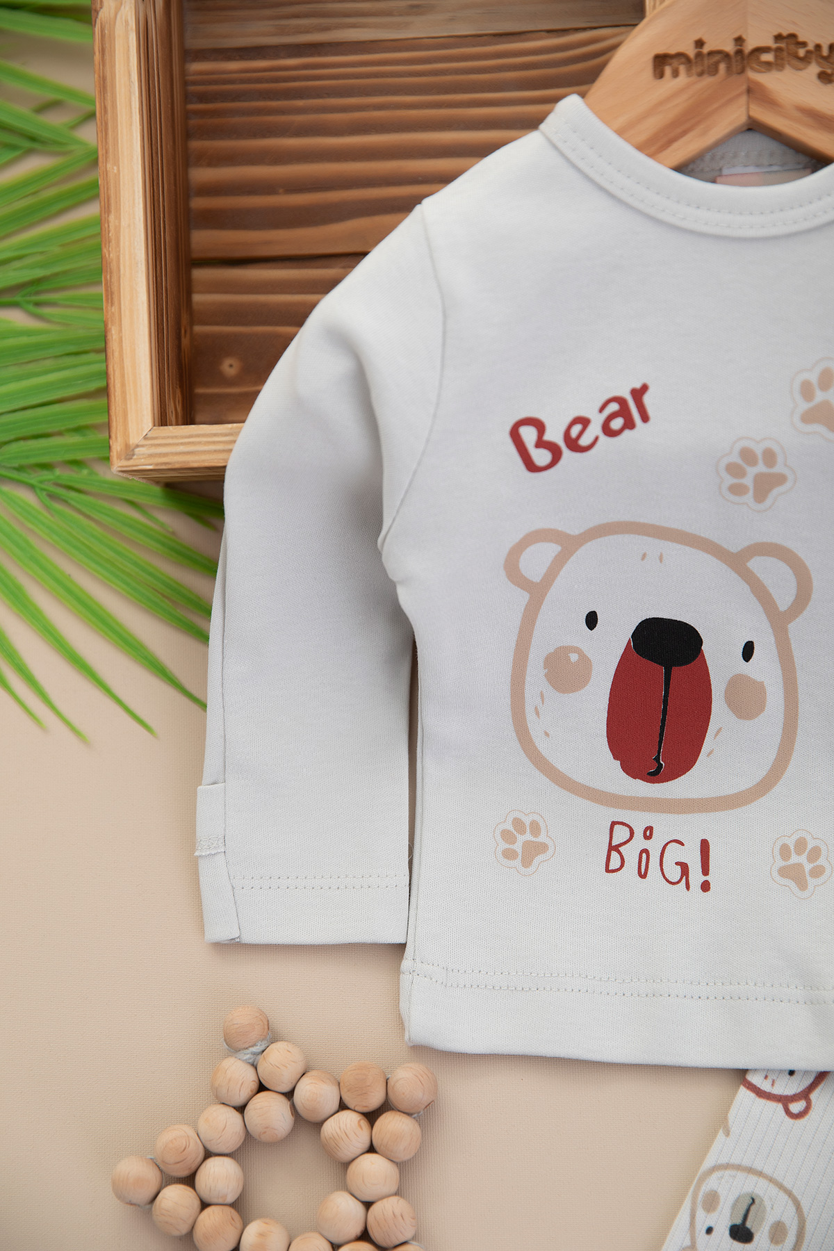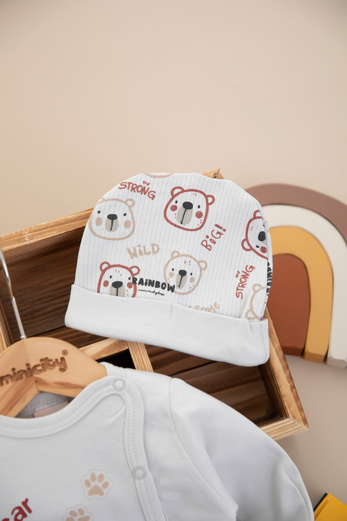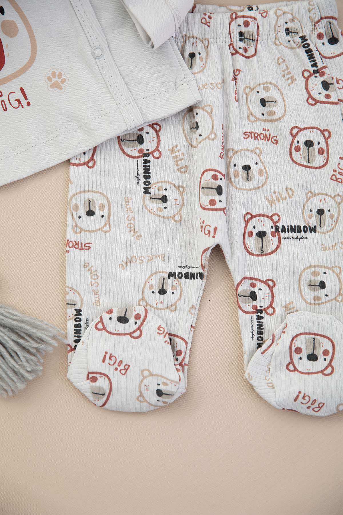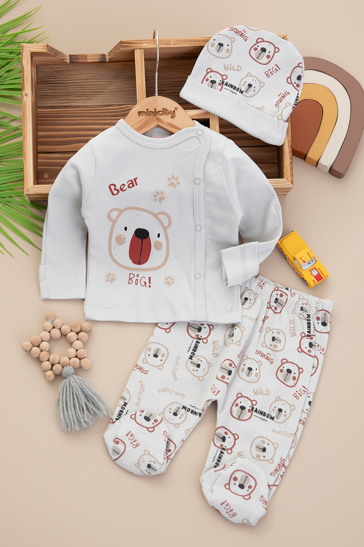 Erkek Bebek Ayı Desenli Üçlü Zıbın Takım - NB061 (0-3 Ay)