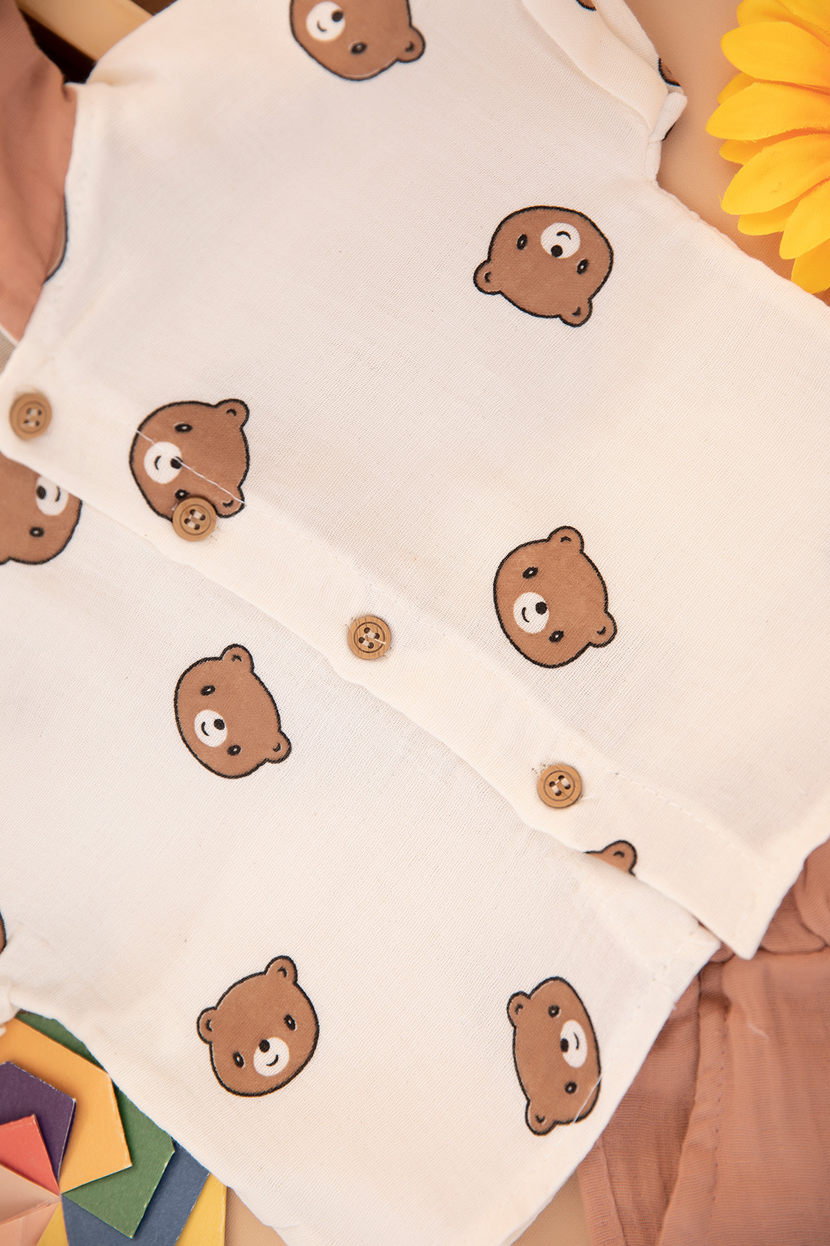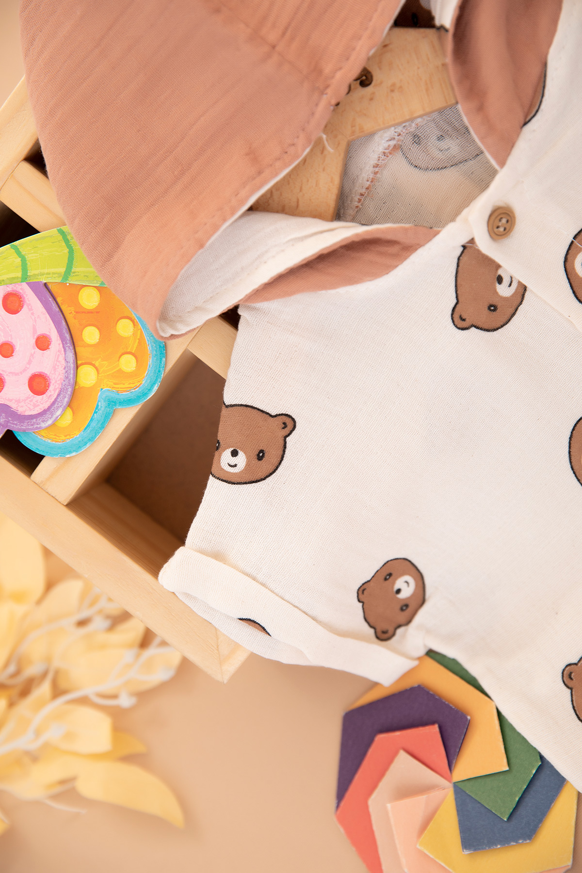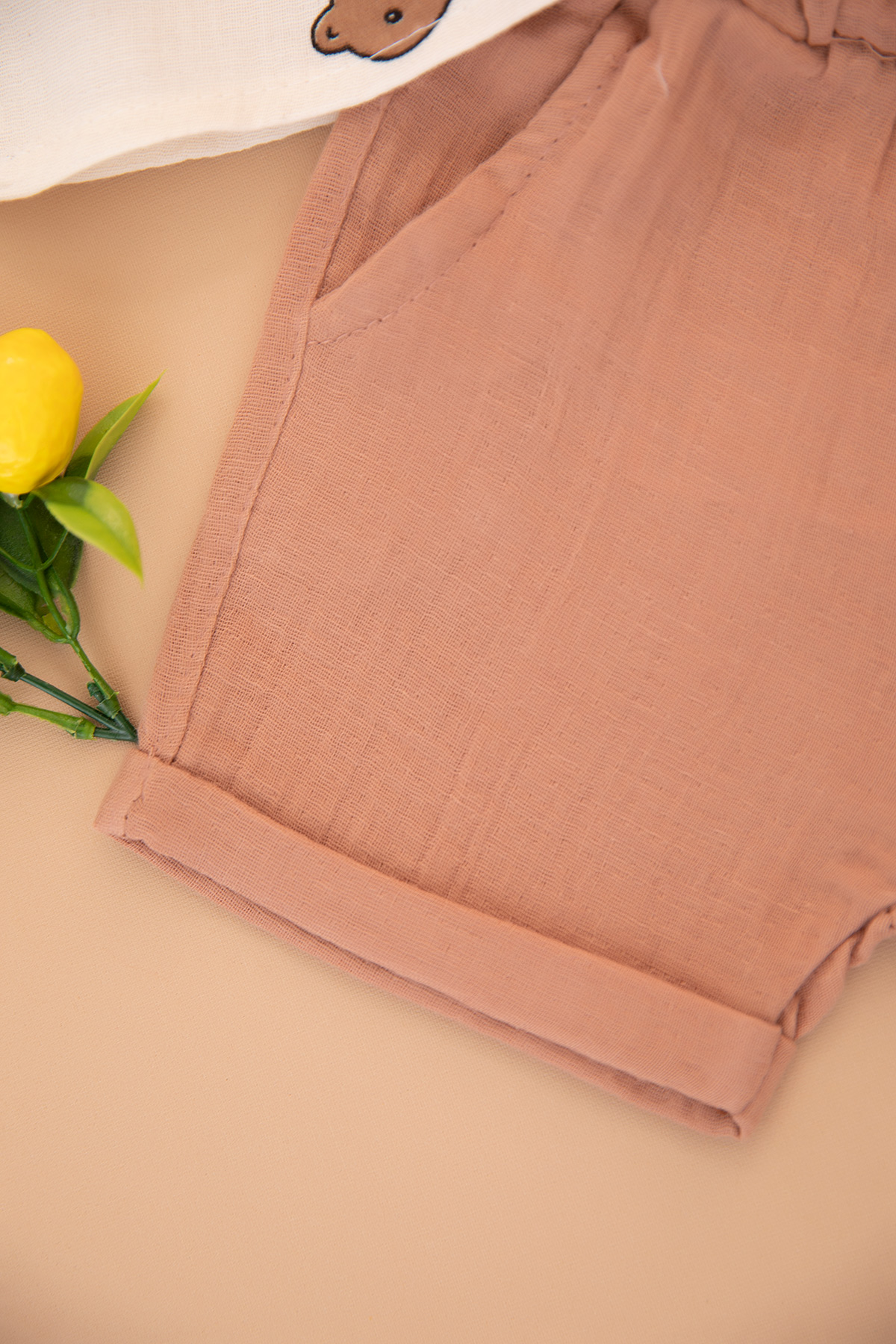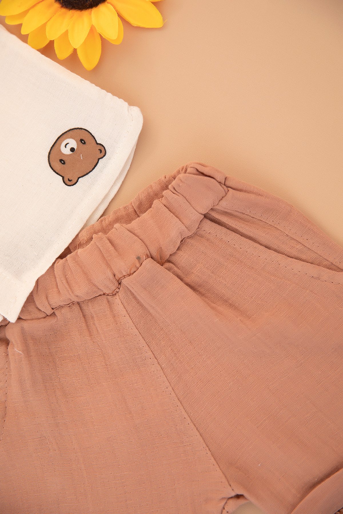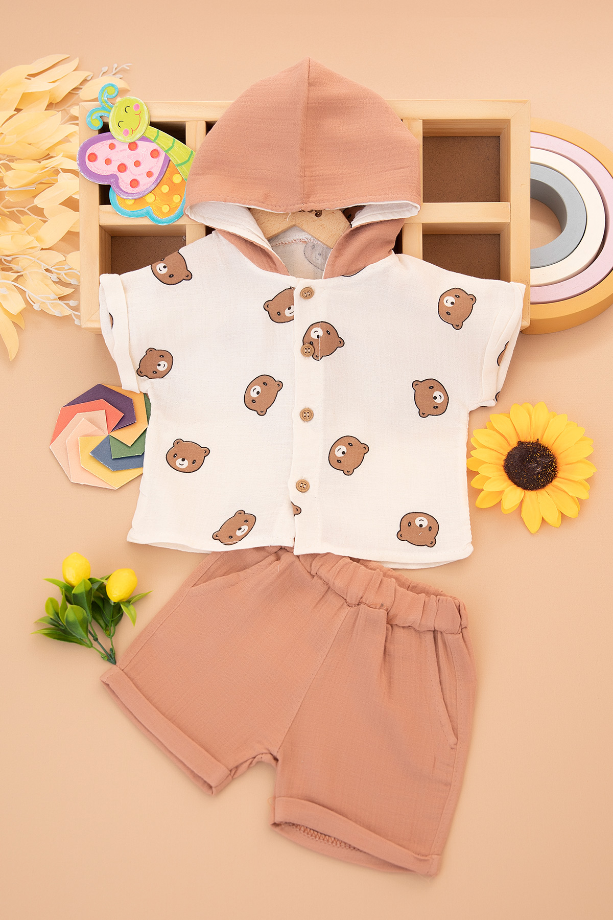 Erkek Bebek Ayı Kafa Baskılı Şortlu Takım - 2512 (9-18 Ay)