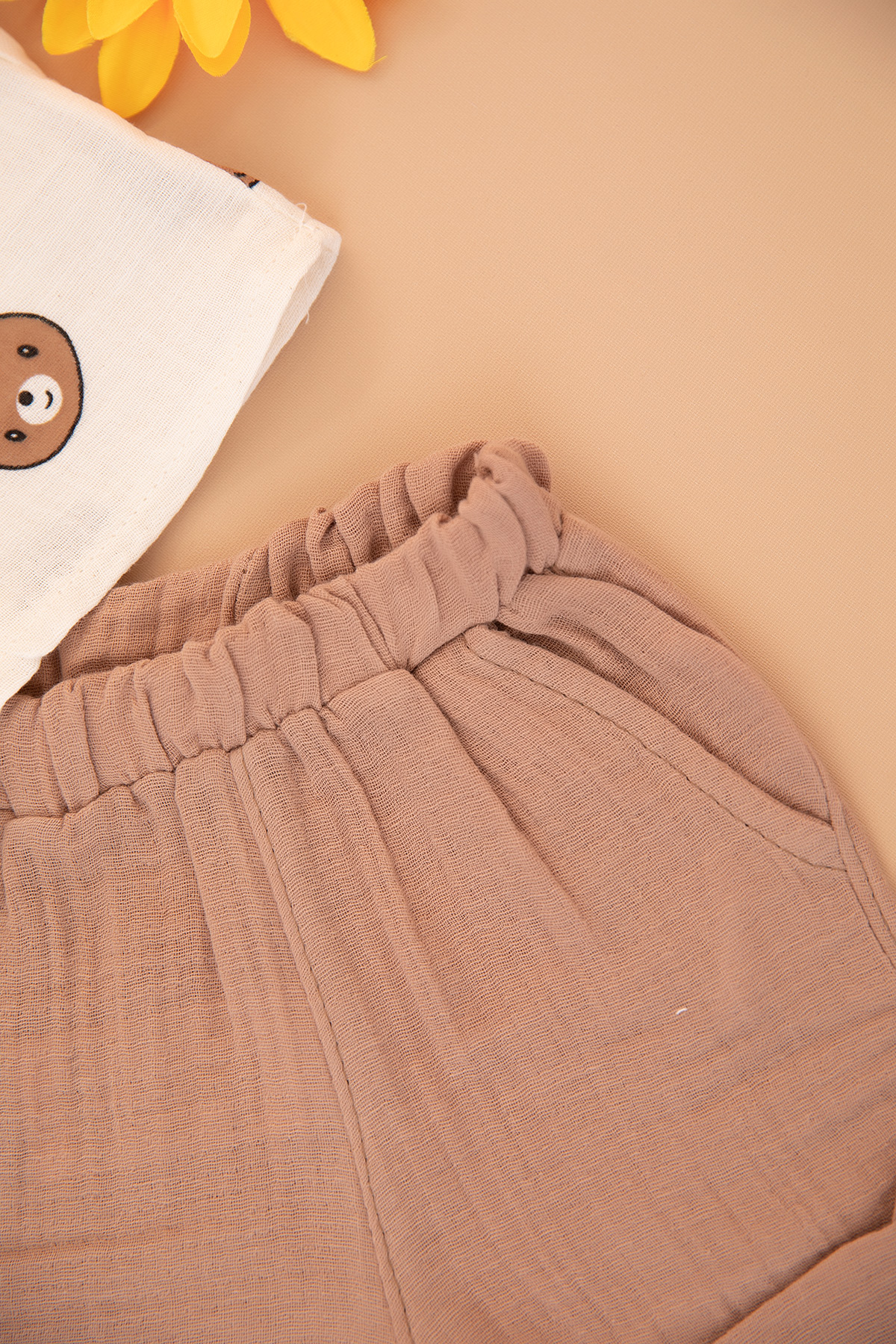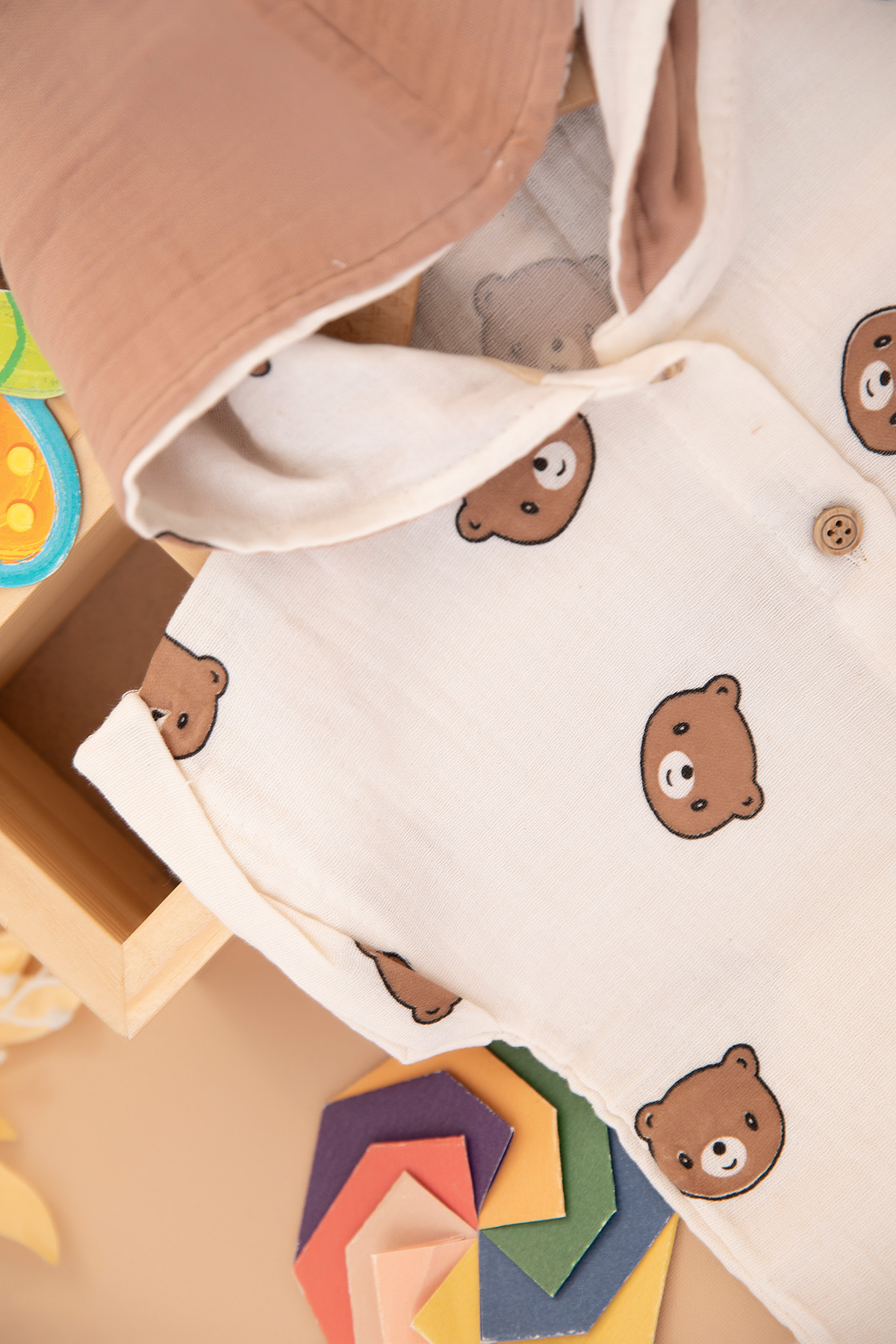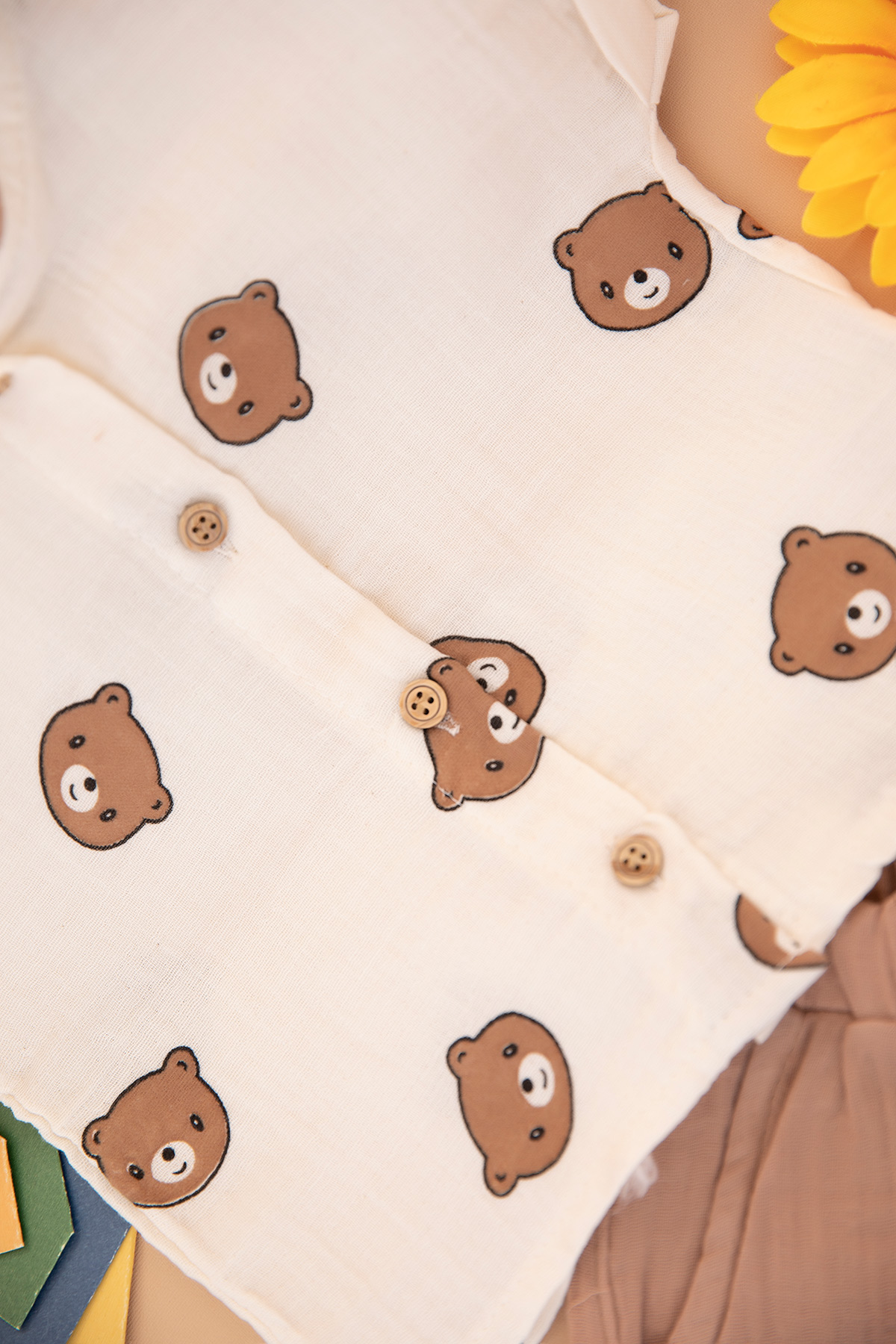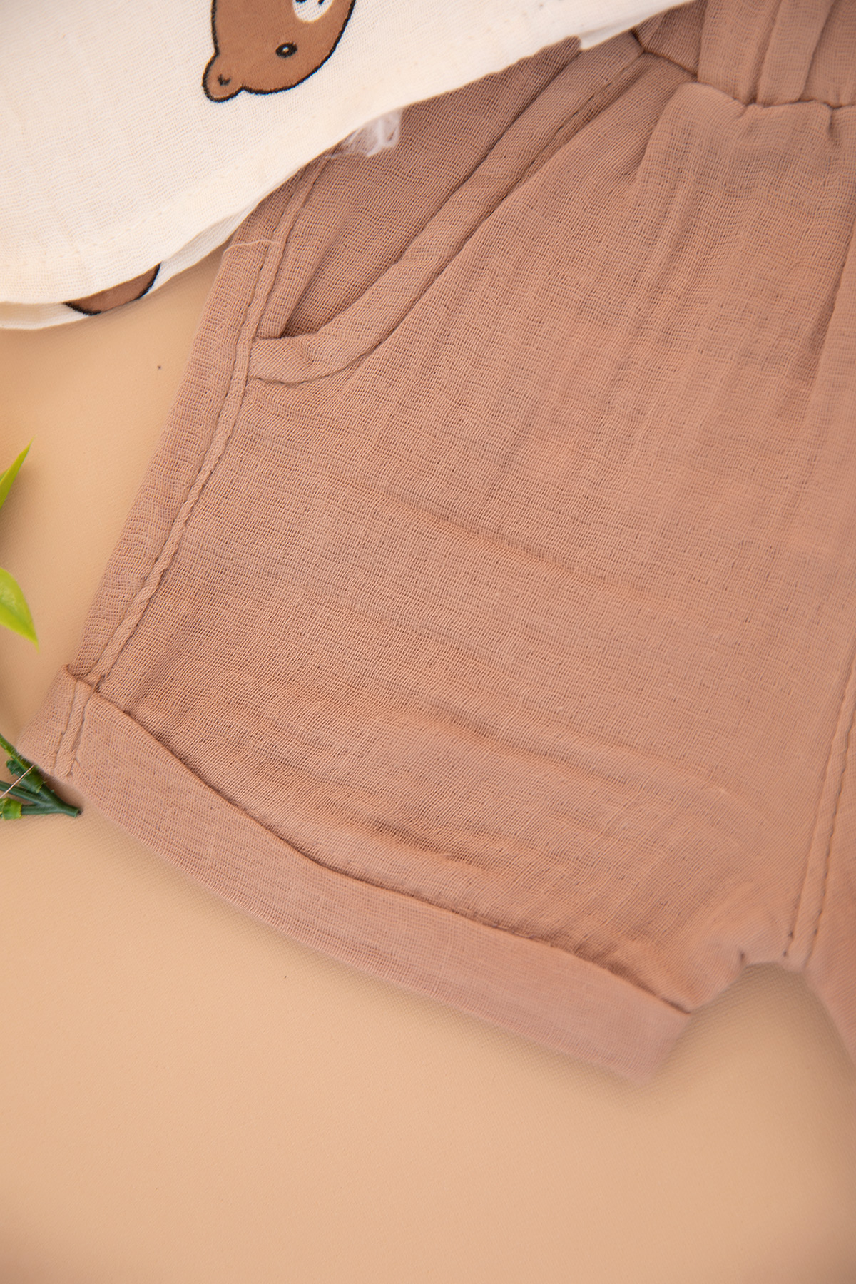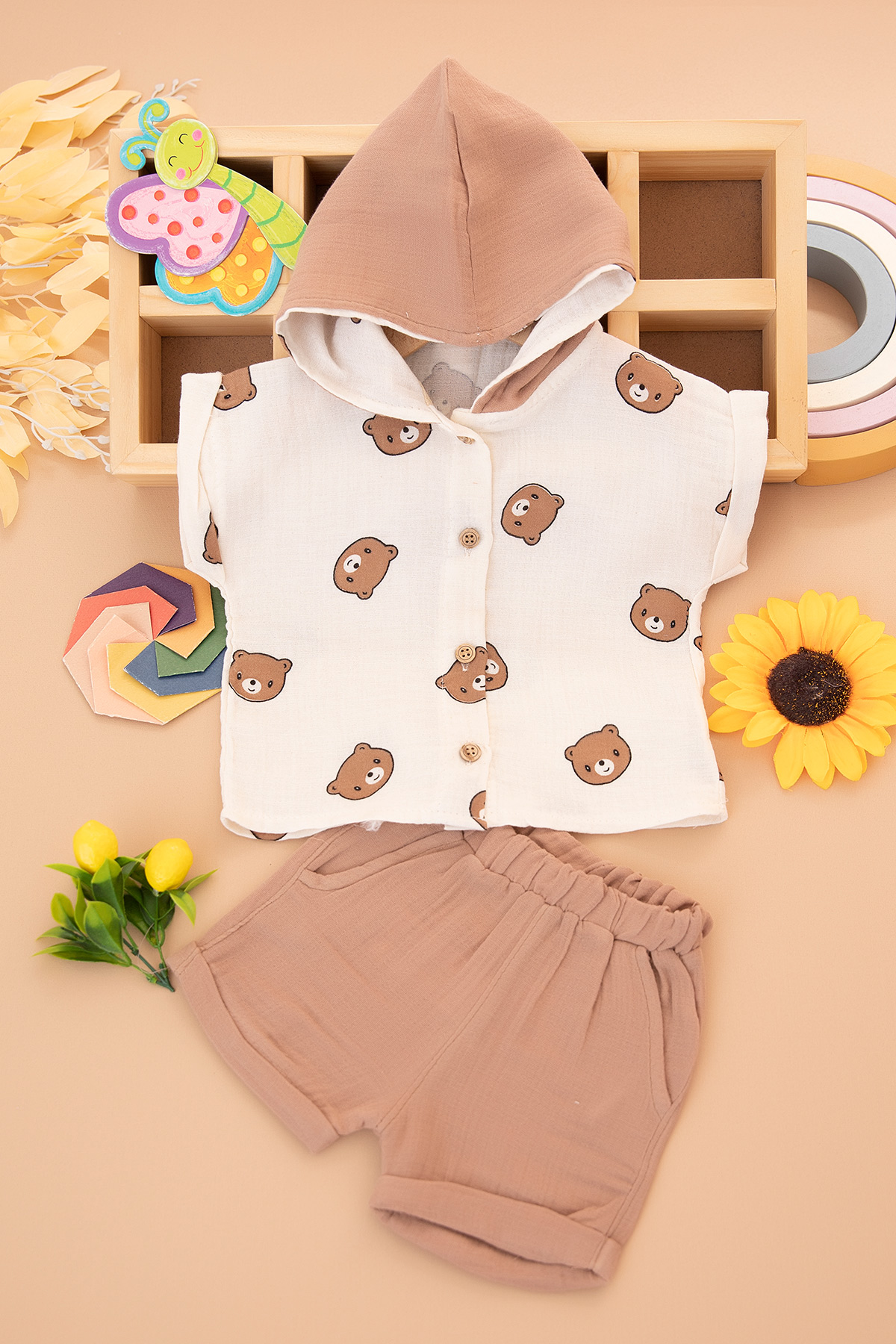 Erkek Bebek Ayı Kafa Baskılı Şortlu Takım - 2512 (9-18 Ay)