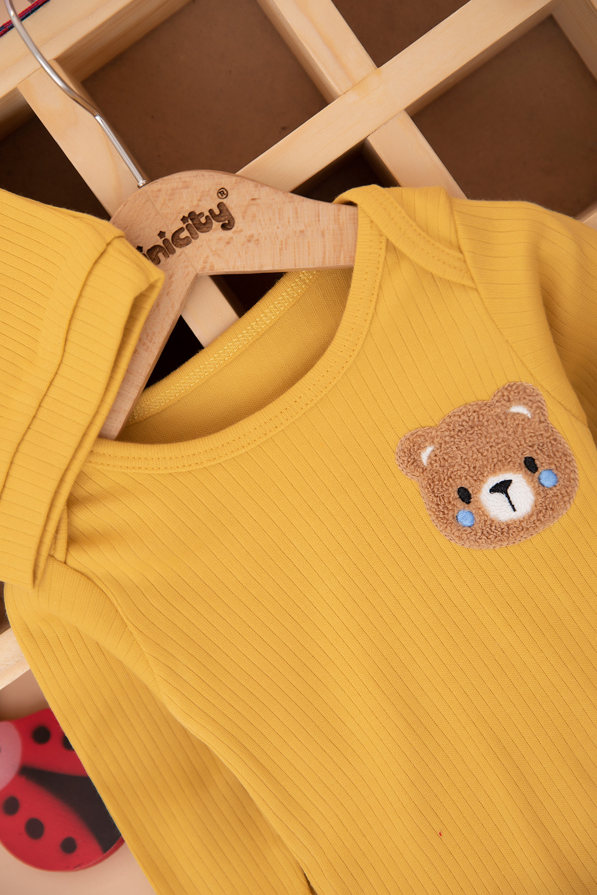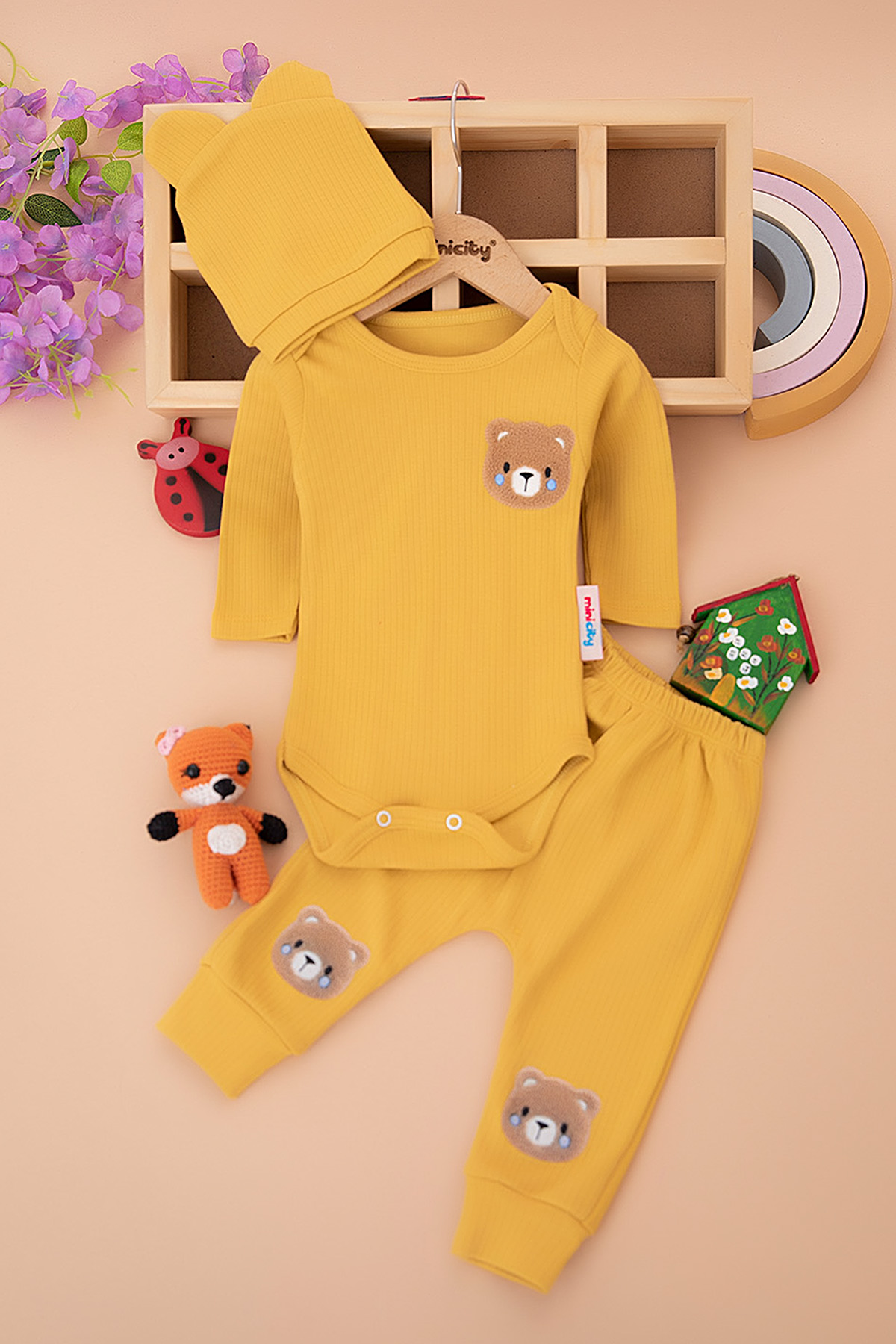 Erkek Bebek Ayı Kafa Nakışlı Üçlü Takım - 2023 (3-9 Ay)