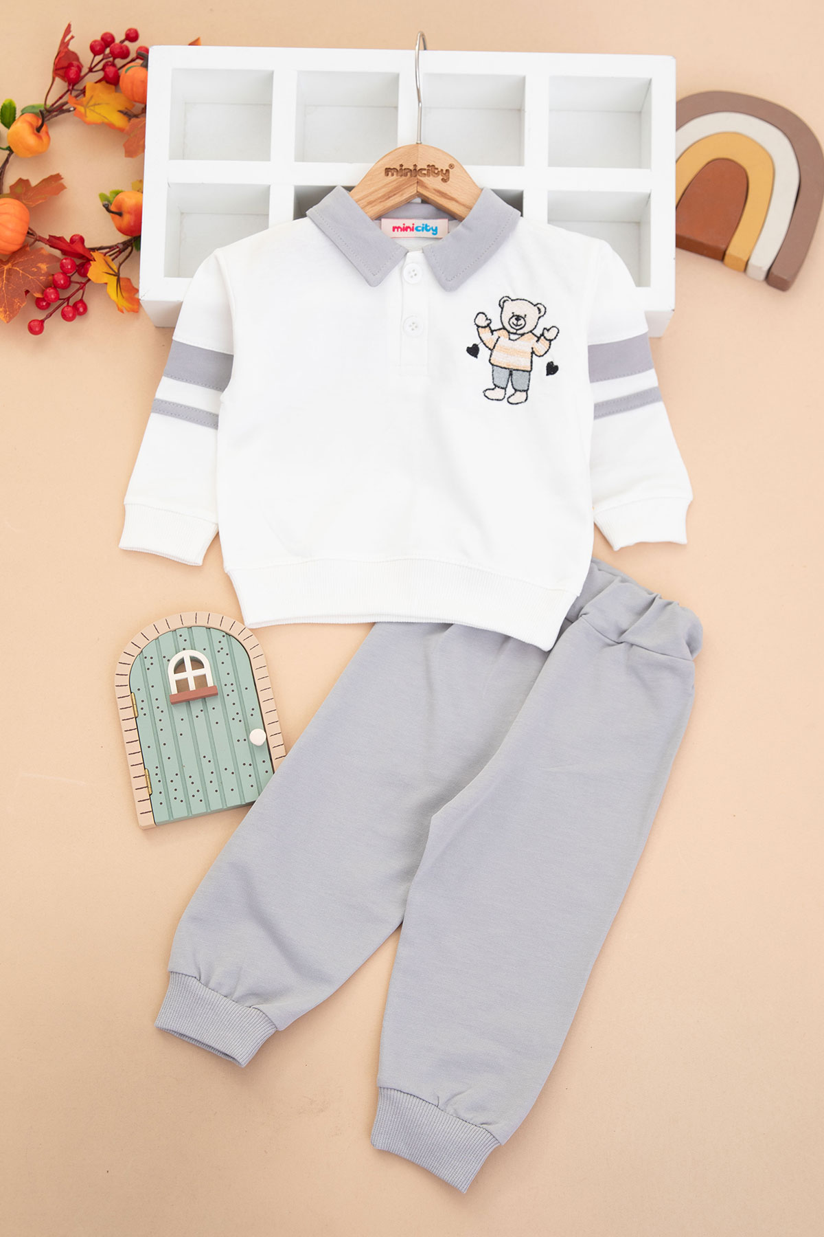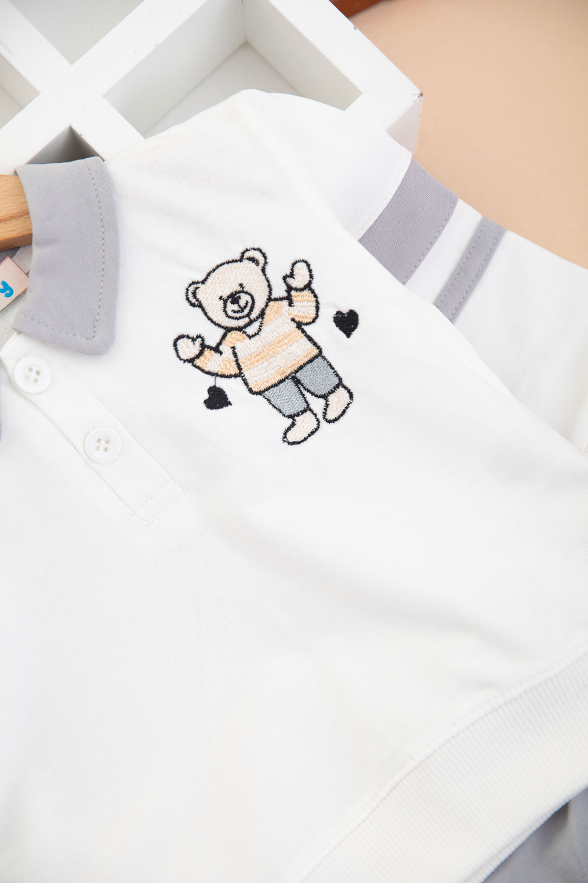 Erkek Bebek Ayı Kalp Nakışlı Takım - 10244 (9-24 Ay)