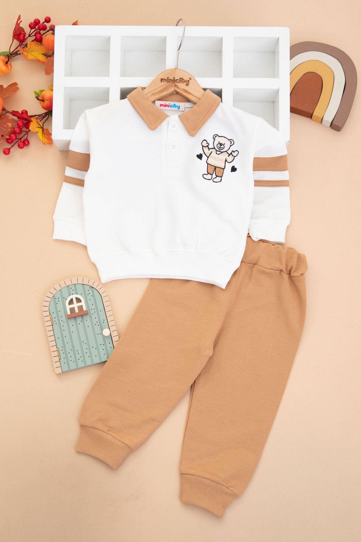 Erkek Bebek Ayı Kalp Nakışlı Takım - 10244 (9-24 Ay)