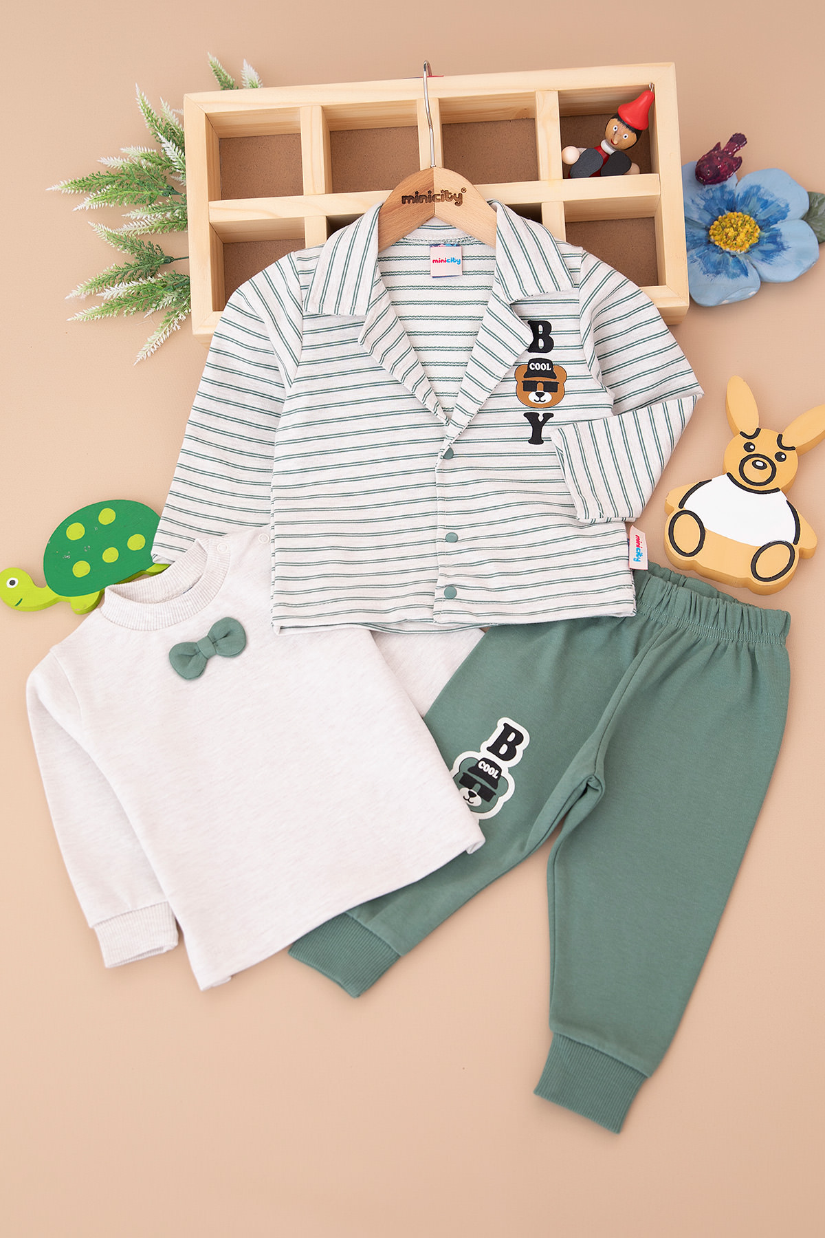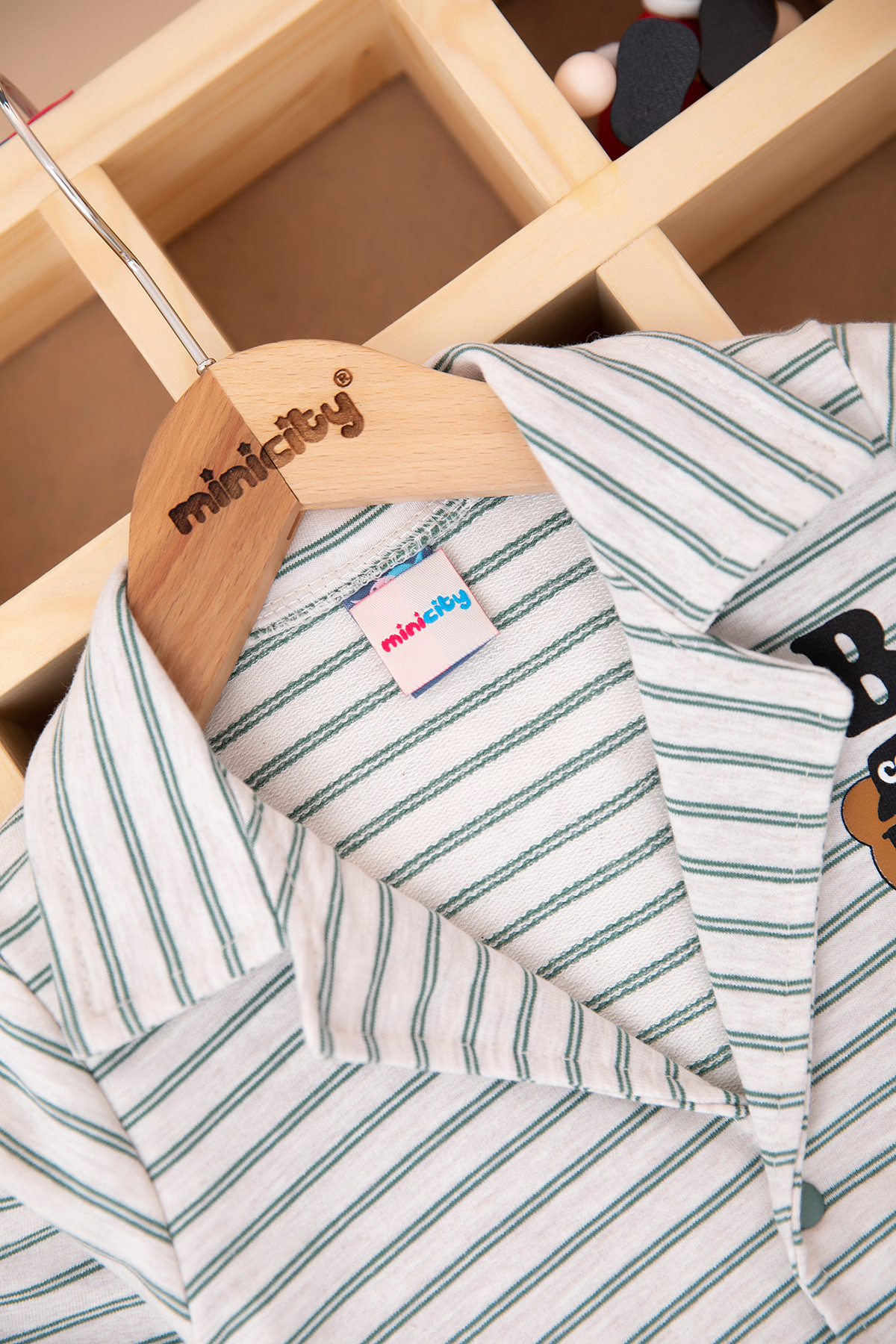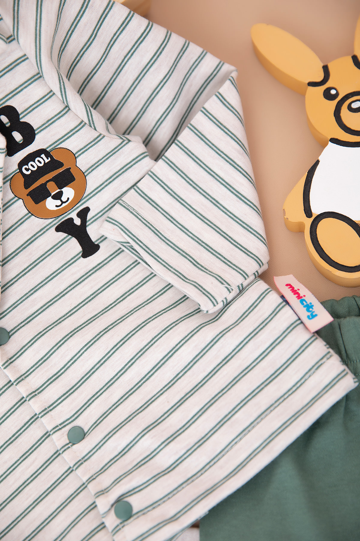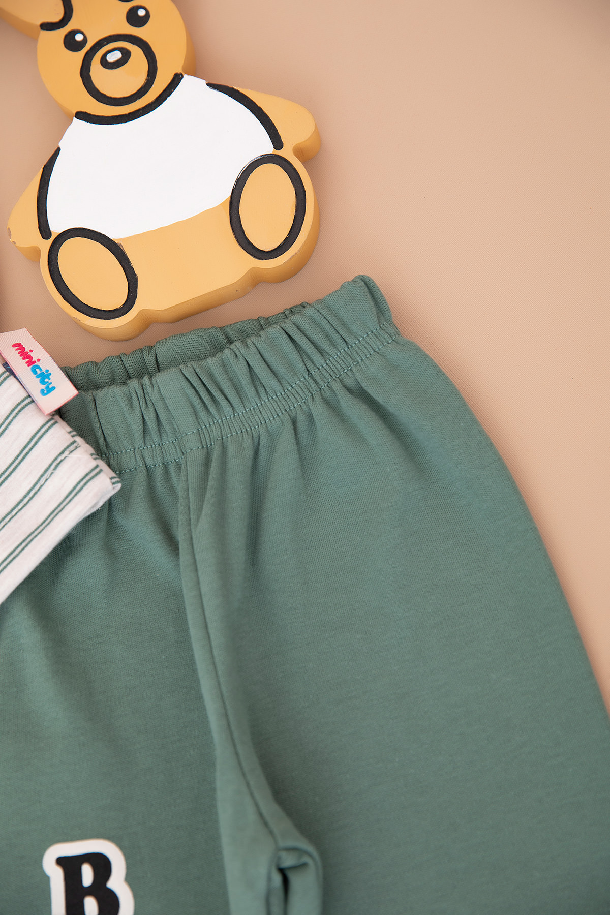 Erkek Bebek Ayı Nakışlı Ringelli Takım - 23476 (9-24 Ay)