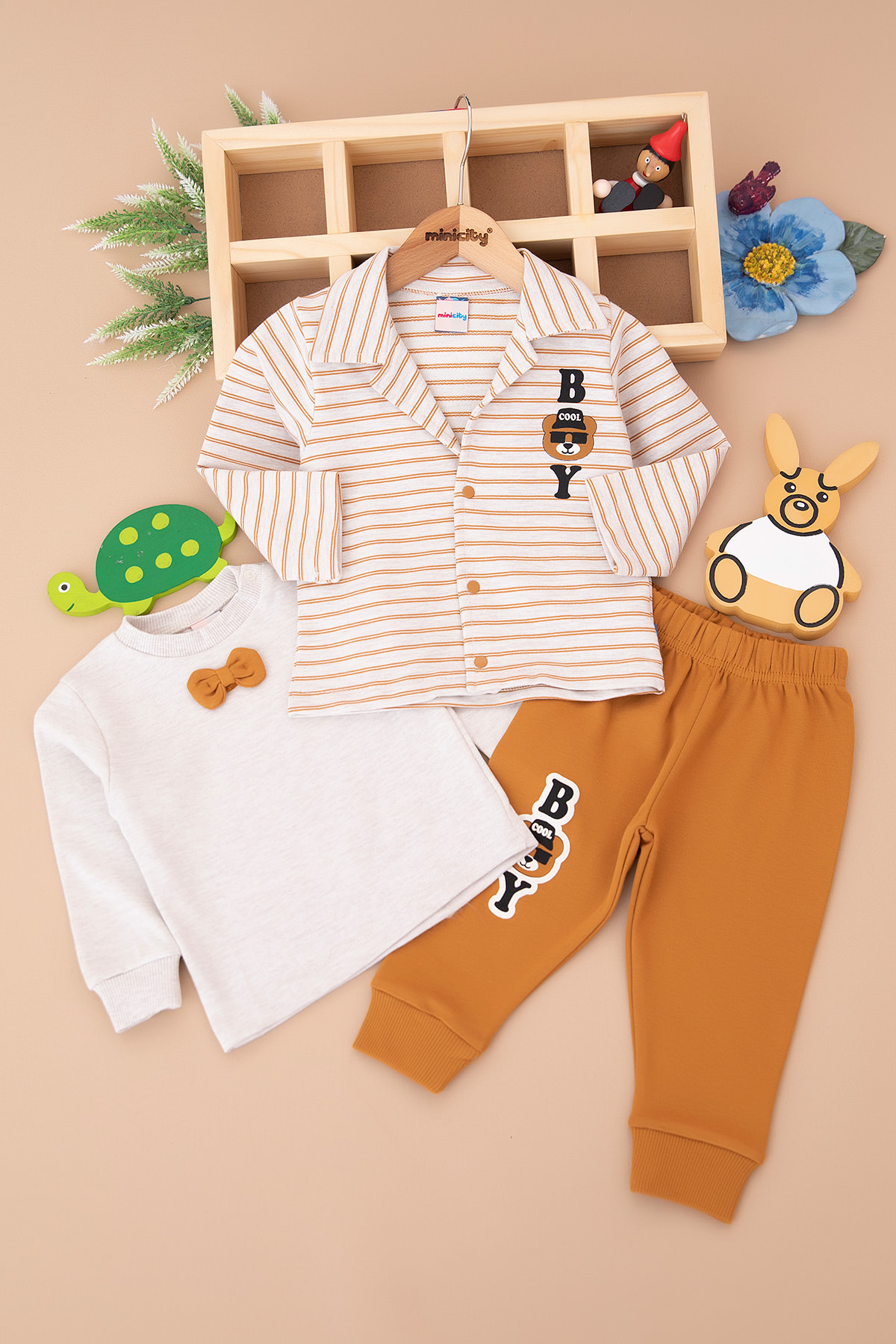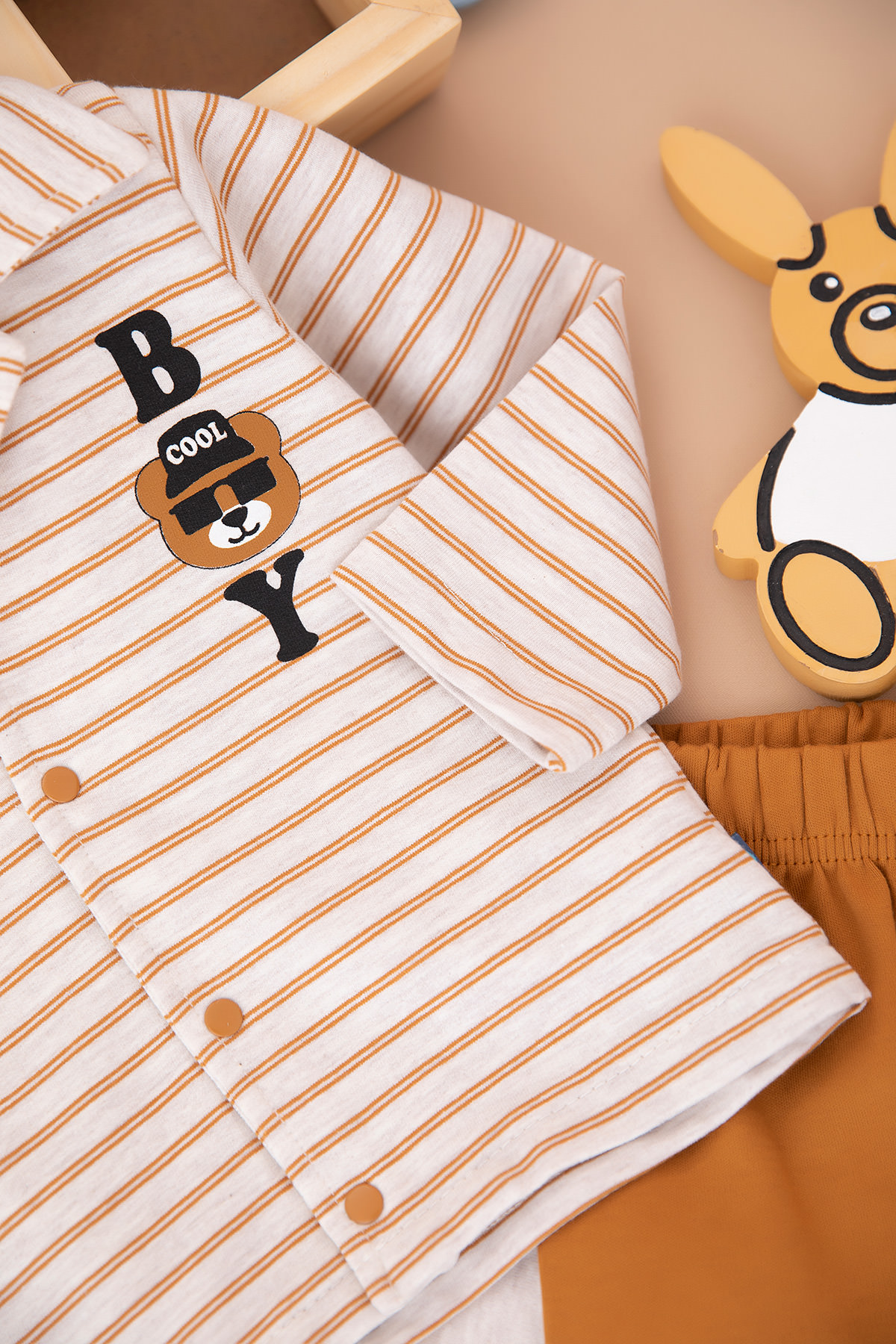 Erkek Bebek Ayı Nakışlı Ringelli Takım - 23476 (9-24 Ay)