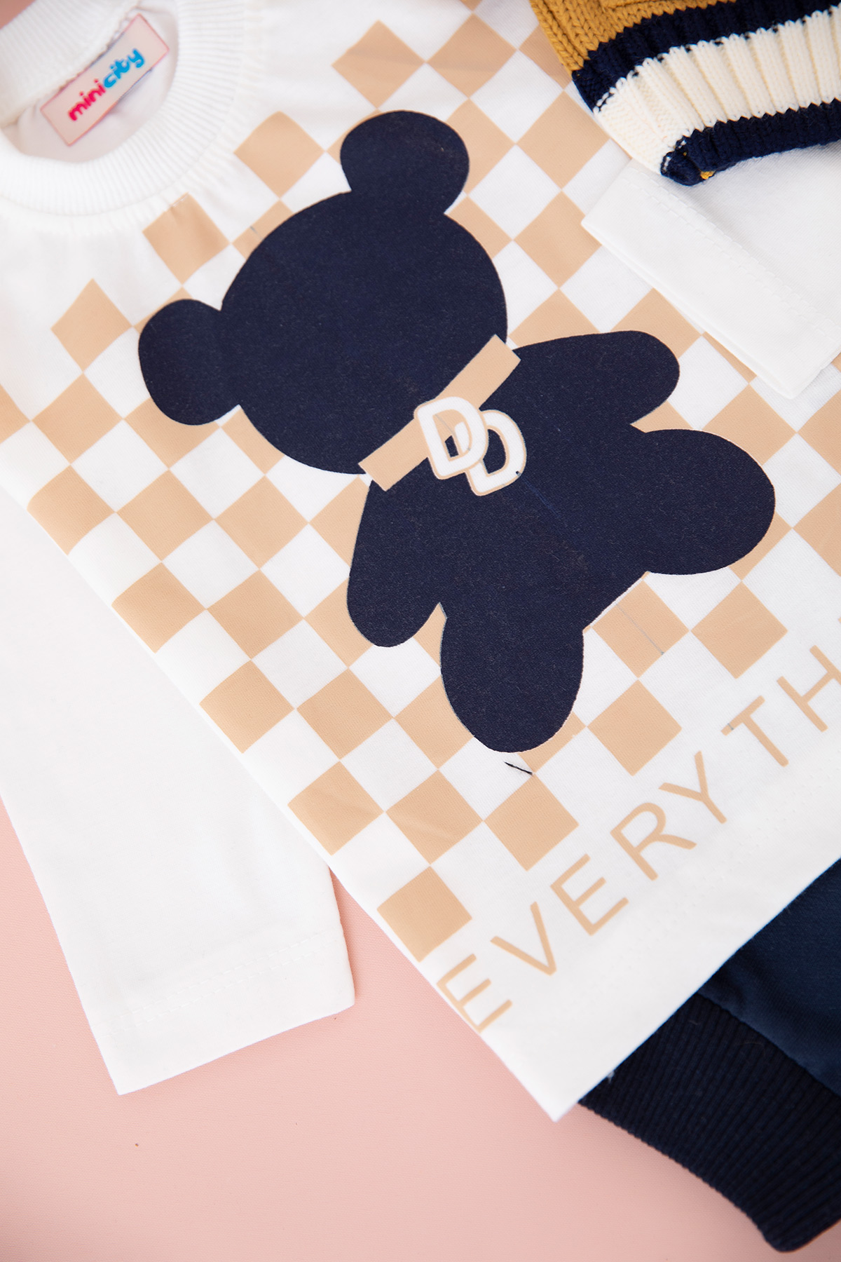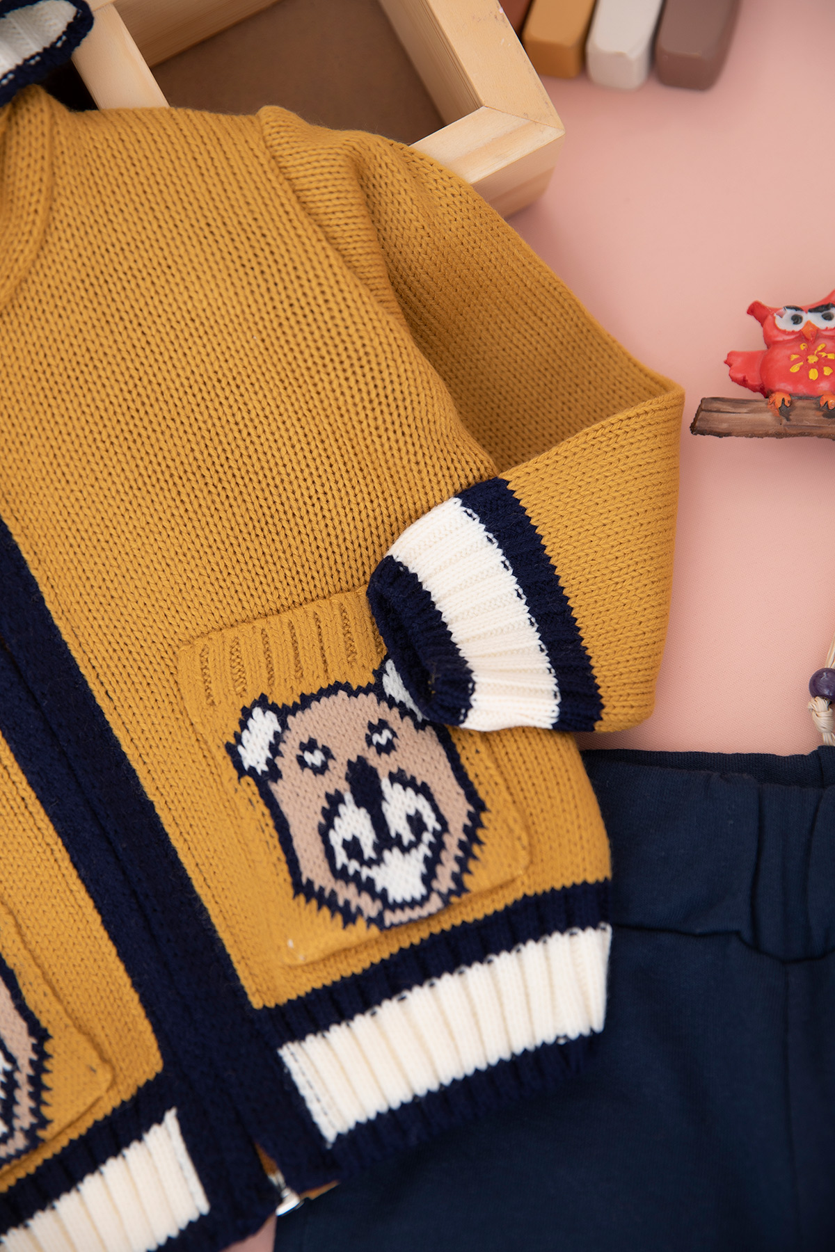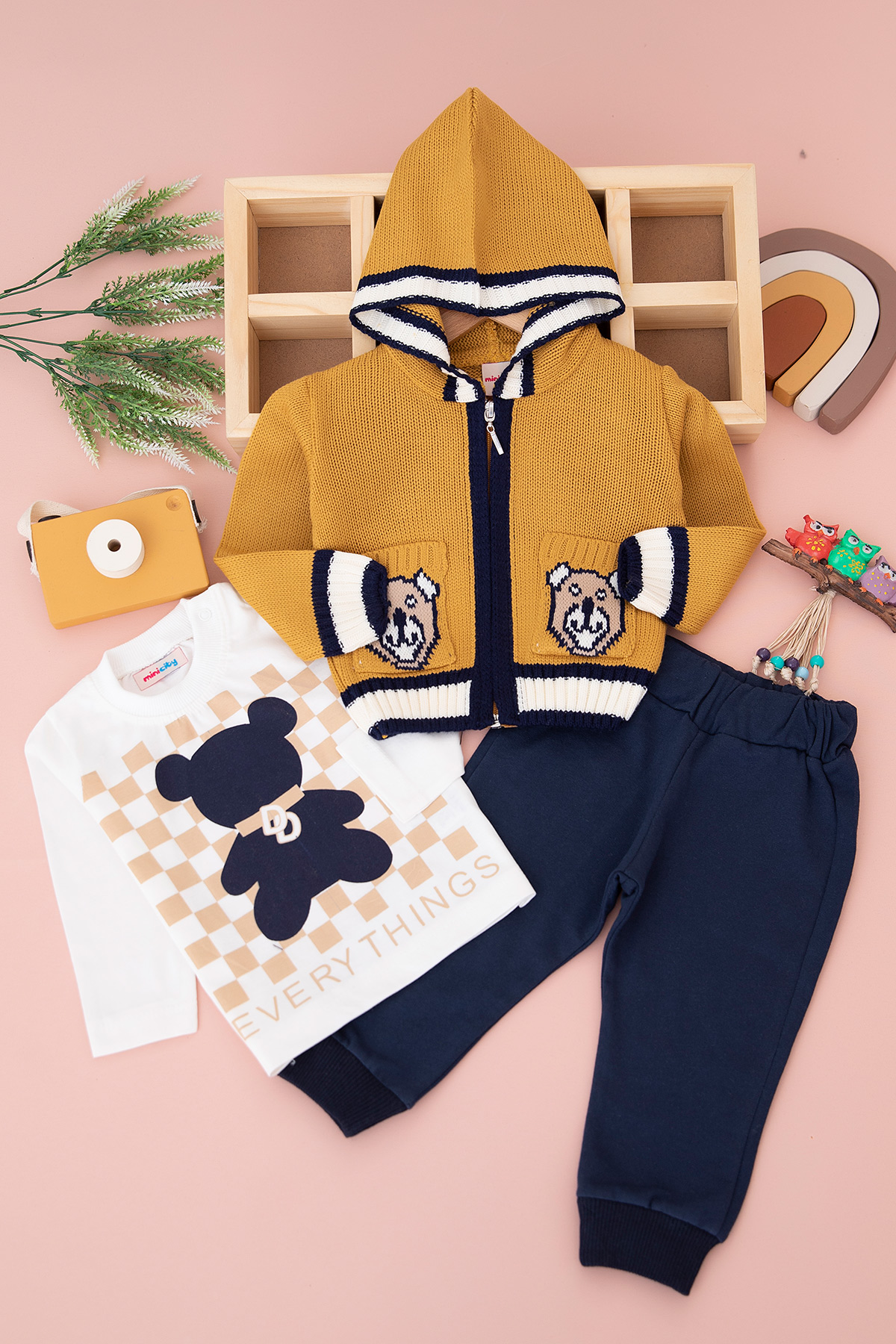 Erkek Bebek Ayı Örmeli 3`Lü Triko Takım - 13777 (6-24 Ay)