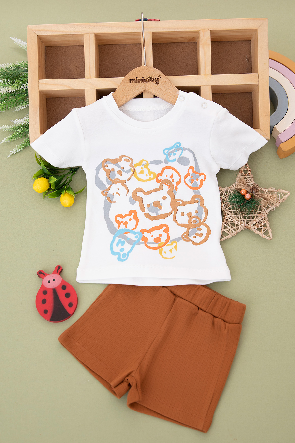 Erkek Bebek Ayıcık Baskılı Kabartmalı Takım - 2023 (6-24 Ay)