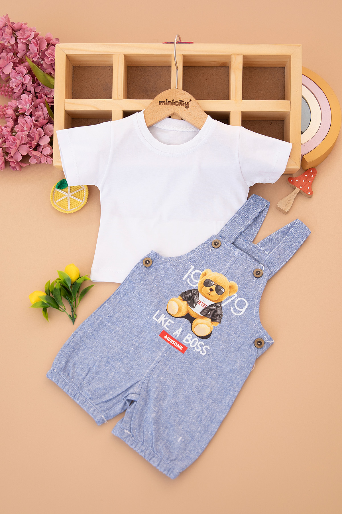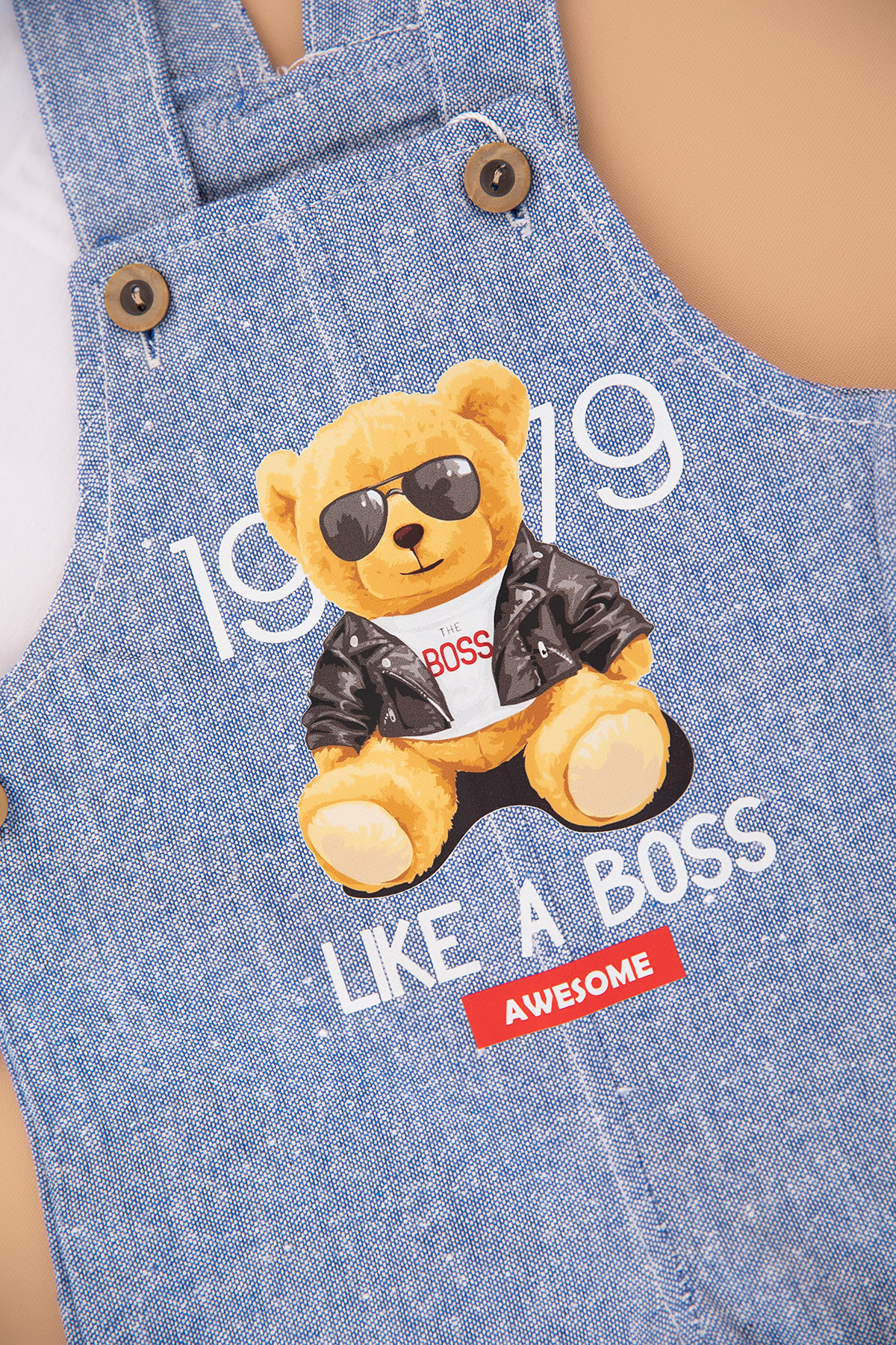 Erkek Bebek Ayıcık Baskılı Keten Slopet - 2610 (9-24 Ay)