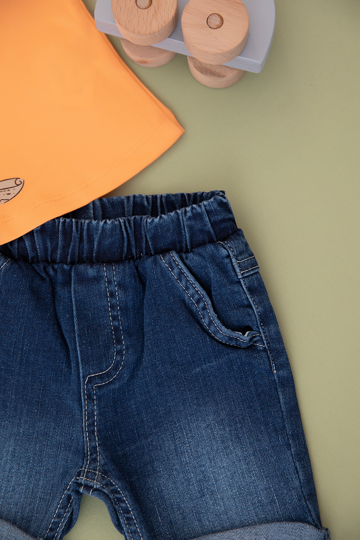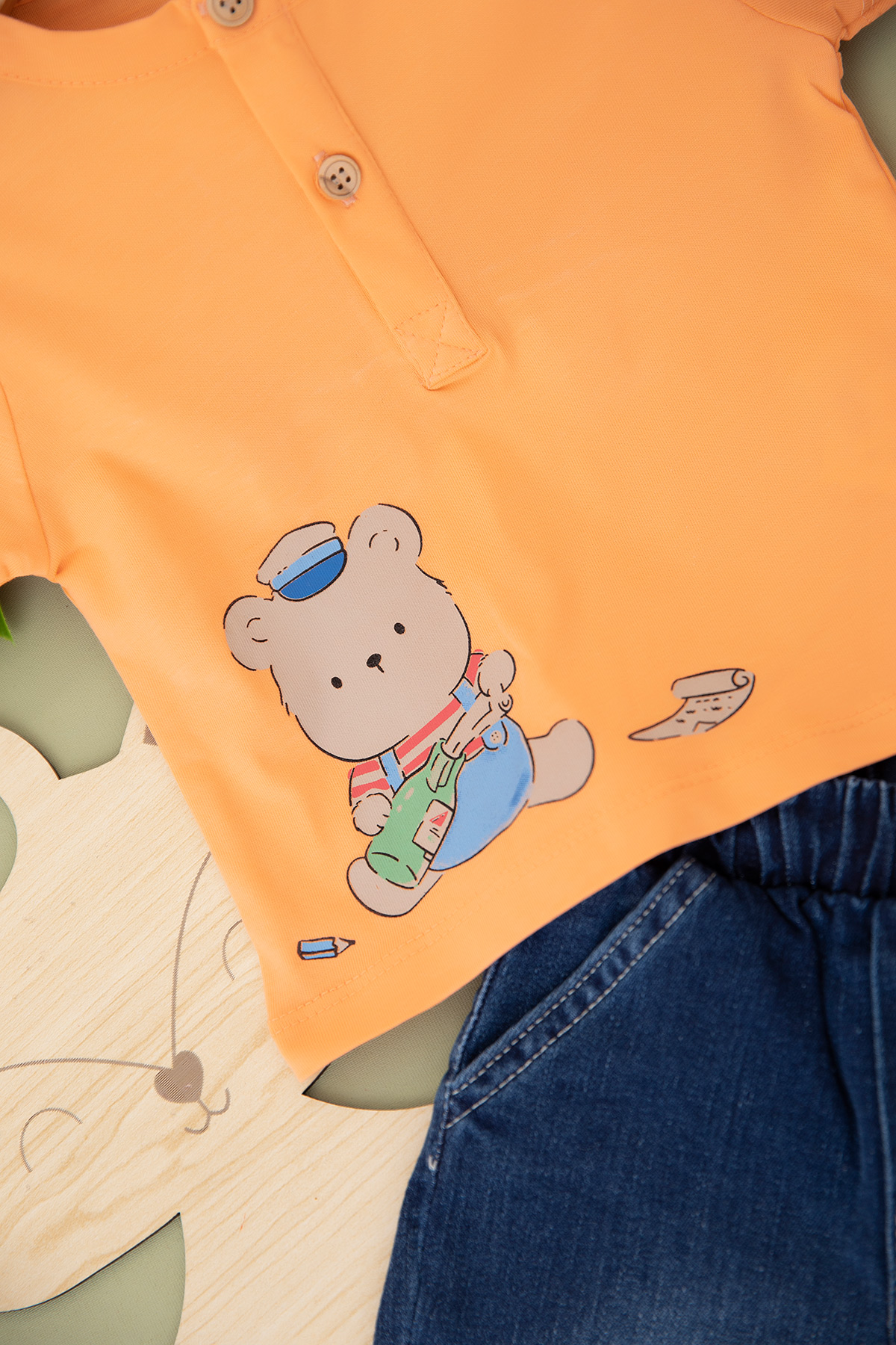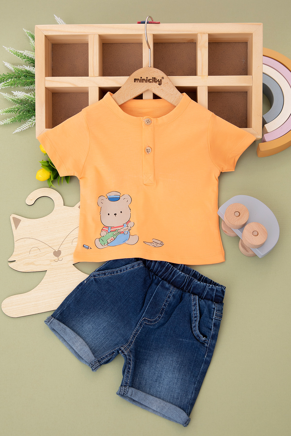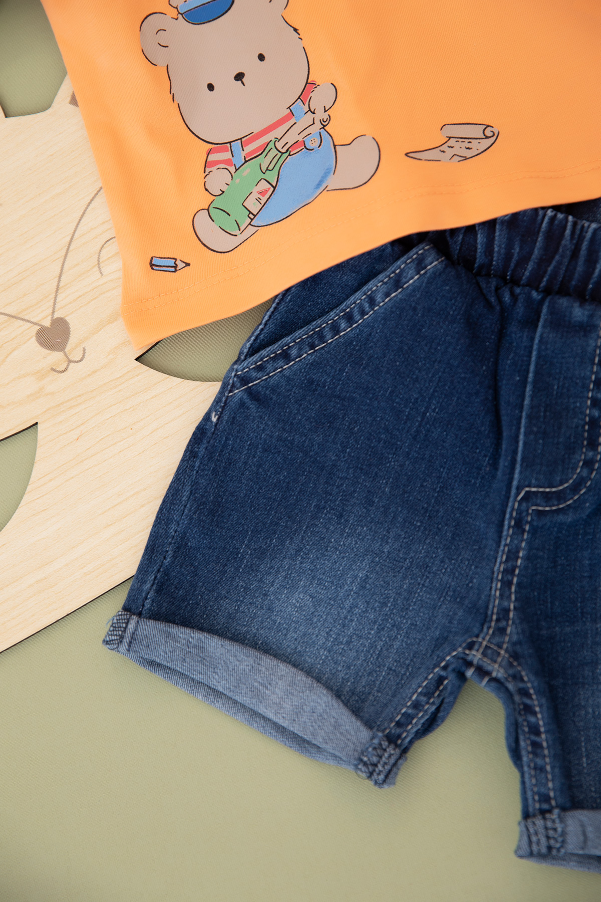 Erkek Bebek Ayıcık Baskılı Kot Şortlu Takım - 15133 (6-18 Ay)