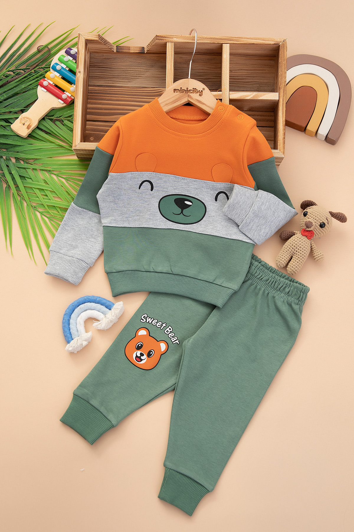 Erkek Bebek Ayıcık Baskılı Takım - 25613 (9-24 Ay)