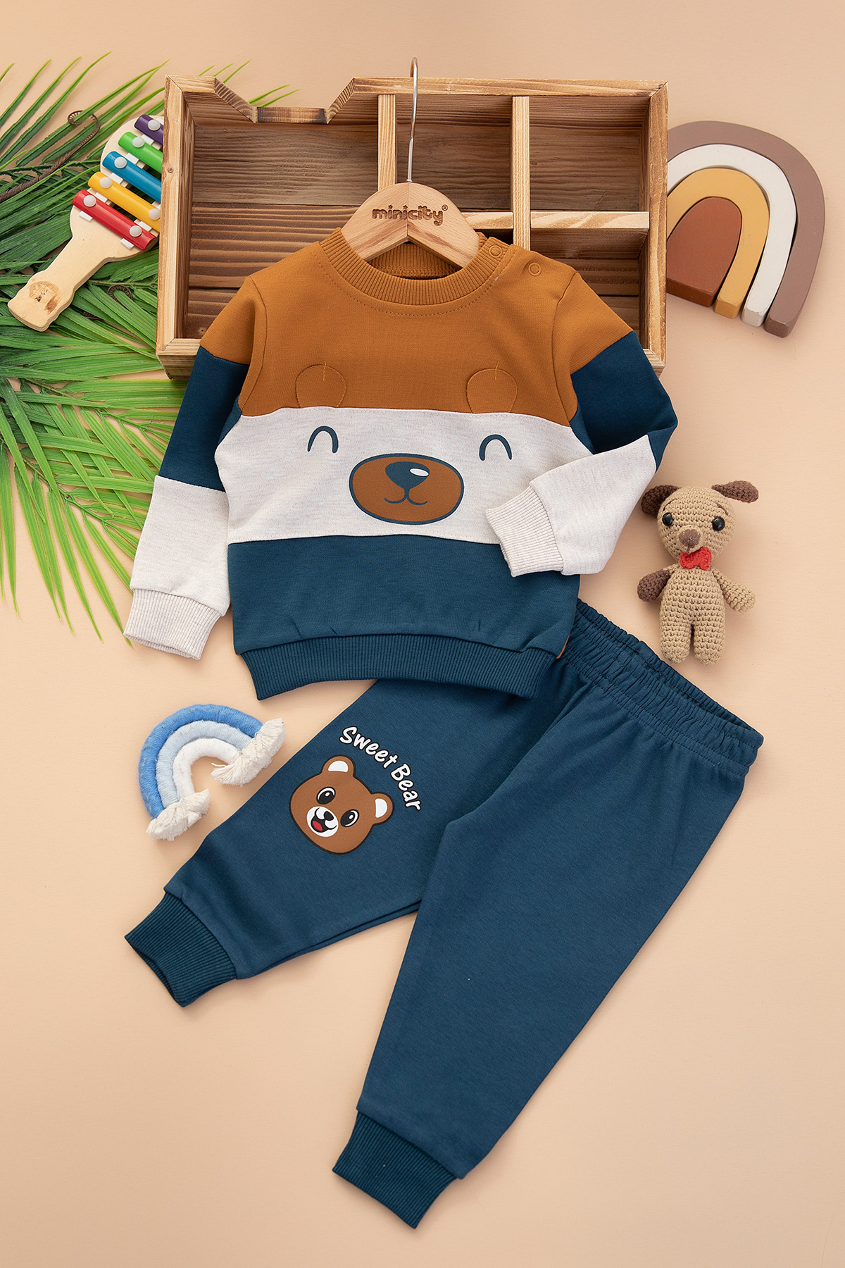 Erkek Bebek Ayıcık Baskılı Takım - 25613 (9-24 Ay)