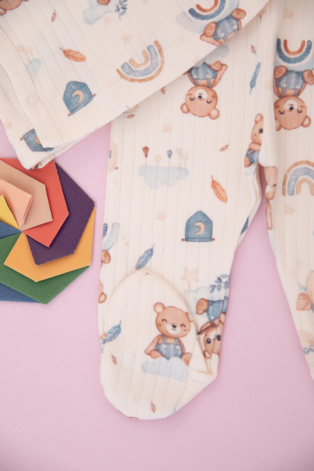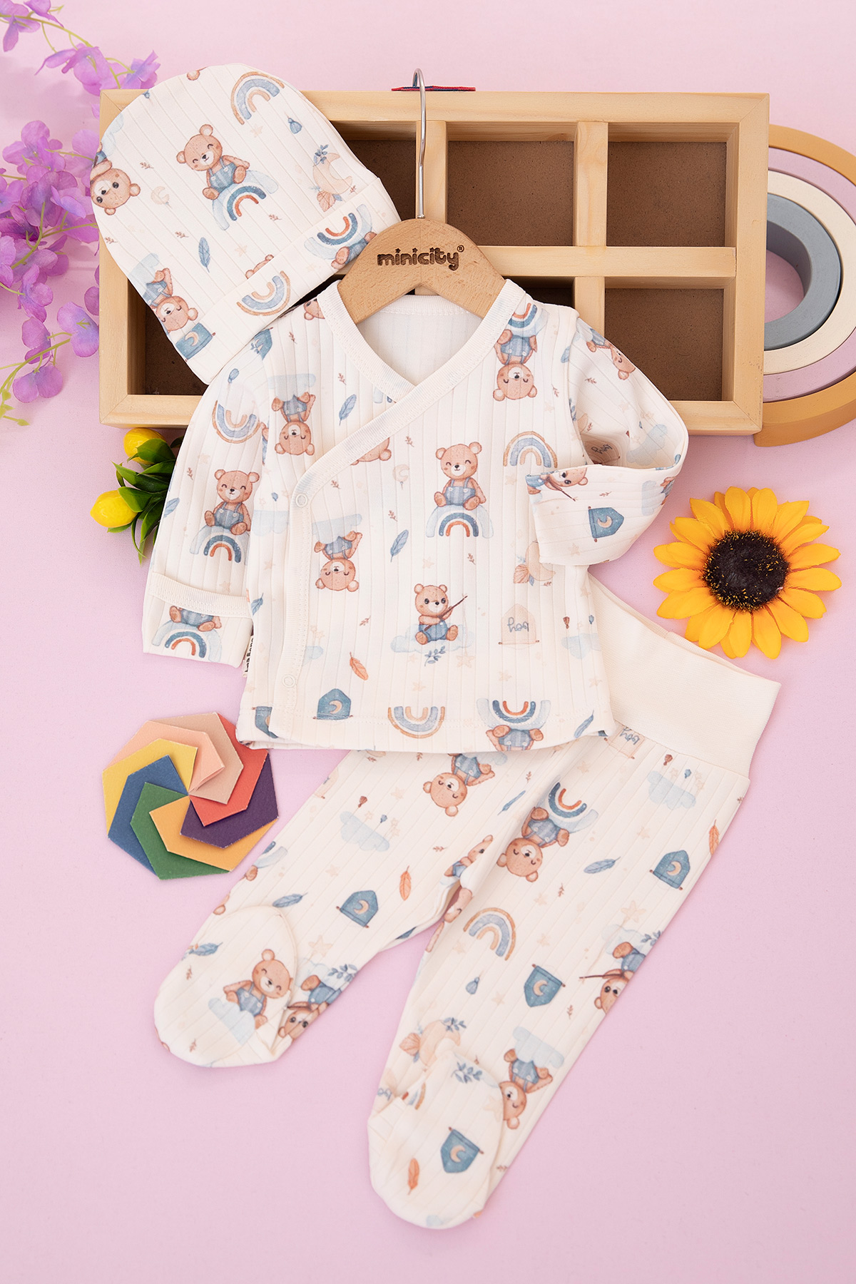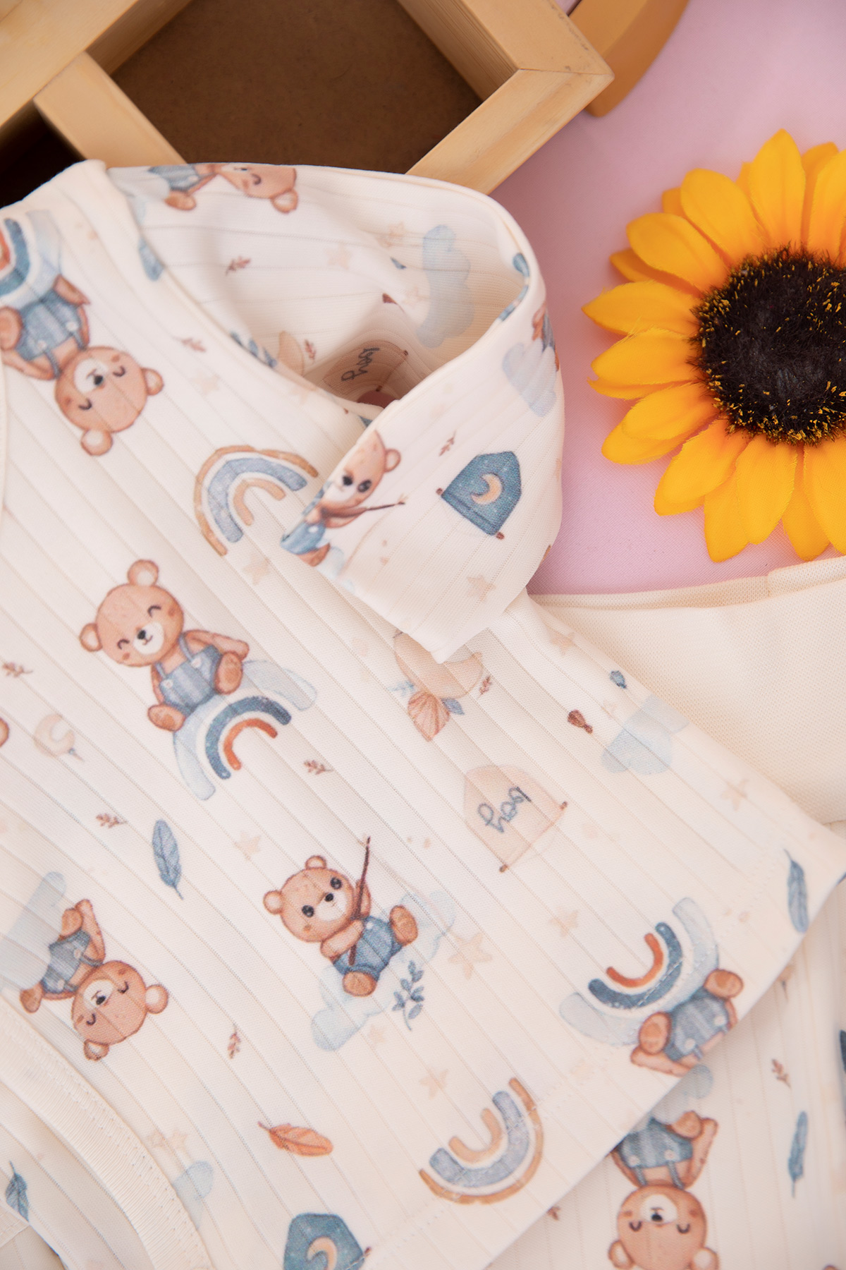 Erkek Bebek Ayıcık Baskılı Zıbın Takımı - 1067 (0-3 Ay)