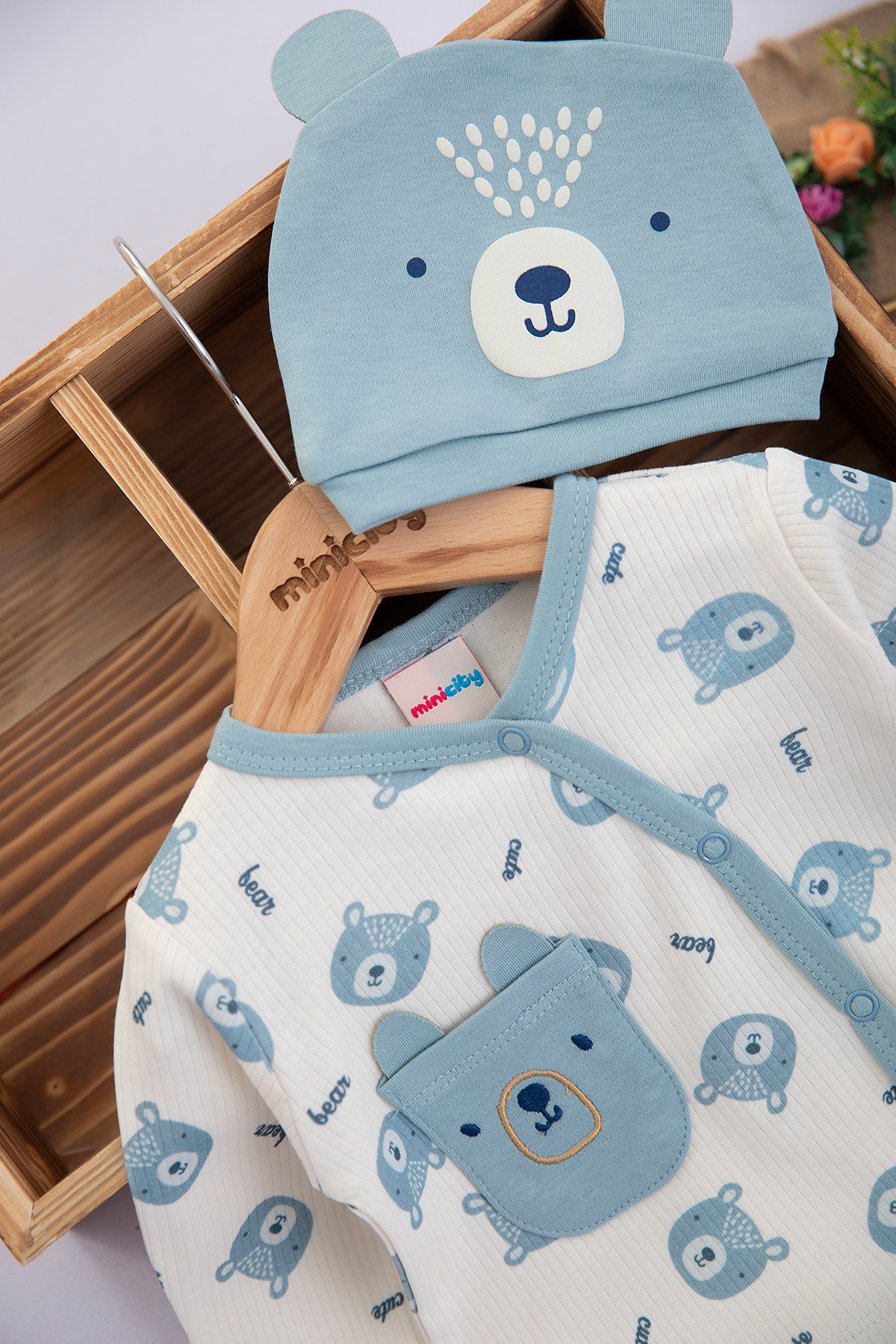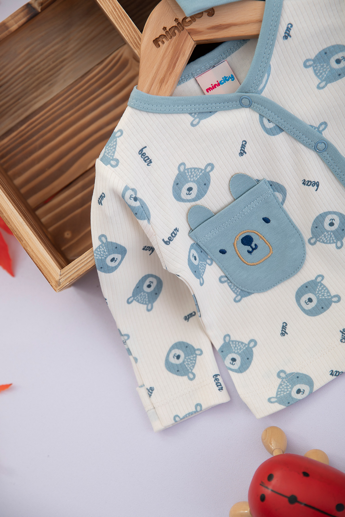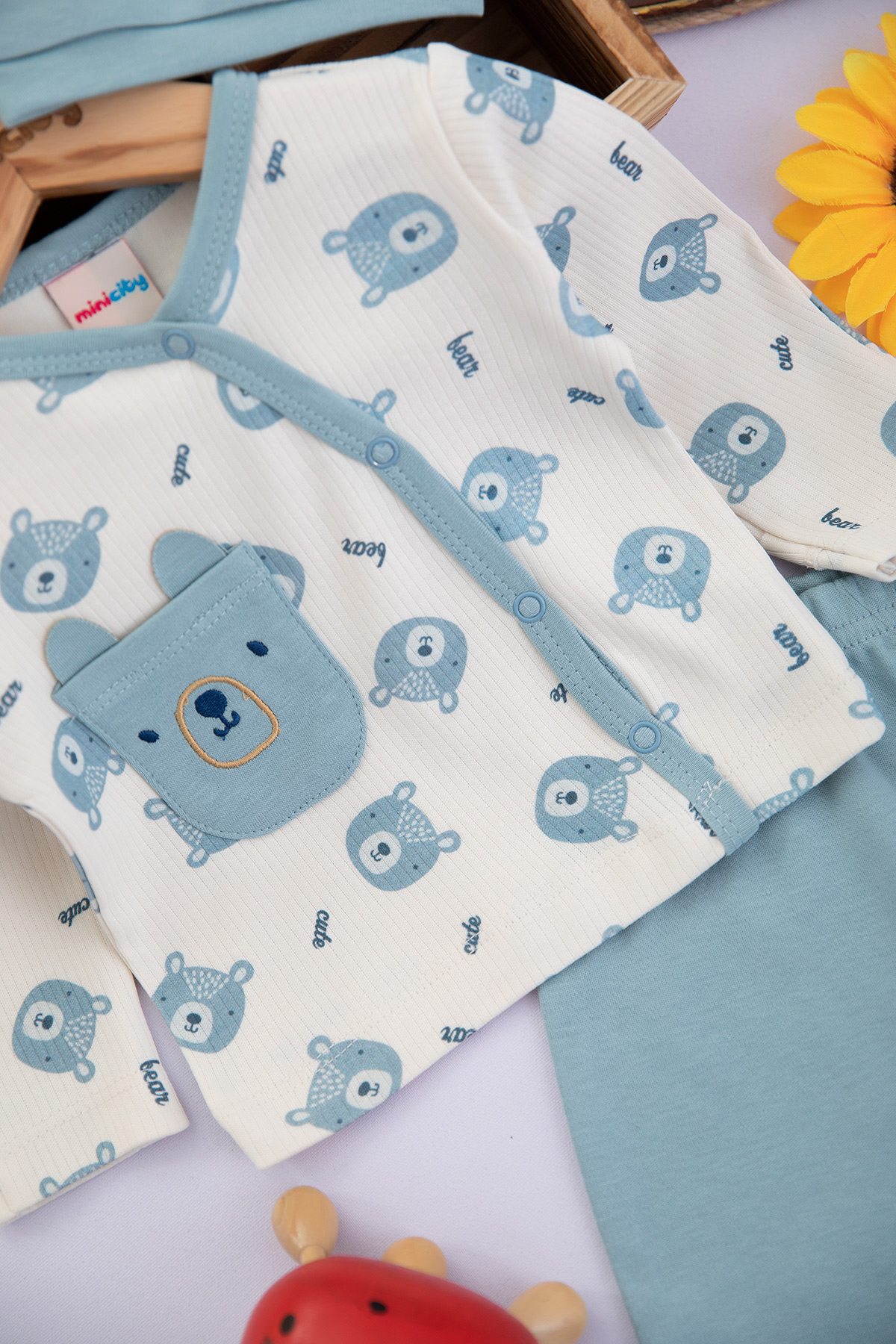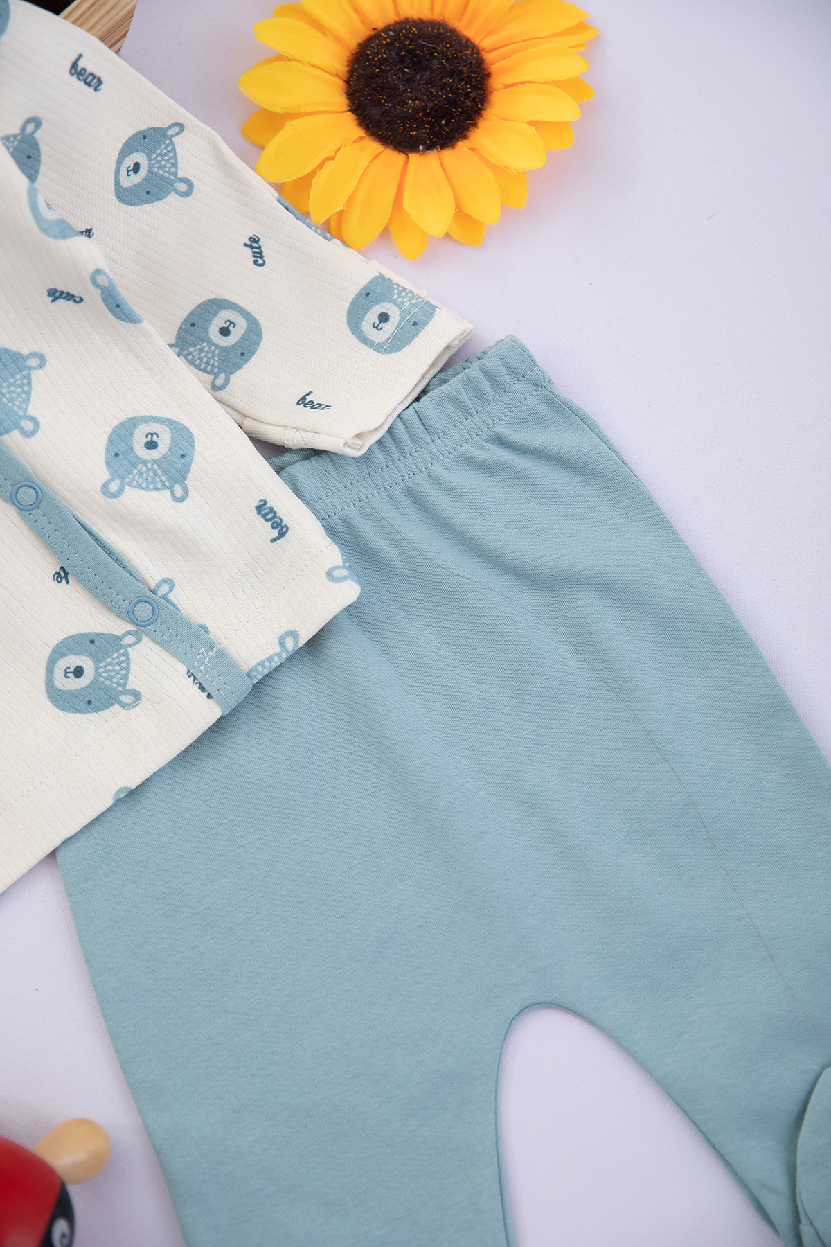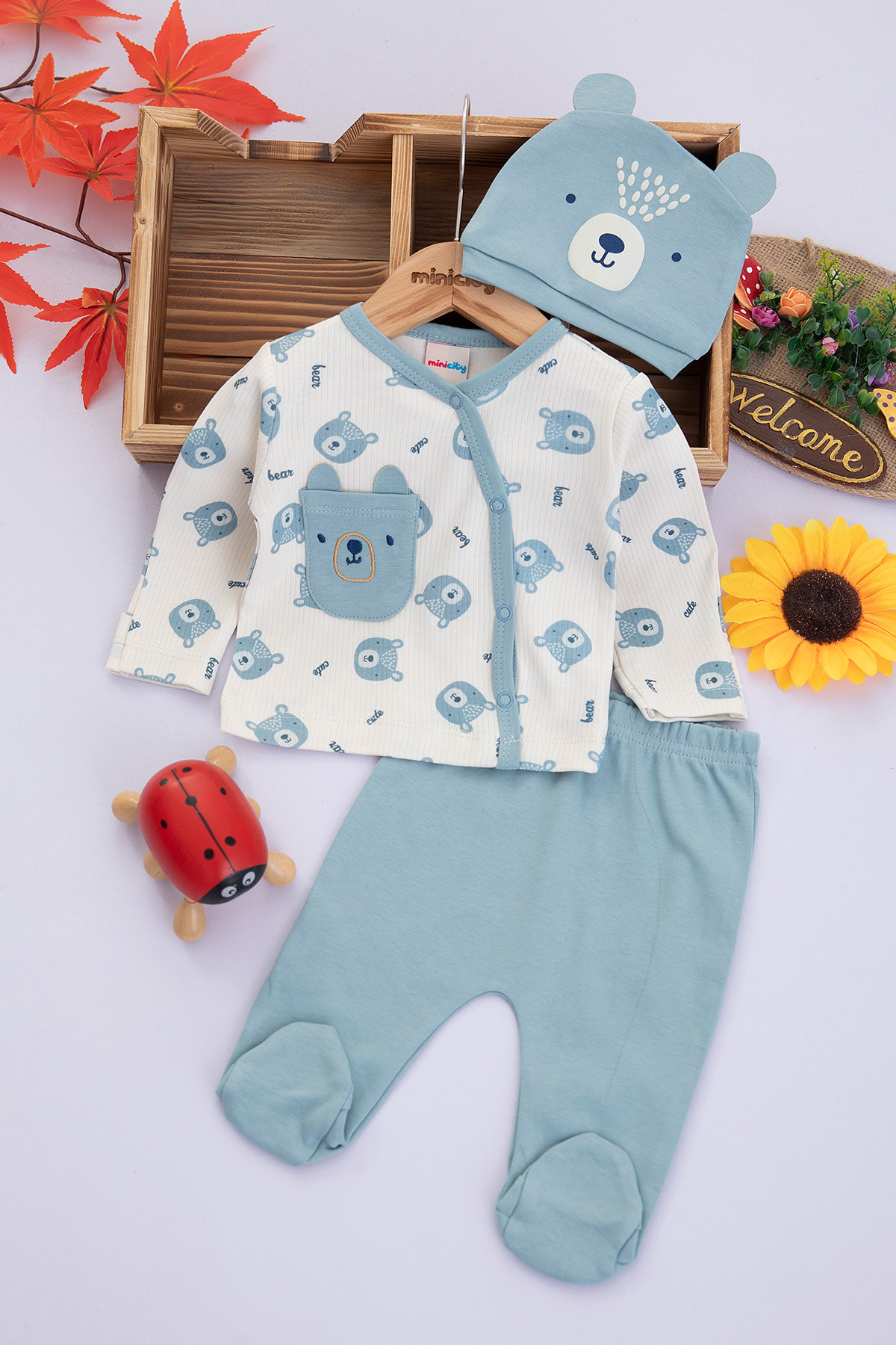 Erkek Bebek Ayıcık Baskılı Zıbın Takımı - NB005 (0-3 Ay)